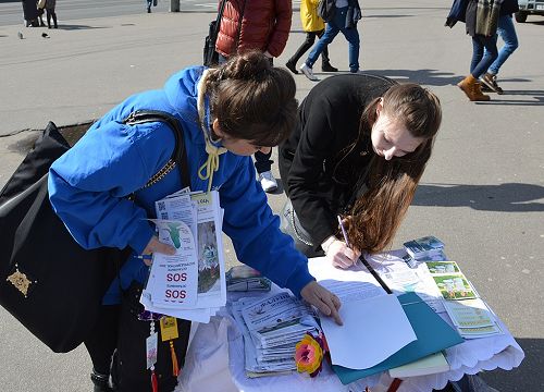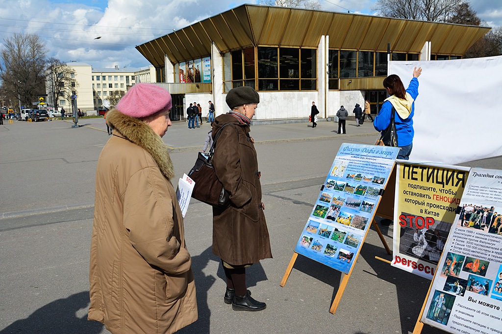 这里距离圣彼得堡国立技术大学很近,很多大学生从这里路过,他们了解到中国发生的迫害后纷纷签名支持制止迫害。