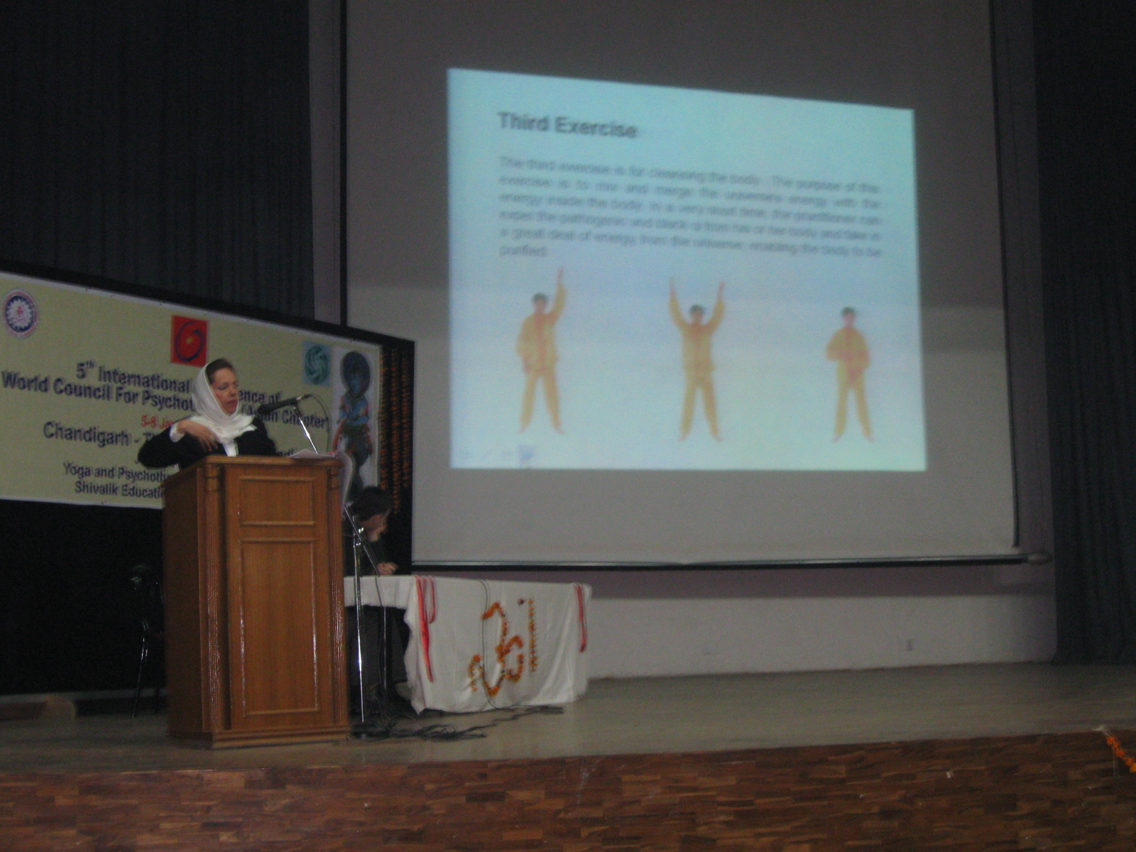 ![]() 玛赫纳兹在国际学术会议上介绍法轮功 |