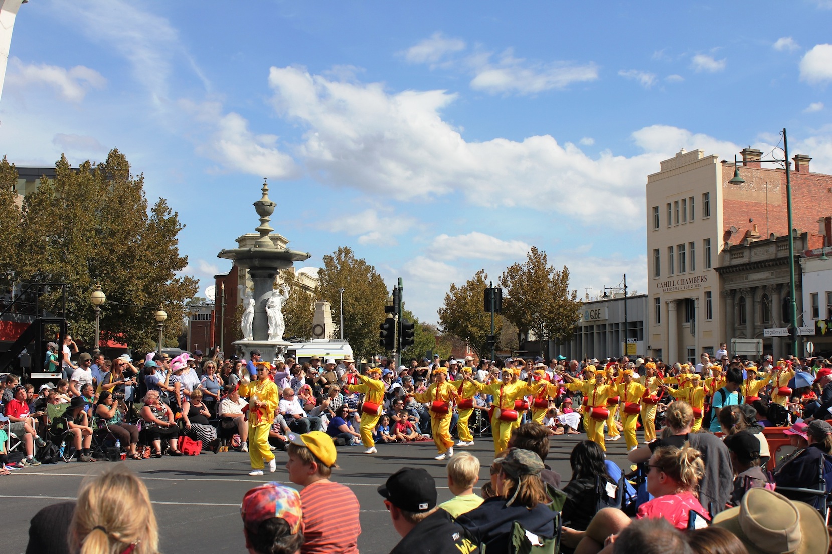 ![]() 法轮功学员参加了一年一度澳洲维省班迪戈市的复活节大游行 |
