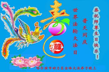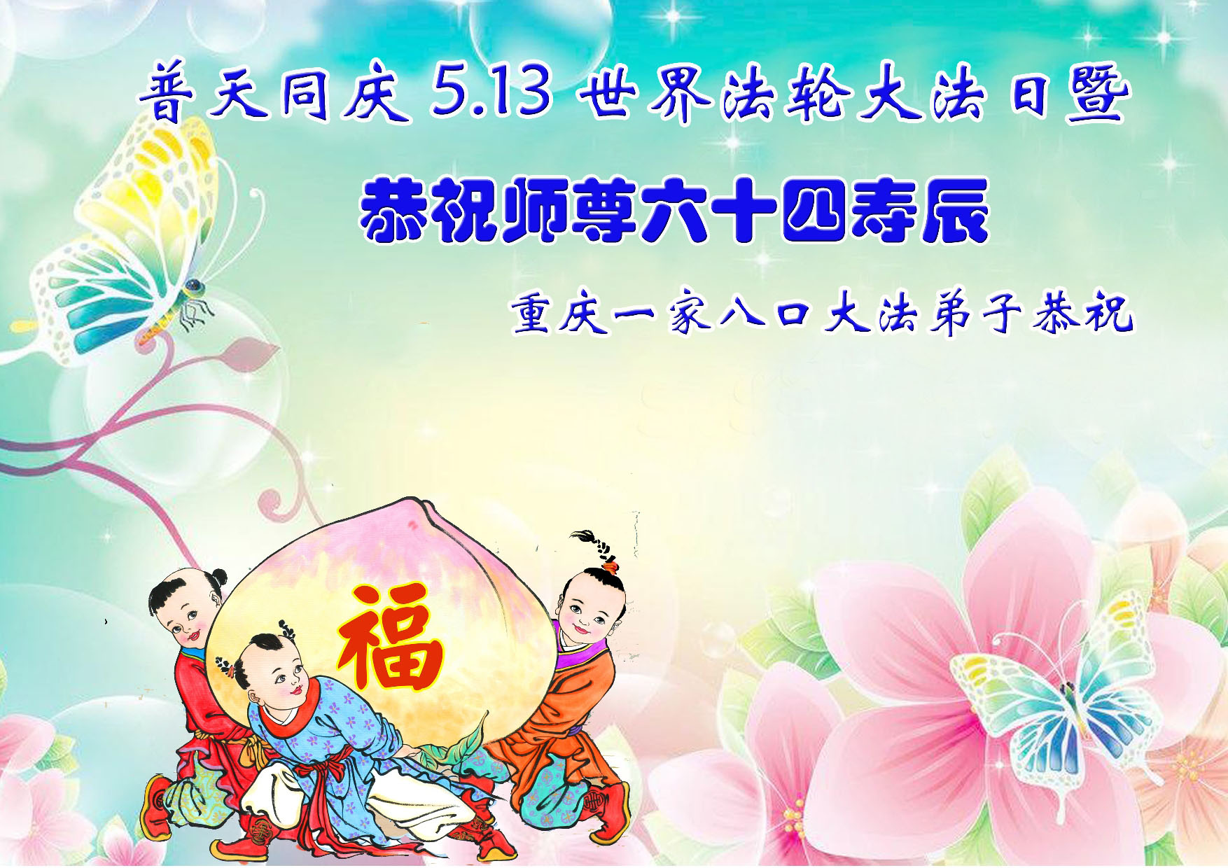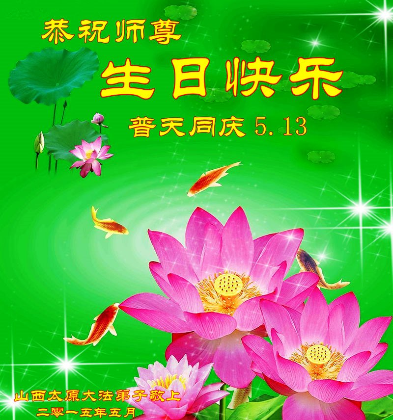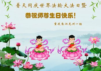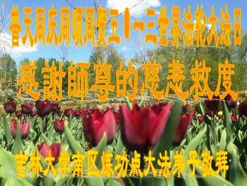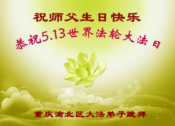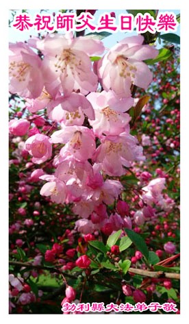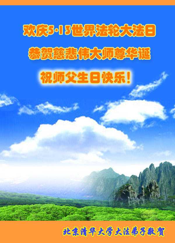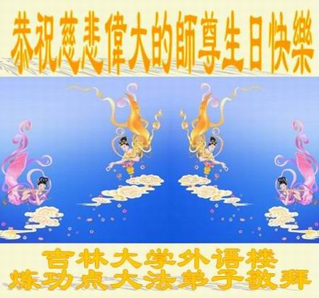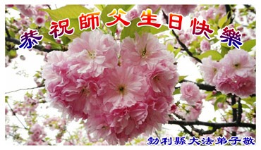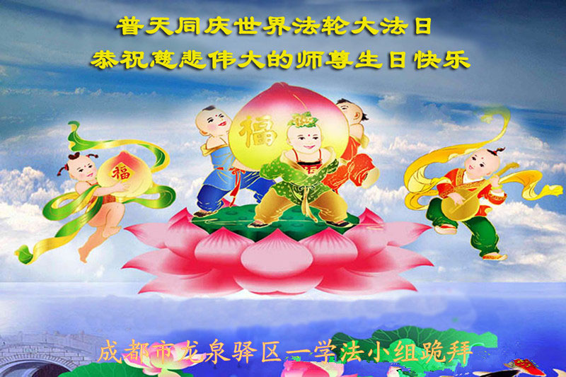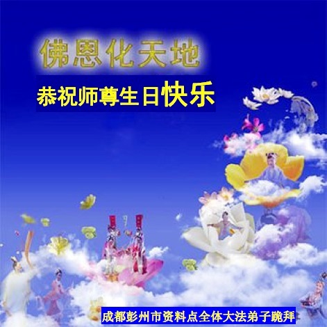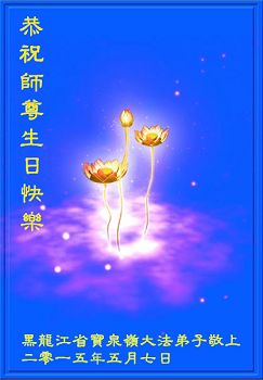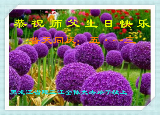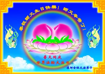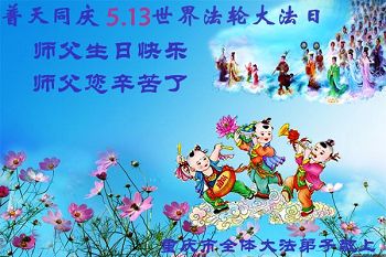 在这普天同庆的日子里,我们与全世界的大法弟子同心欢呼:祝愿慈悲伟大的师尊生日快乐!庆祝五一三世界法轮大法日!此时此刻千言万语难以表达弟子的心情,只能说一句,请师尊放心,弟子一定牢记自己历史的使命,助师正法,救度众生。慈悲伟大的师尊您辛苦了!