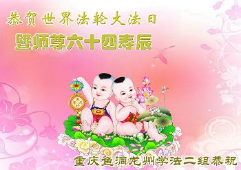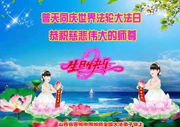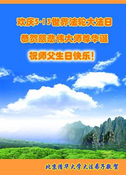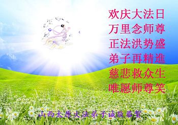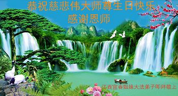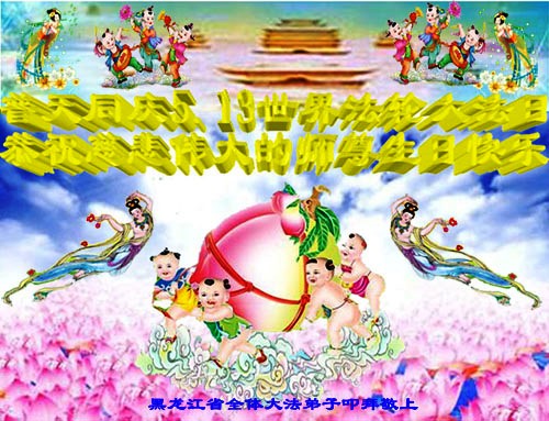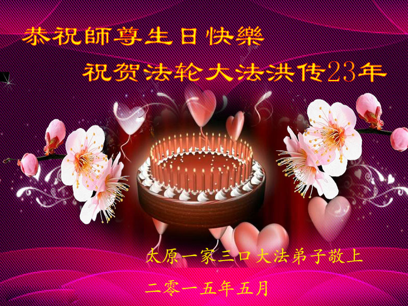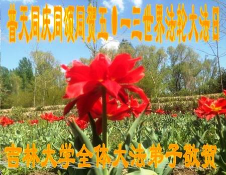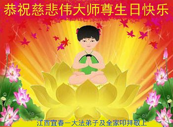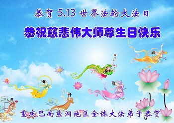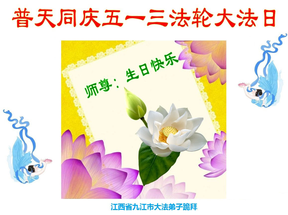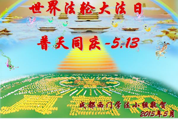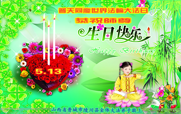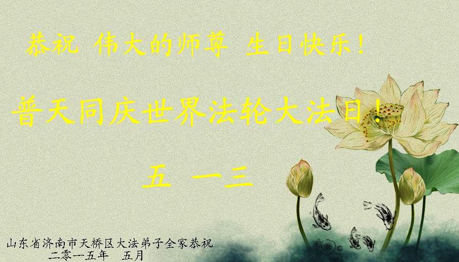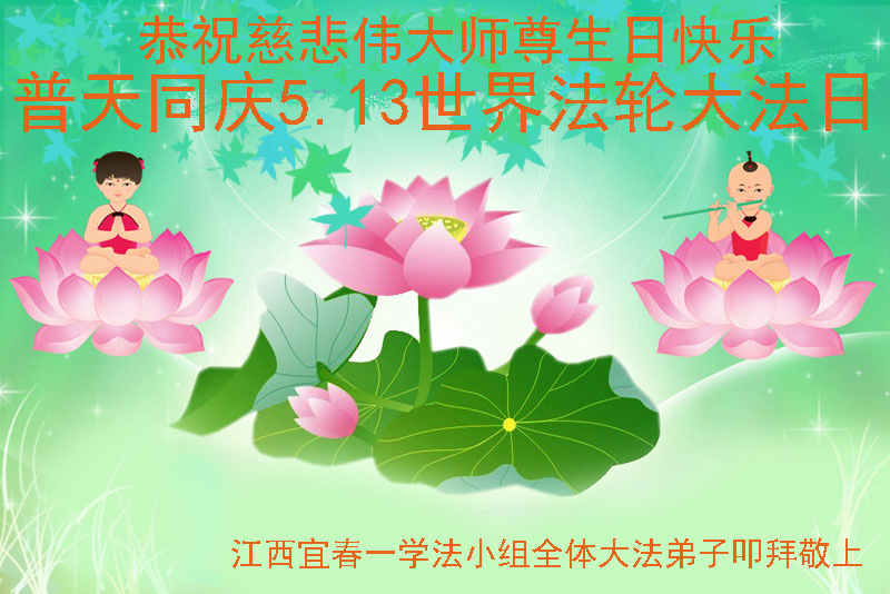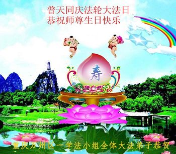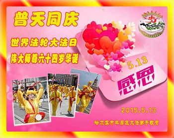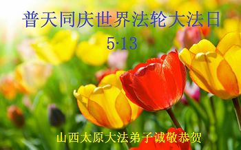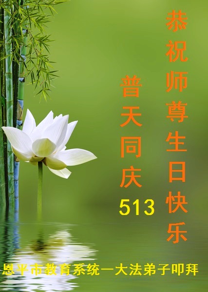 在这普天同庆的日子里,我们与全世界的大法弟子同心欢呼:祝愿慈悲伟大的师尊生日快乐!庆祝五一三世界法轮大法日!此时此刻千言万语难以表达弟子的心情,只能说一句,请师尊放心,弟子一定牢记自己历史的使命,助师正法,救度众生。慈悲伟大的师尊您辛苦了!