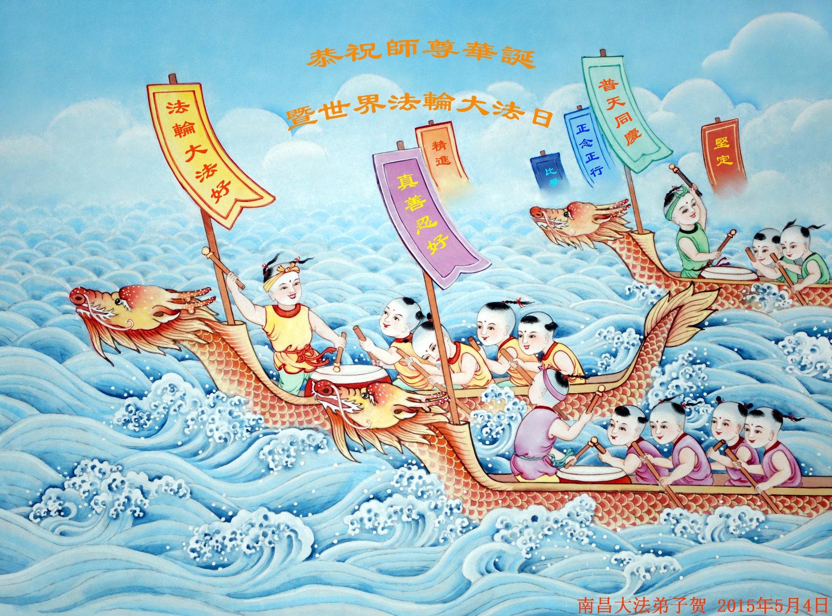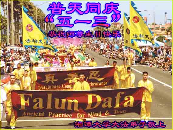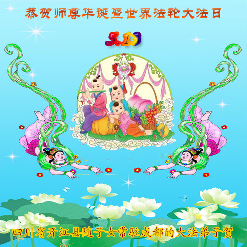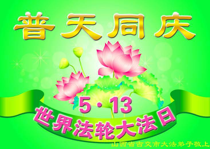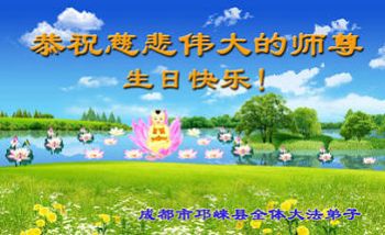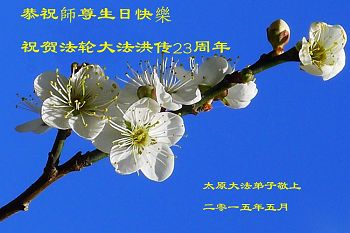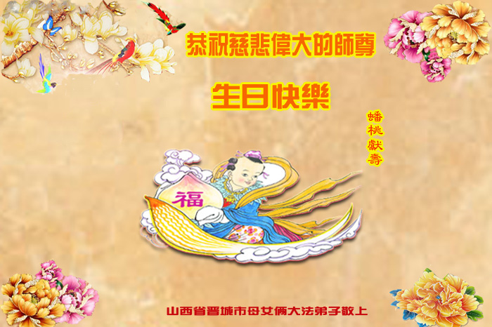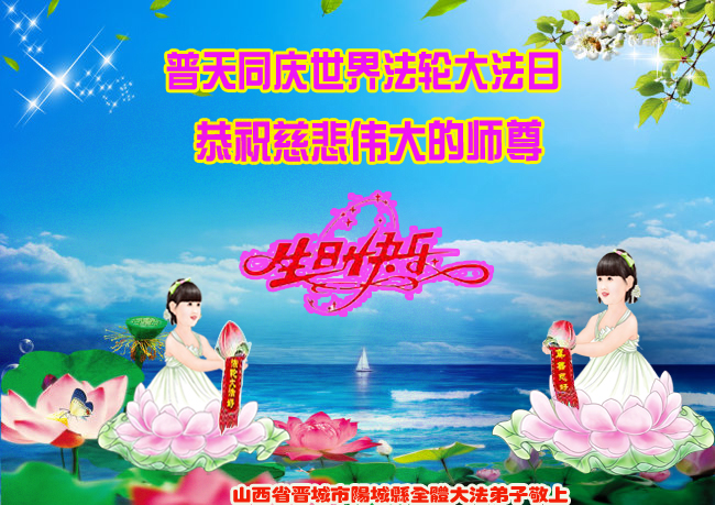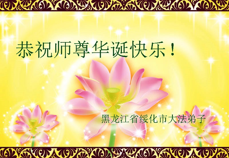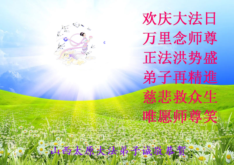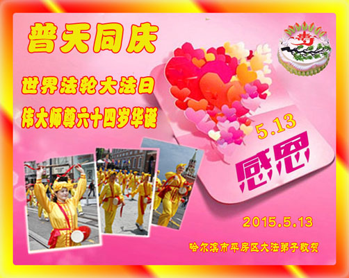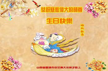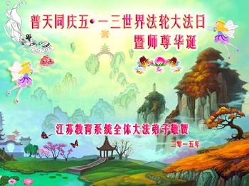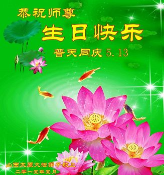 在这普天同庆的日子里,我们与全世界的大法弟子同心欢呼:祝愿慈悲伟大的师尊生日快乐!庆祝五一三世界法轮大法日!此时此刻千言万语难以表达弟子的心情,只能说一句,请师尊放心,弟子一定牢记自己历史的使命,助师正法,救度众生。慈悲伟大的师尊您辛苦了!