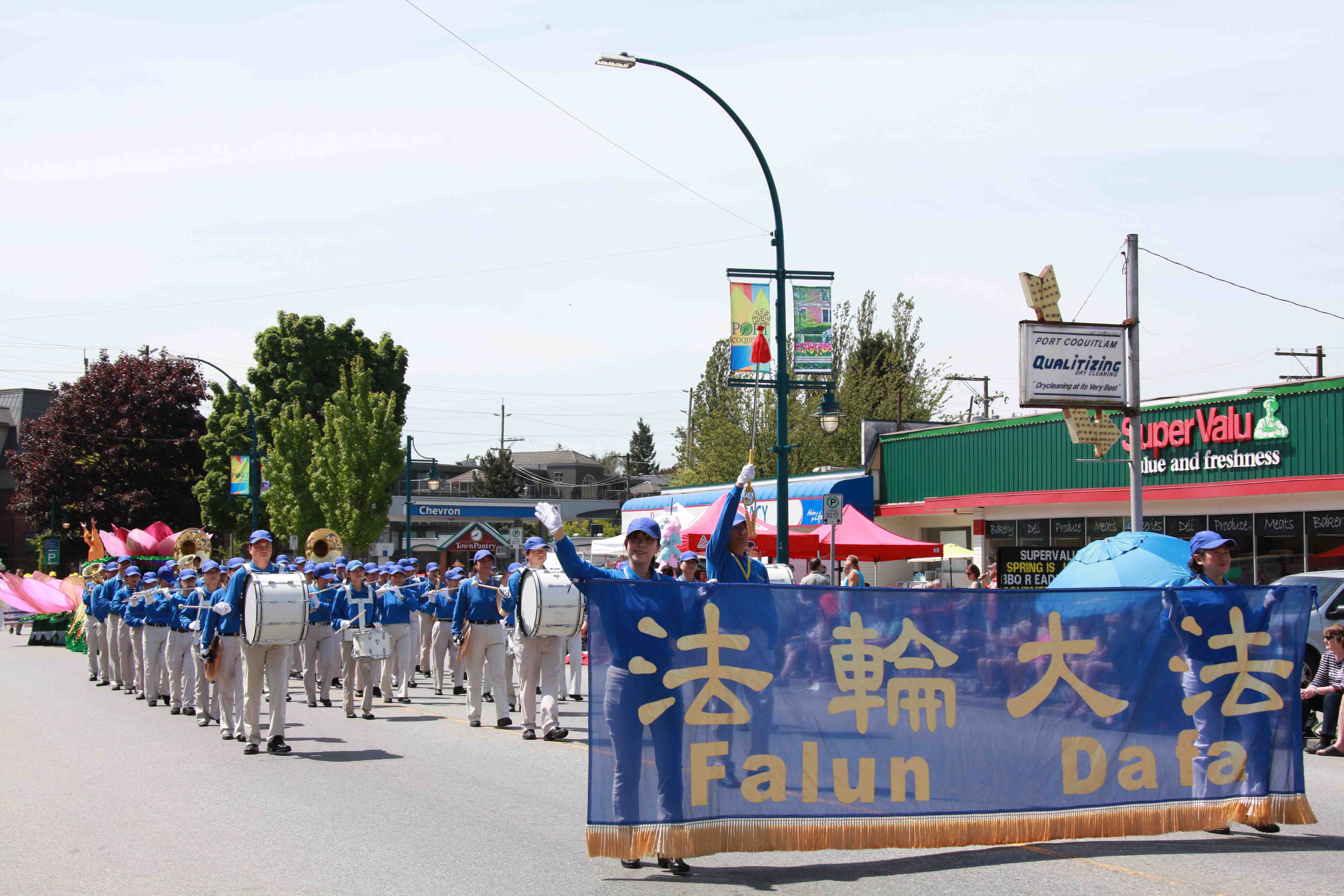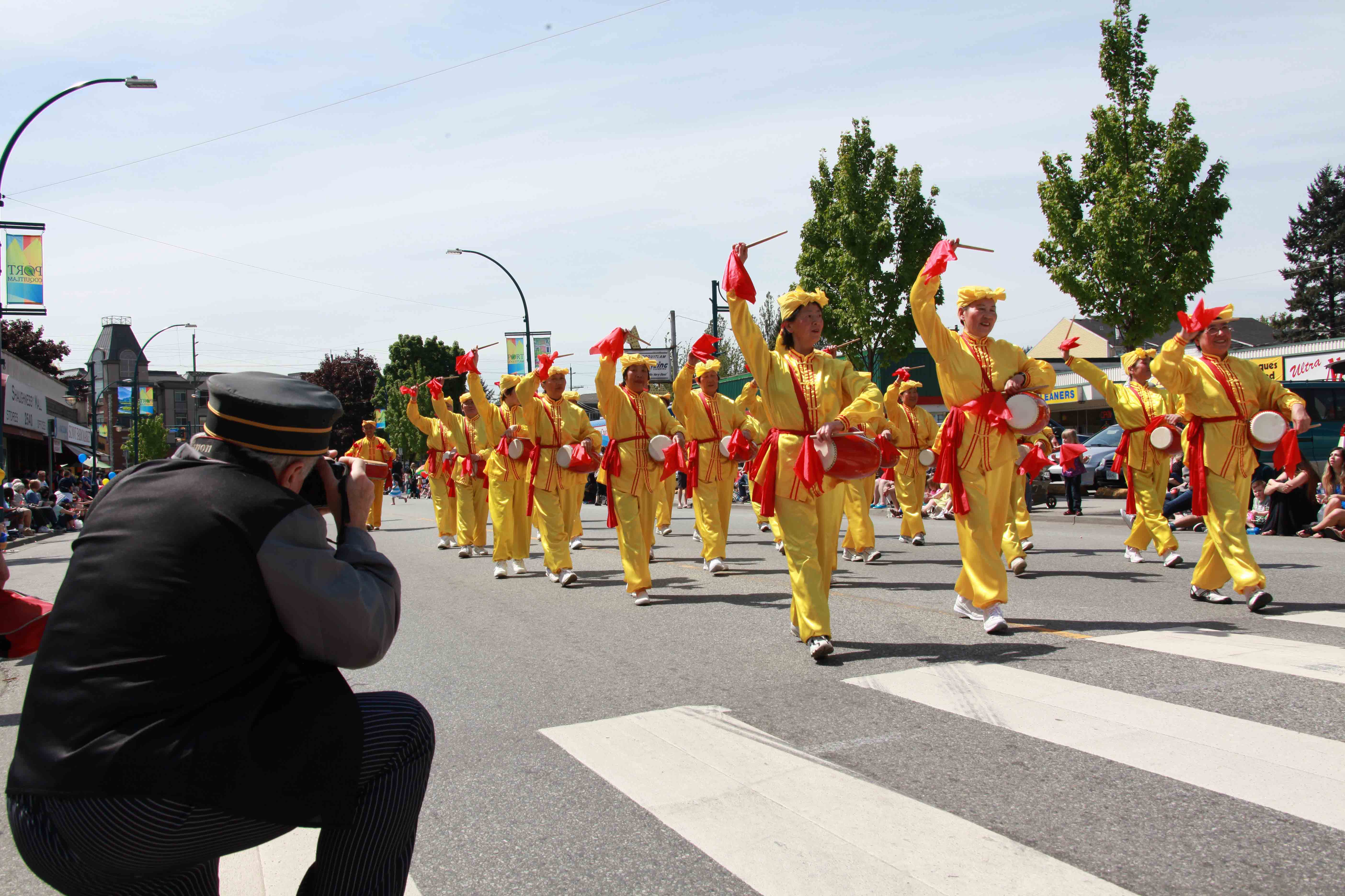加拿大卑诗省高贵林港市(City of Port Coquitlam)庆祝五月节(May Day)的游行有九十多年的历史了,是社区一年一度的盛事。当日天气晴朗,气候宜人,很多高贵林港市民全家在路边席地而坐,观看游行,其中不乏很多华人家庭。