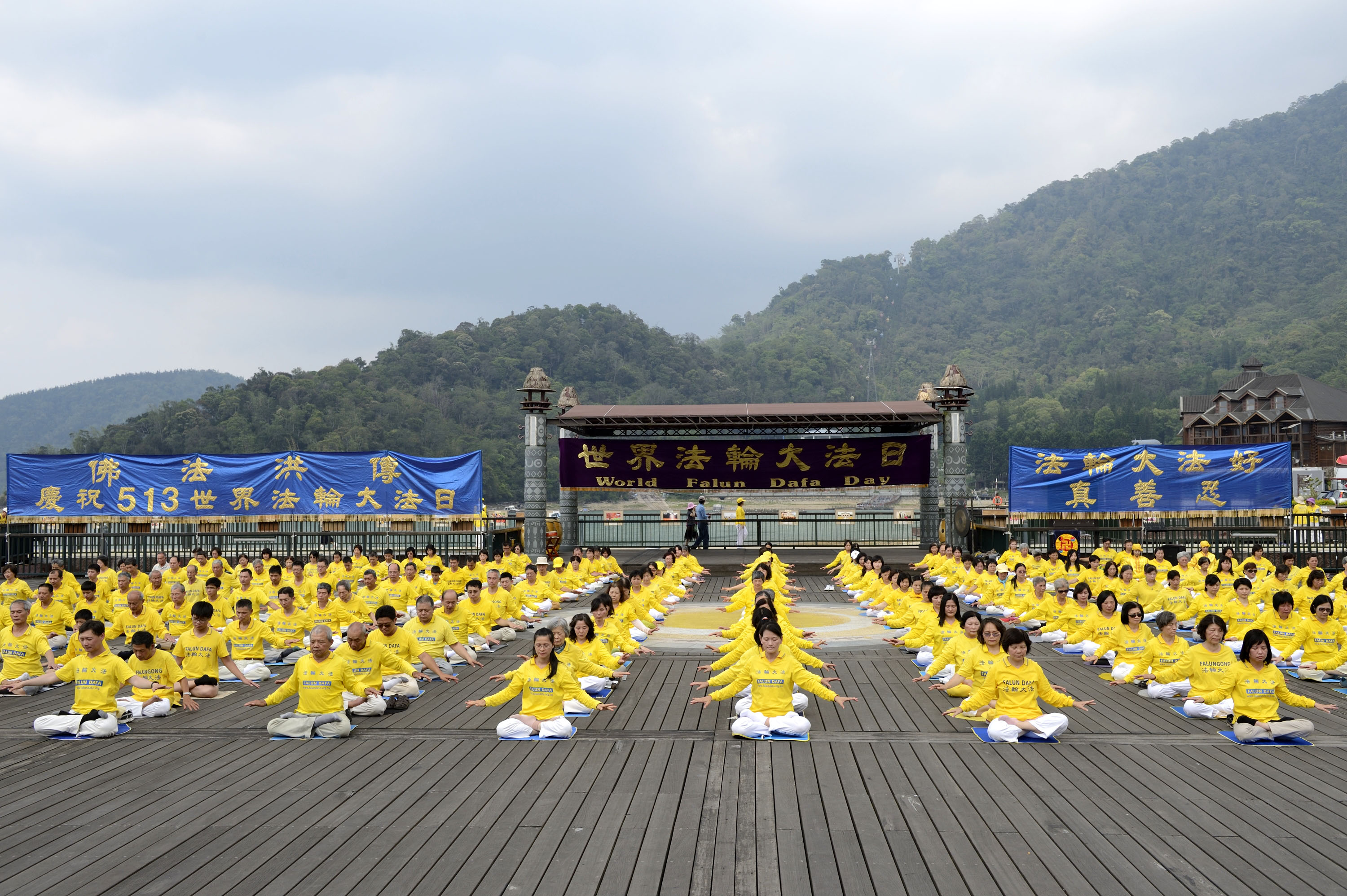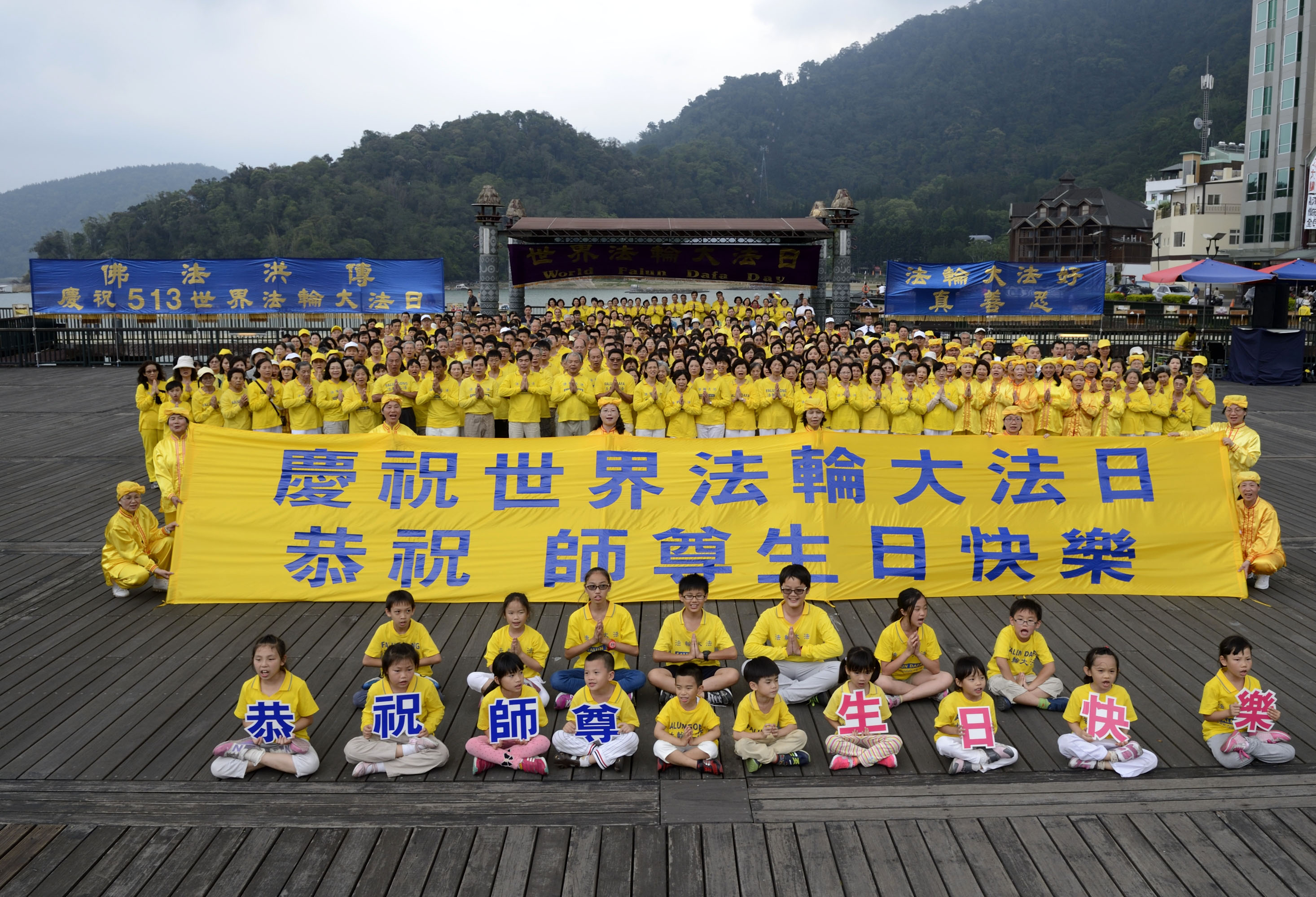 ![]() 台湾中部法轮功学员于二零一五年五月九日齐聚日月潭,庆祝“世界法轮大法日”暨创始人李洪志先生六十四华诞。 |