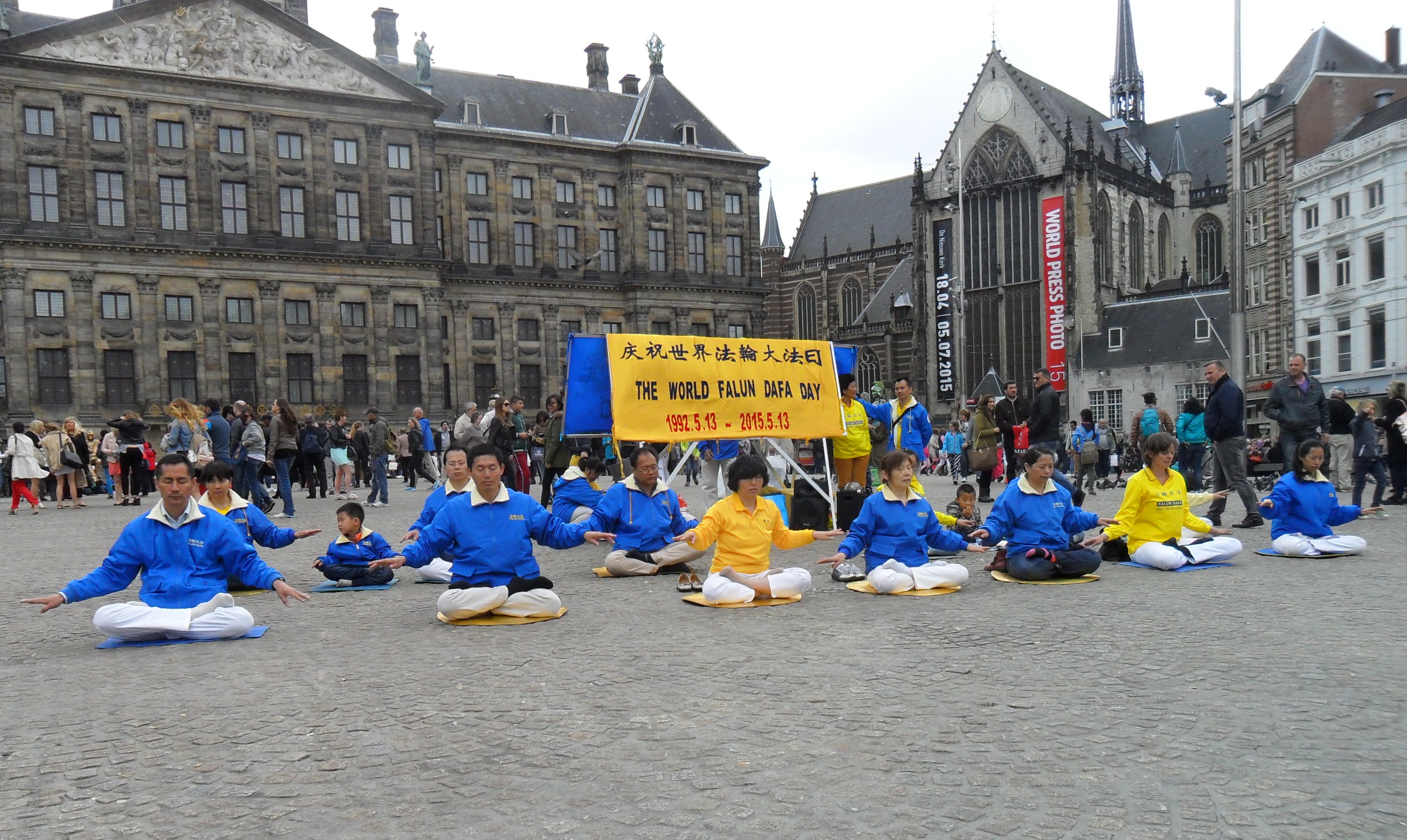 ![]() 法轮功学员在阿姆斯特丹王宫前达姆广场集体炼功 |