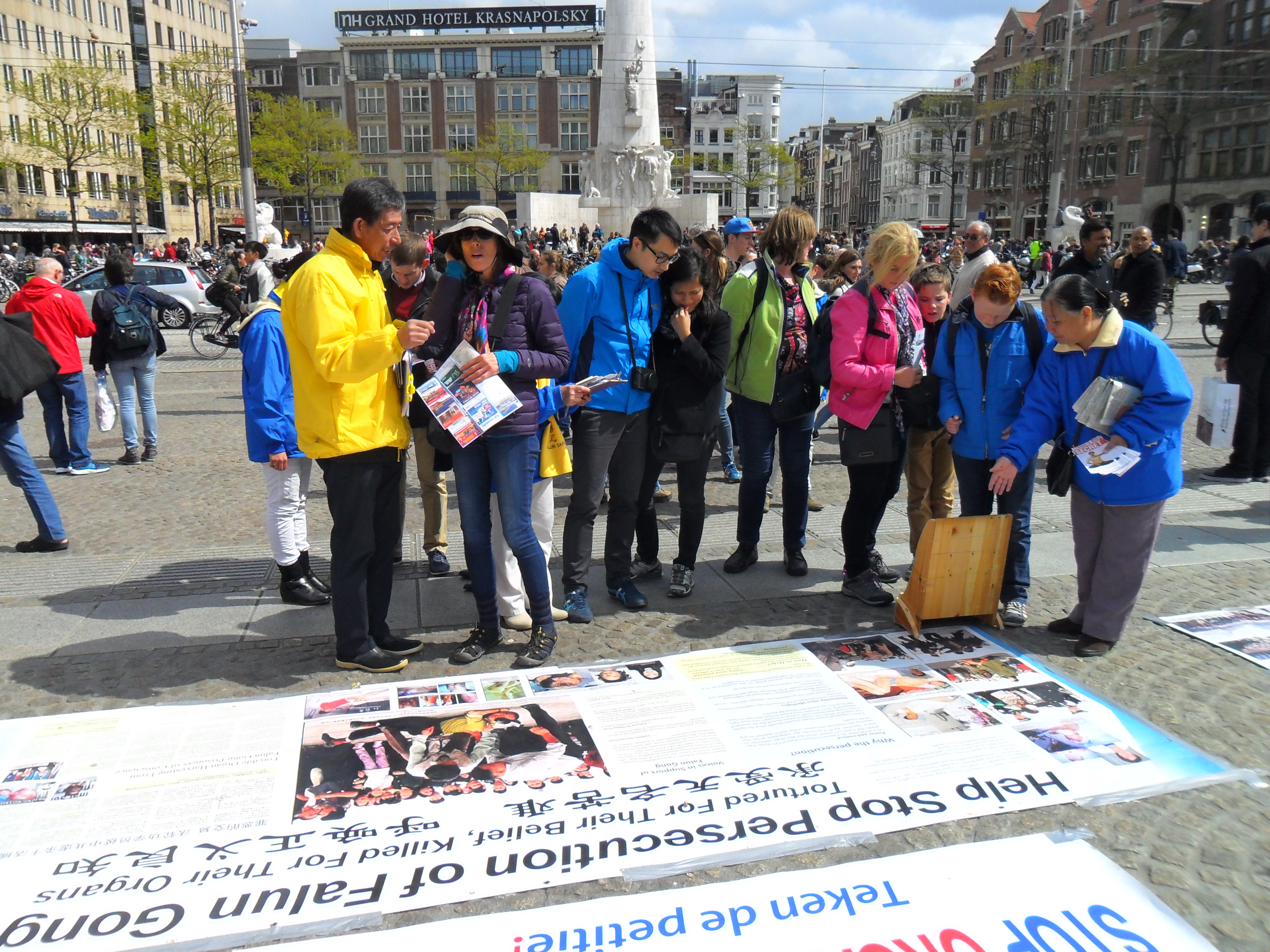 ![]() 阿姆斯特丹王宫前达姆广场上,游客签名支持法轮功反迫害 |