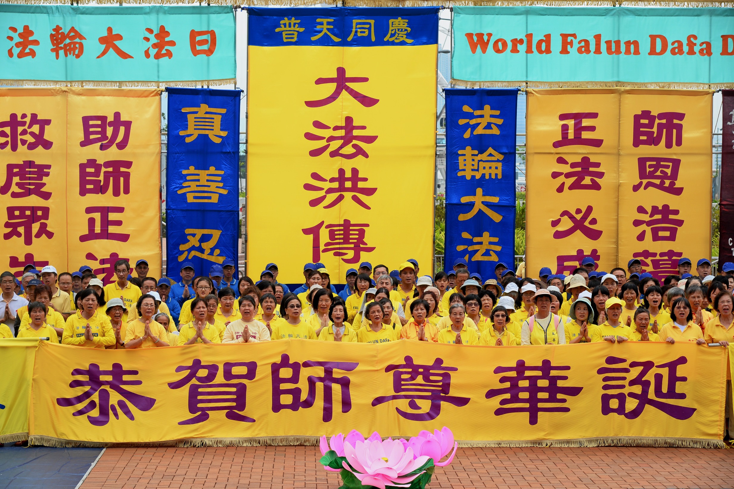 香港法轮功学员于五月十日举行炼功和游行等盛大庆祝活动。多位立法会议员祝贺法轮大法洪传世界,赞佩法轮功学员真、善、忍的精神是世人的榜样。下午的游行更让沿途不少大陆游客感到非常震撼。