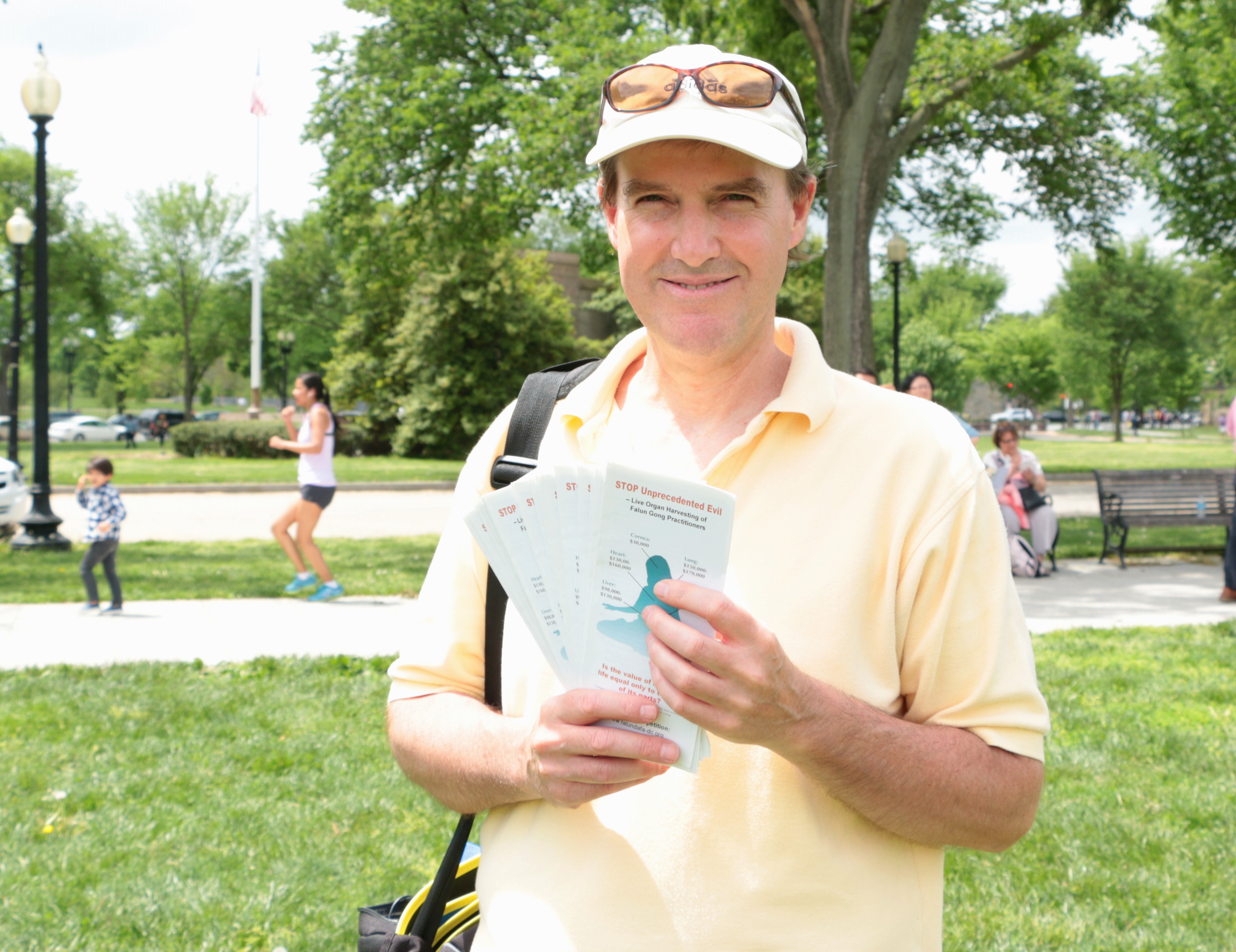 来自马里兰州的林晓旭博士早年从大陆来到美求学,获得微生物学博士学位,现在美国陆军研究所做医疗方面的研究。他回忆最初接触法轮功是在一九九七年,一位朋友为他从中国带来一本法轮功的著作《转法轮》。“朋友告诉我这本书很好,我就开始看。看完之后很喜欢,就从网上找到教功录像,开始学炼。法轮功为我的生活带来很大变化,让我感受到自己内心的升华,在和朋友与同事之间相处时,更注意怎样保持一颗善良的心。”