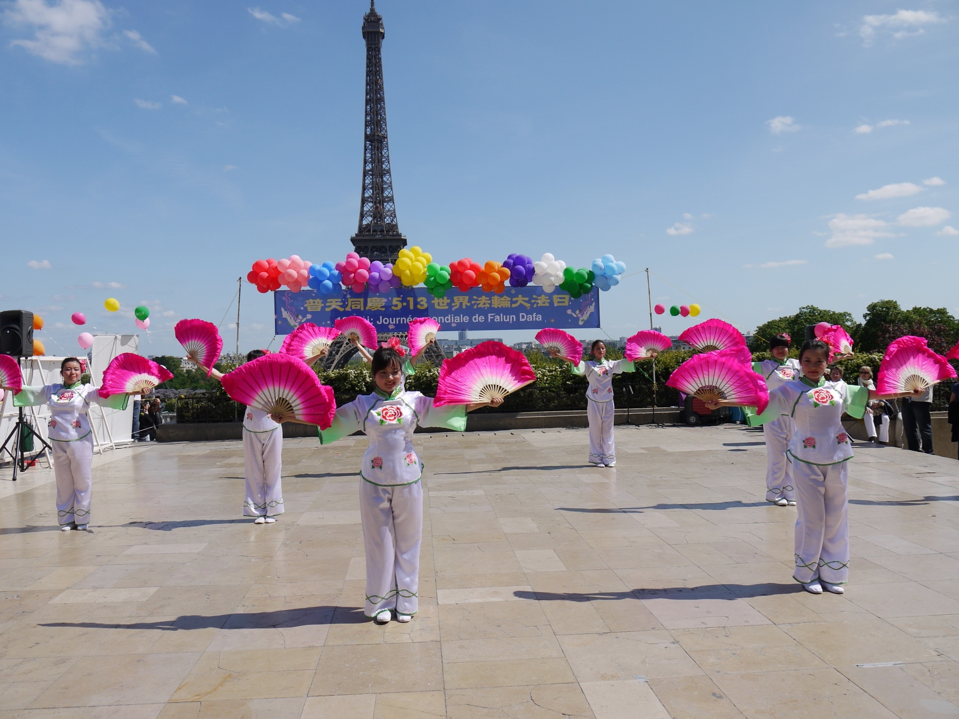 ![]() 图4:法国法轮功学员以文艺节目庆祝世界法轮大法日 |