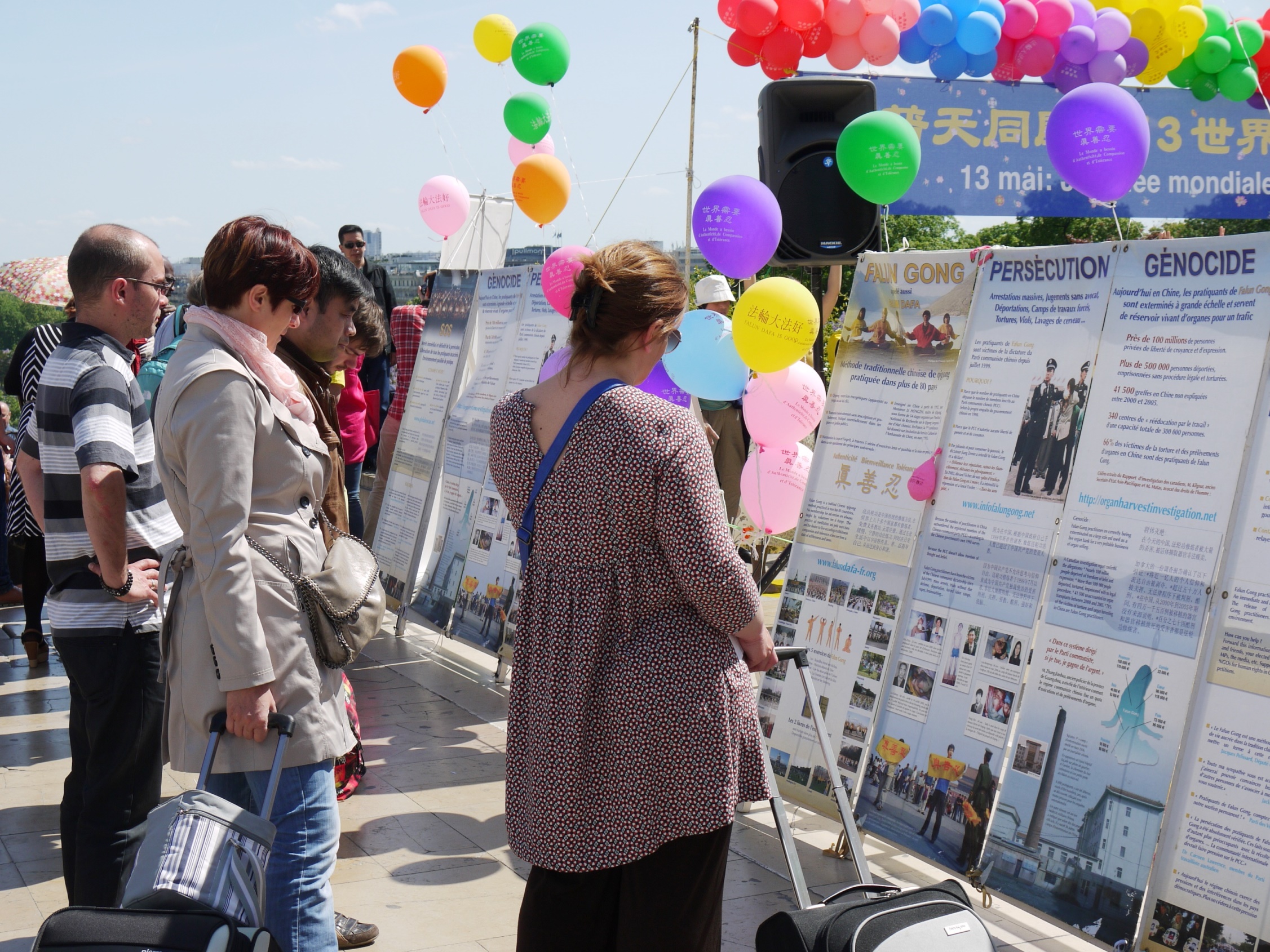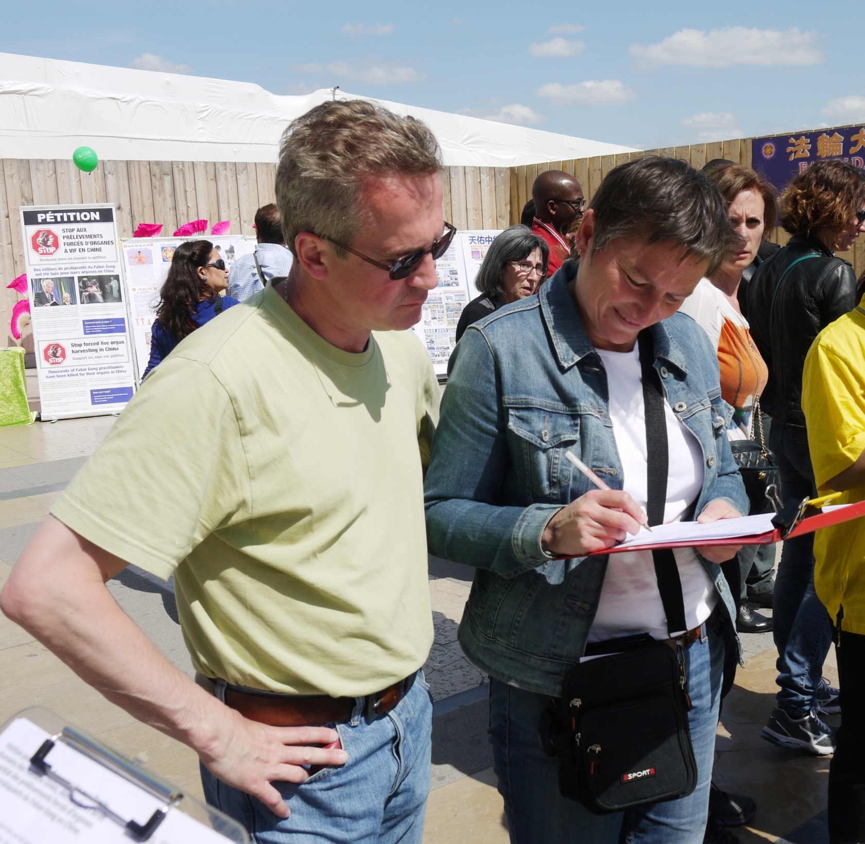 法国民众和游人得知在中国修炼这么祥和的法轮功竟会无辜遭到迫害,都感到不可理喻。生活在二十一世纪的今天,还有因信仰而遭酷刑折磨,甚至被活体摘取器官的事情发生,骇人听闻。他们纷纷在征签表上签字,支持法轮功反迫害。