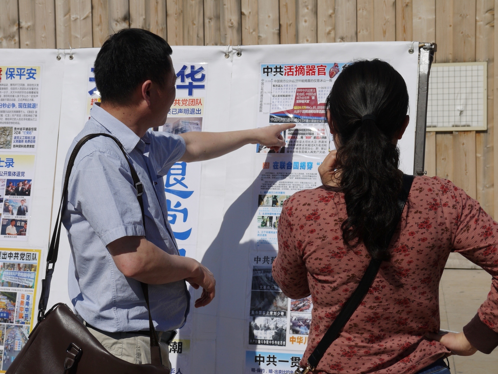 游人中不乏大陆游客,一些大陆游客看过法轮功真相展板后,在学员的帮助下办了三:退.,然后高兴地离开。