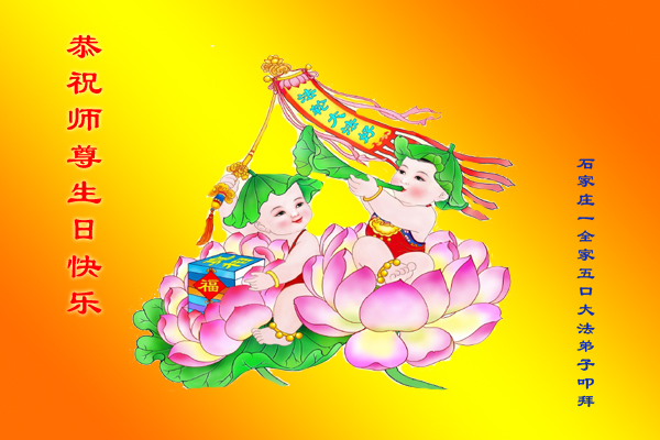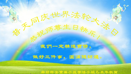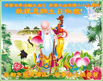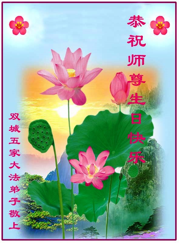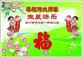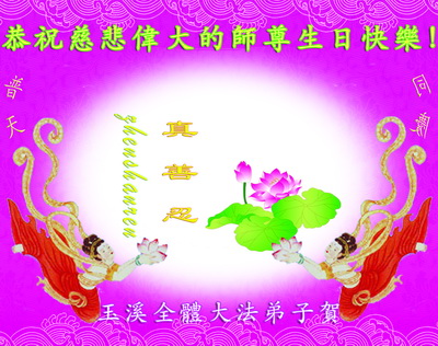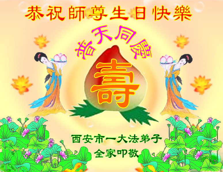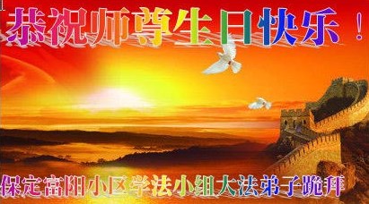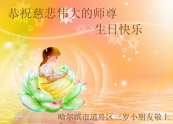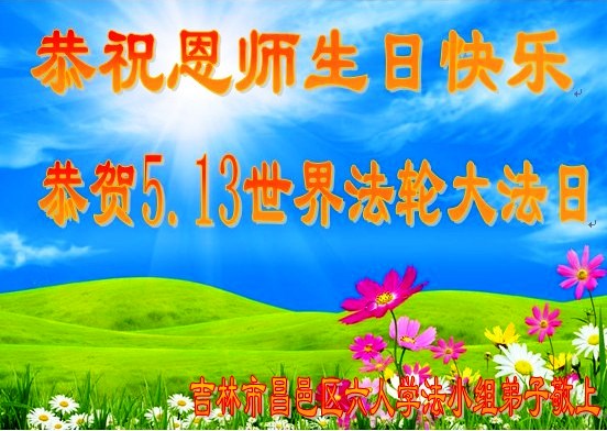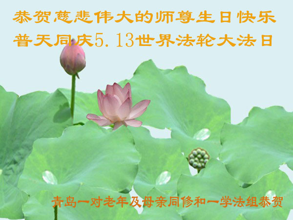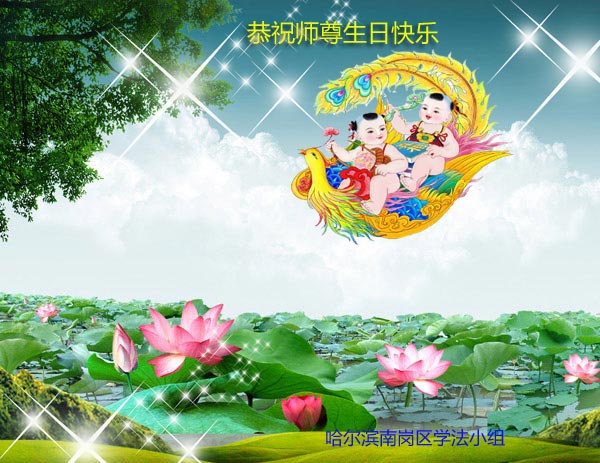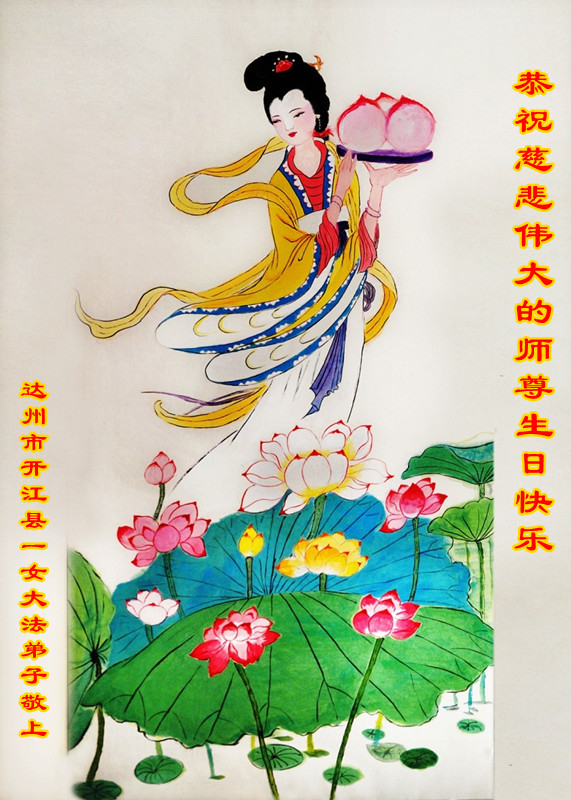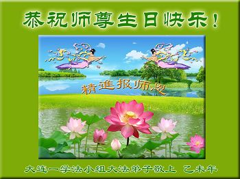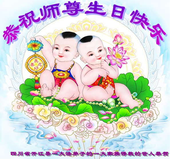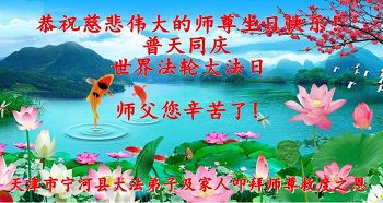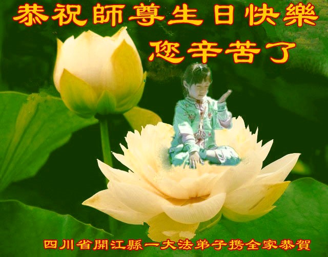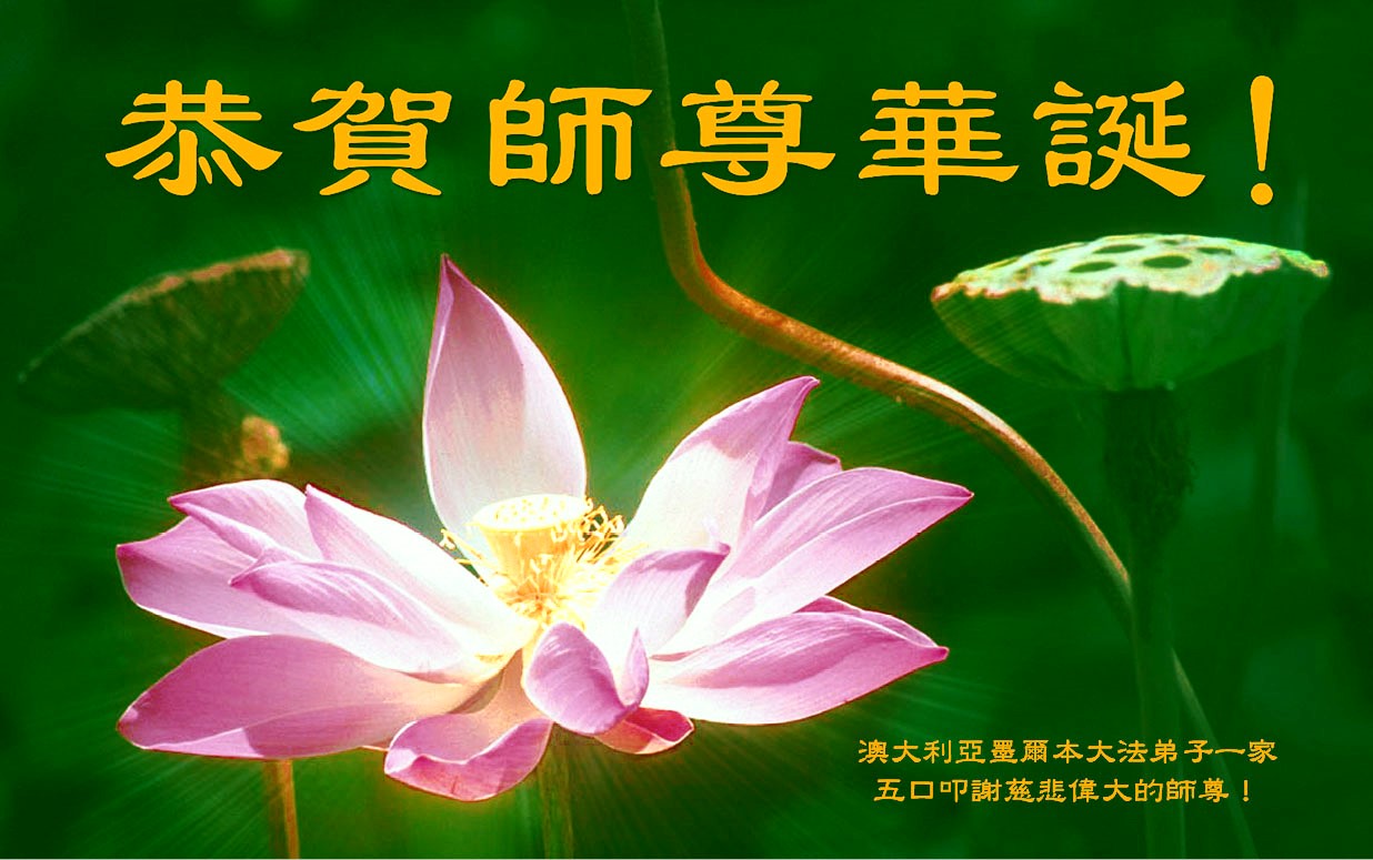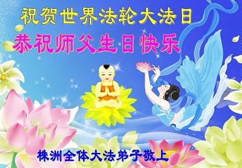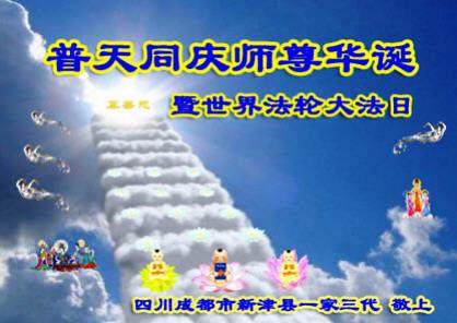 在这普天同庆的日子里,我代表法轮大法新学员及全体大法弟子及家属叩拜师尊华诞!我们将永远践行师尊的教导,按“真、善、忍”的标准做一个比好人更好的人,努力做好三件事,精進实修,救度更多众生!