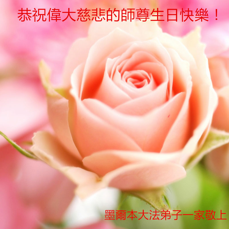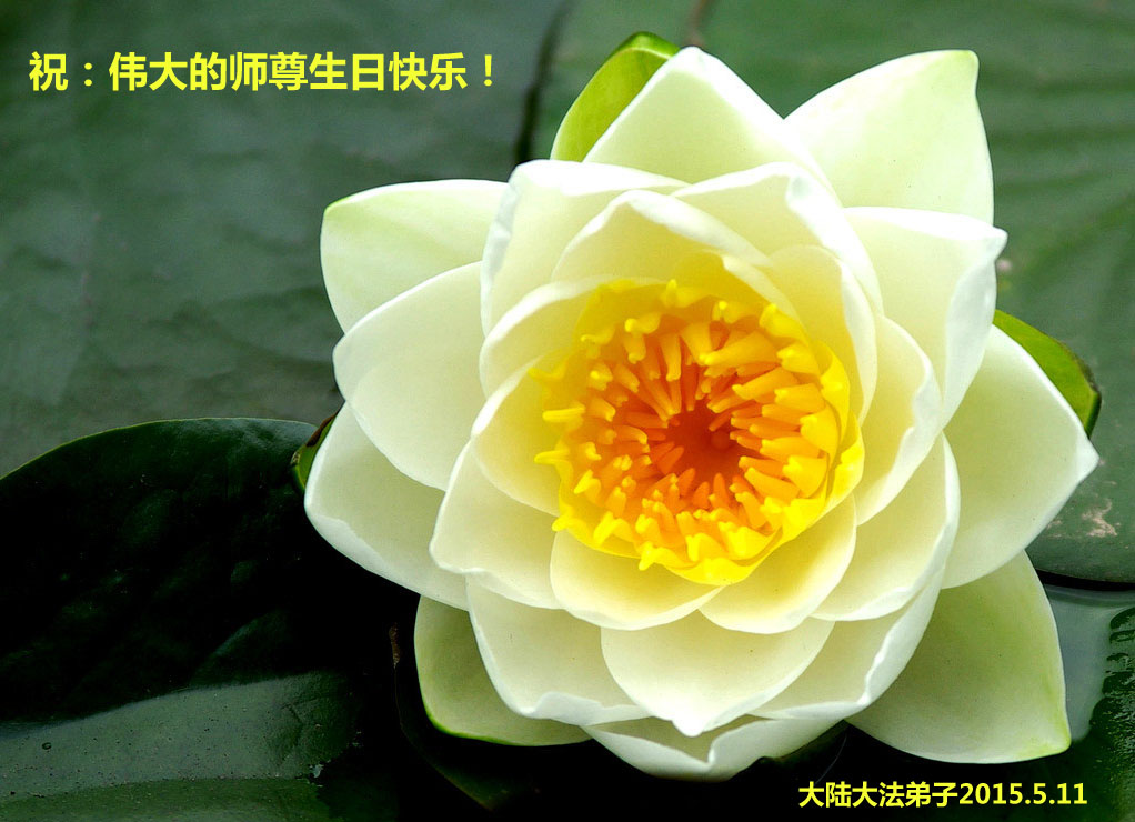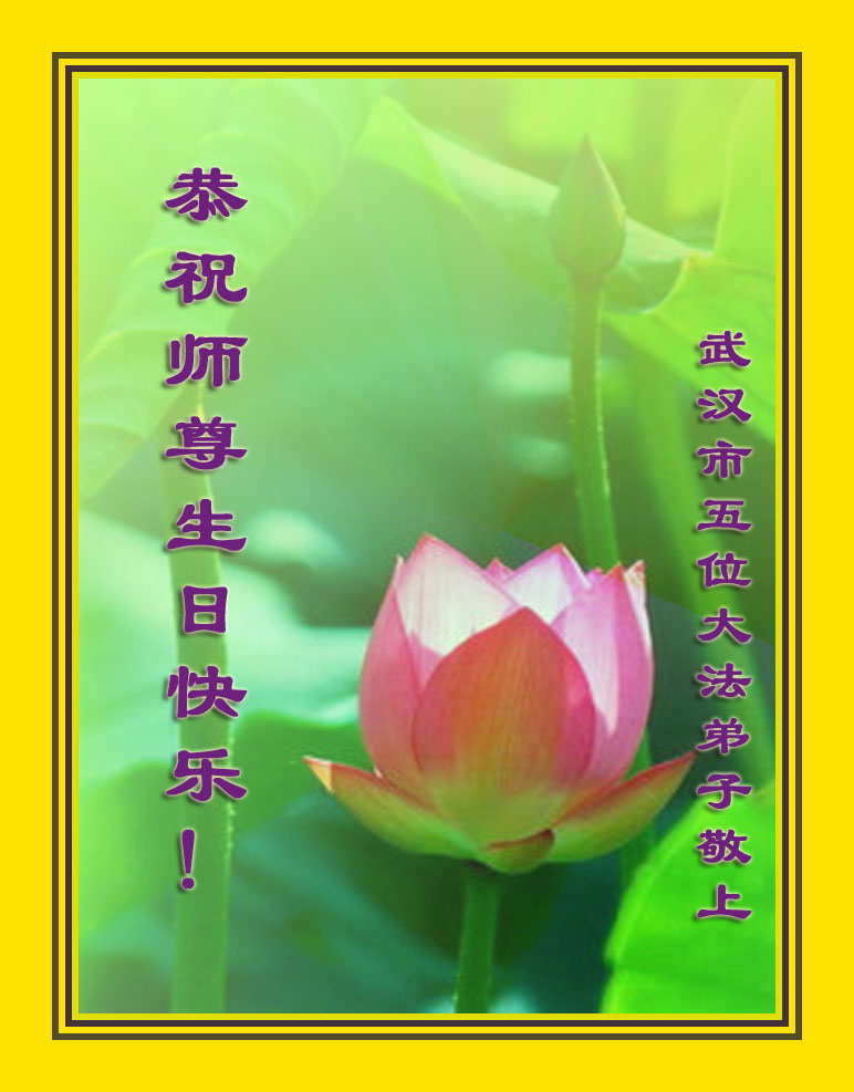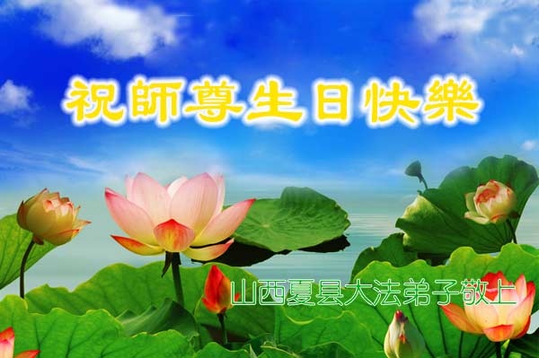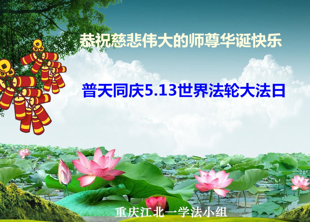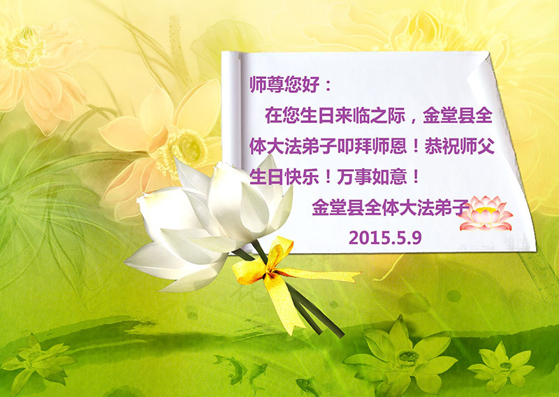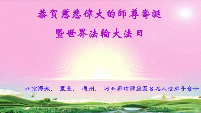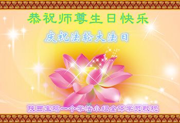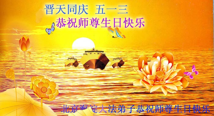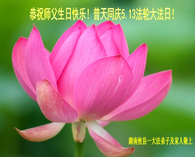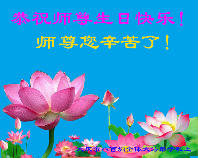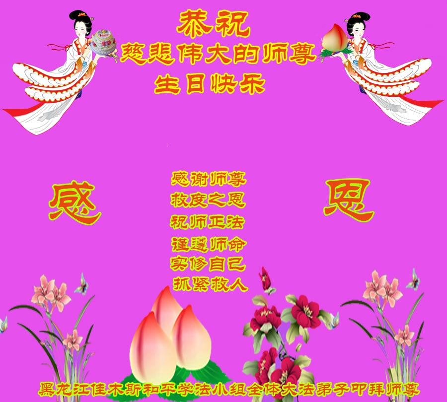 在这普天同庆的日子里,我代表法轮大法新学员及全体大法弟子及家属叩拜师尊华诞!我们将永远践行师尊的教导,按“真、善、忍”的标准做一个比好人更好的人,努力做好三件事,精進实修,救度更多众生!