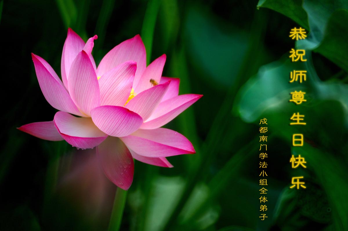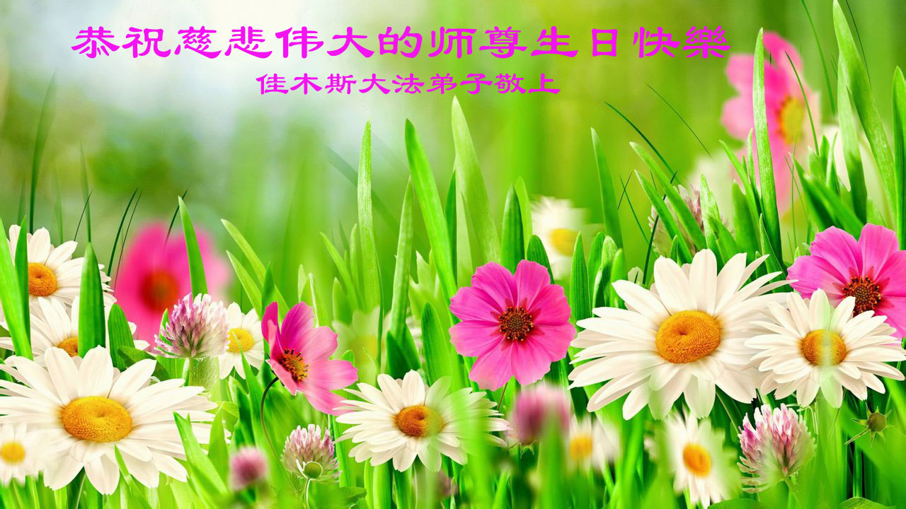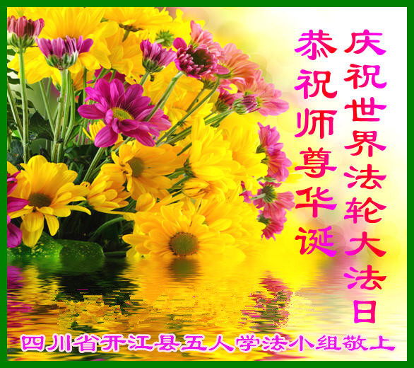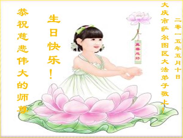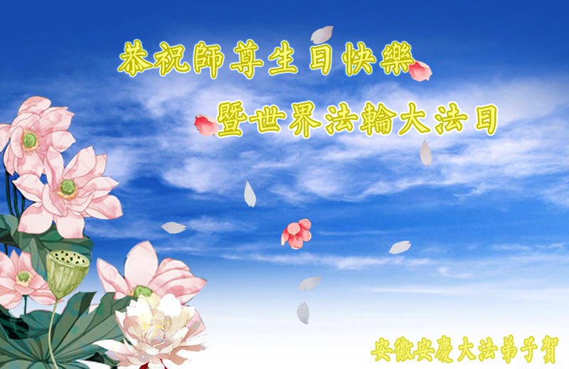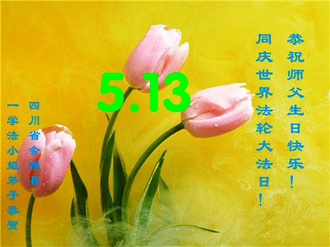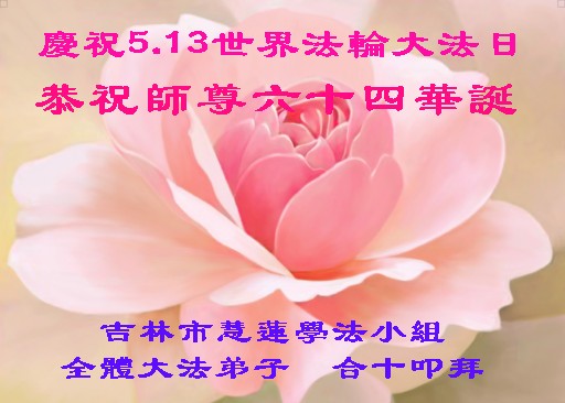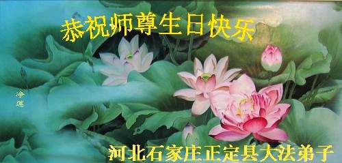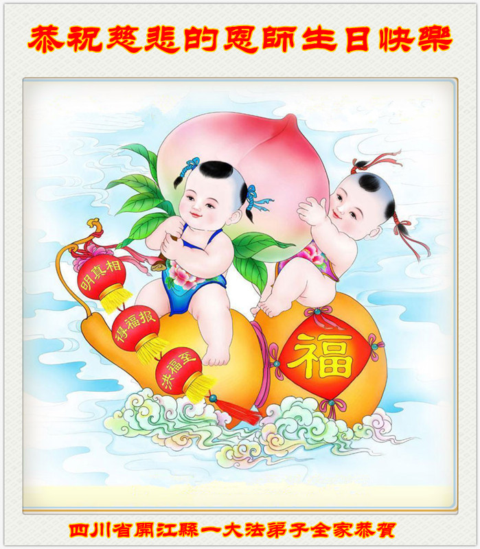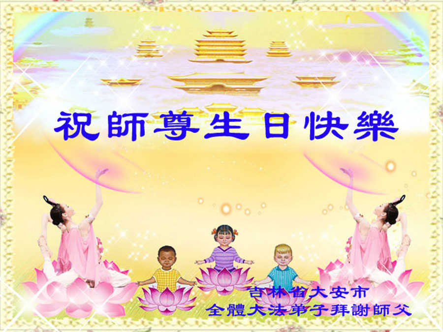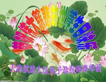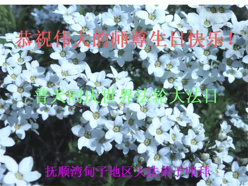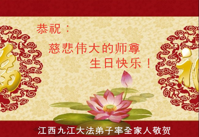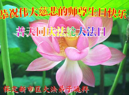 在这普天同庆的日子里,我代表法轮大法新学员及全体大法弟子及家属叩拜师尊华诞!我们将永远践行师尊的教导,按“真、善、忍”的标准做一个比好人更好的人,努力做好三件事,精進实修,救度更多众生!
