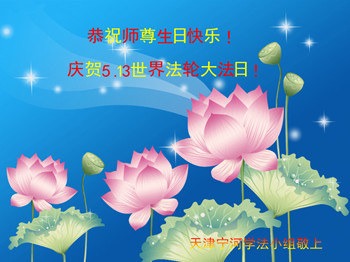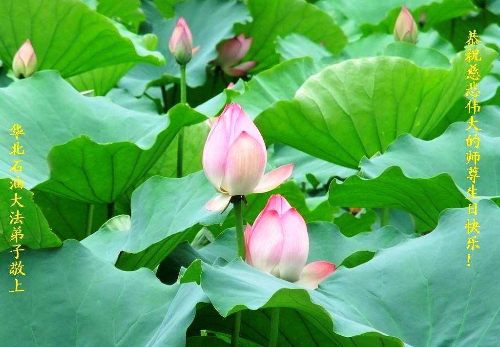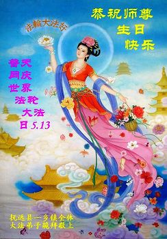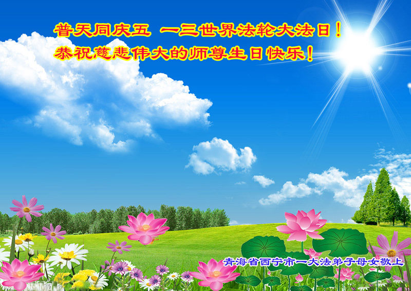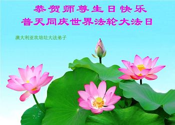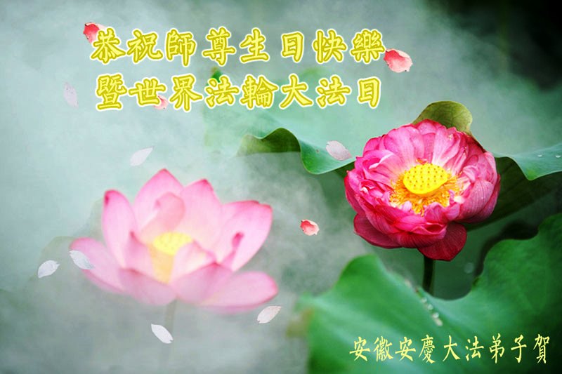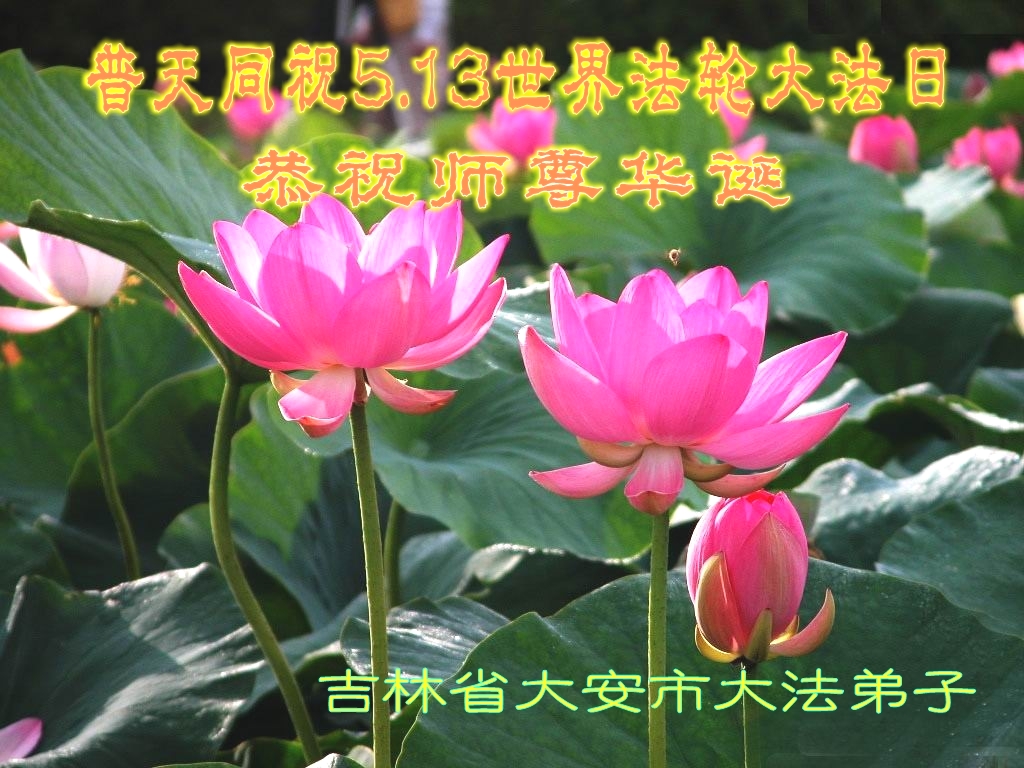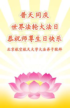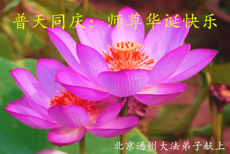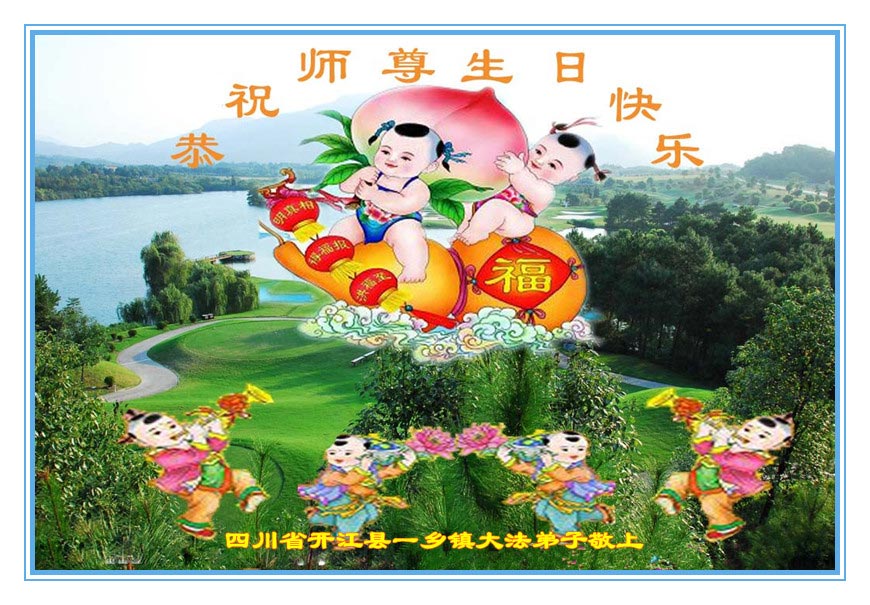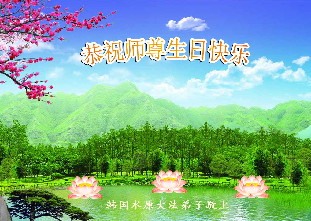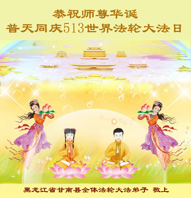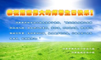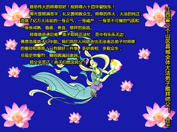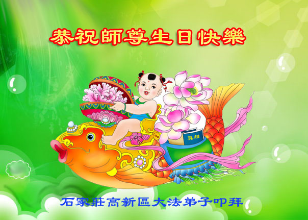 在这普天同庆的日子里,我代表法轮大法新学员及全体大法弟子及家属叩拜师尊华诞!我们将永远践行师尊的教导,按“真、善、忍”的标准做一个比好人更好的人,努力做好三件事,精進实修,救度更多众生!