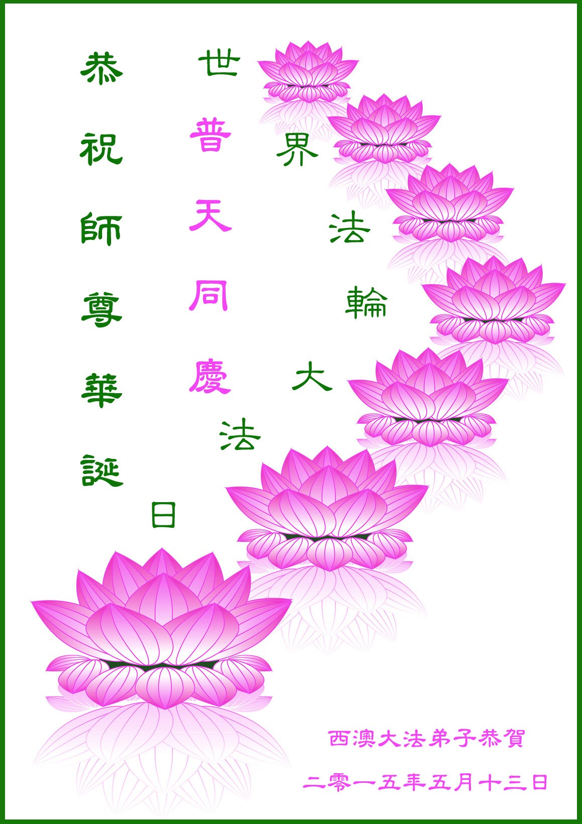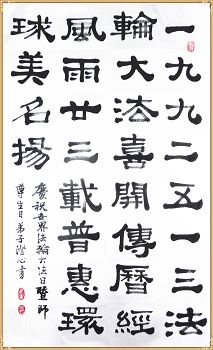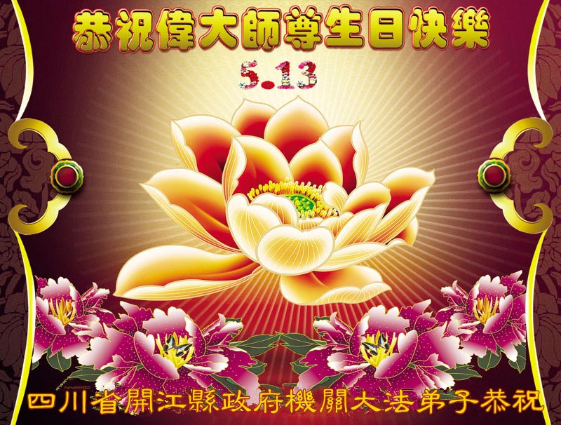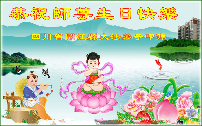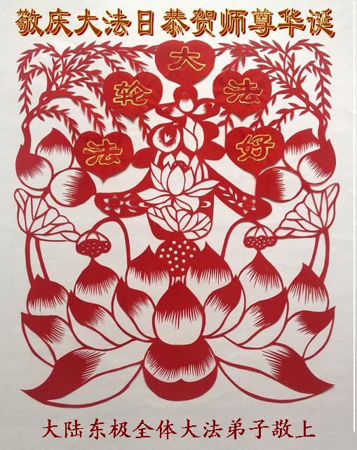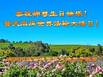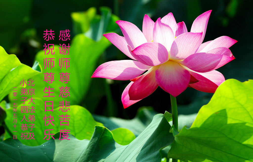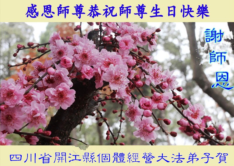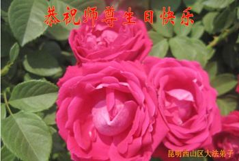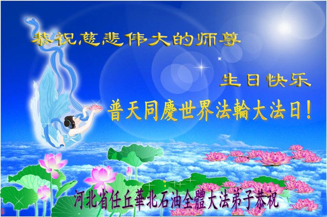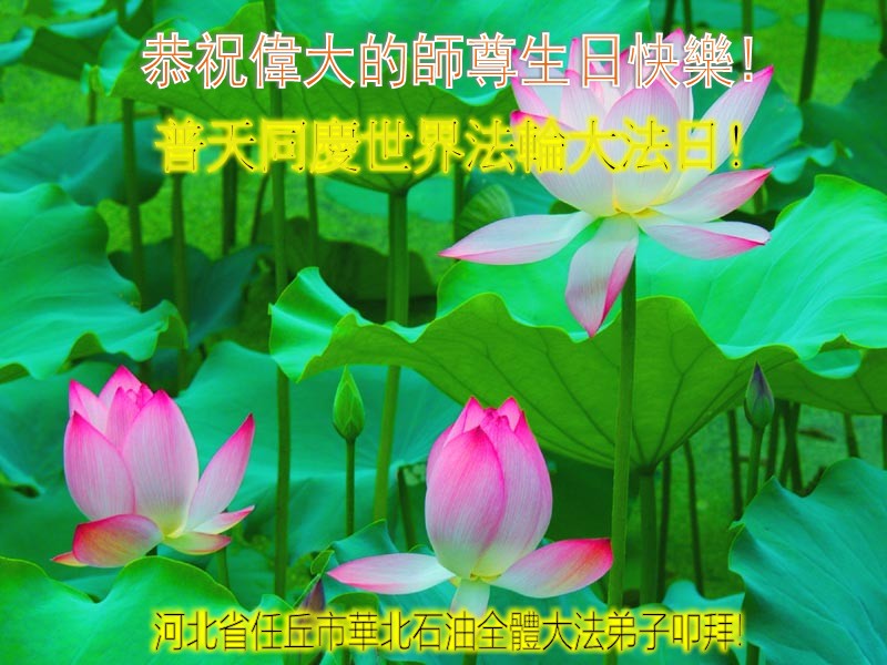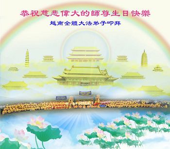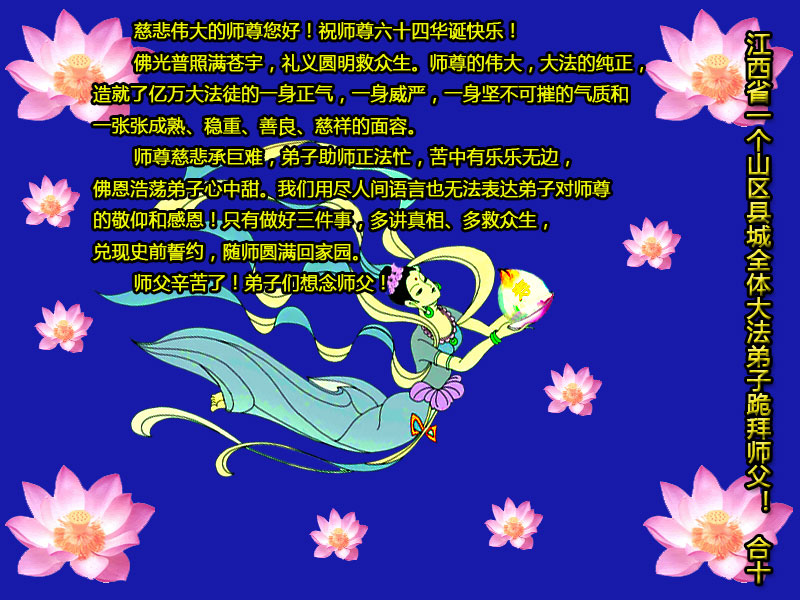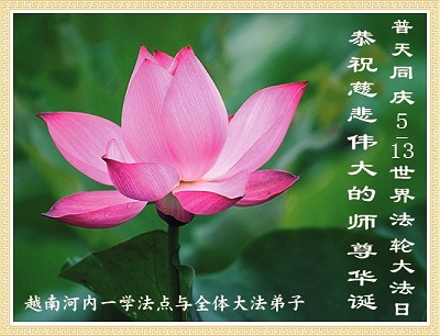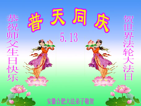 在这普天同庆的日子里,我代表法轮大法新学员及全体大法弟子及家属叩拜师尊华诞!我们将永远践行师尊的教导,按“真、善、忍”的标准做一个比好人更好的人,努力做好三件事,精進实修,救度更多众生!