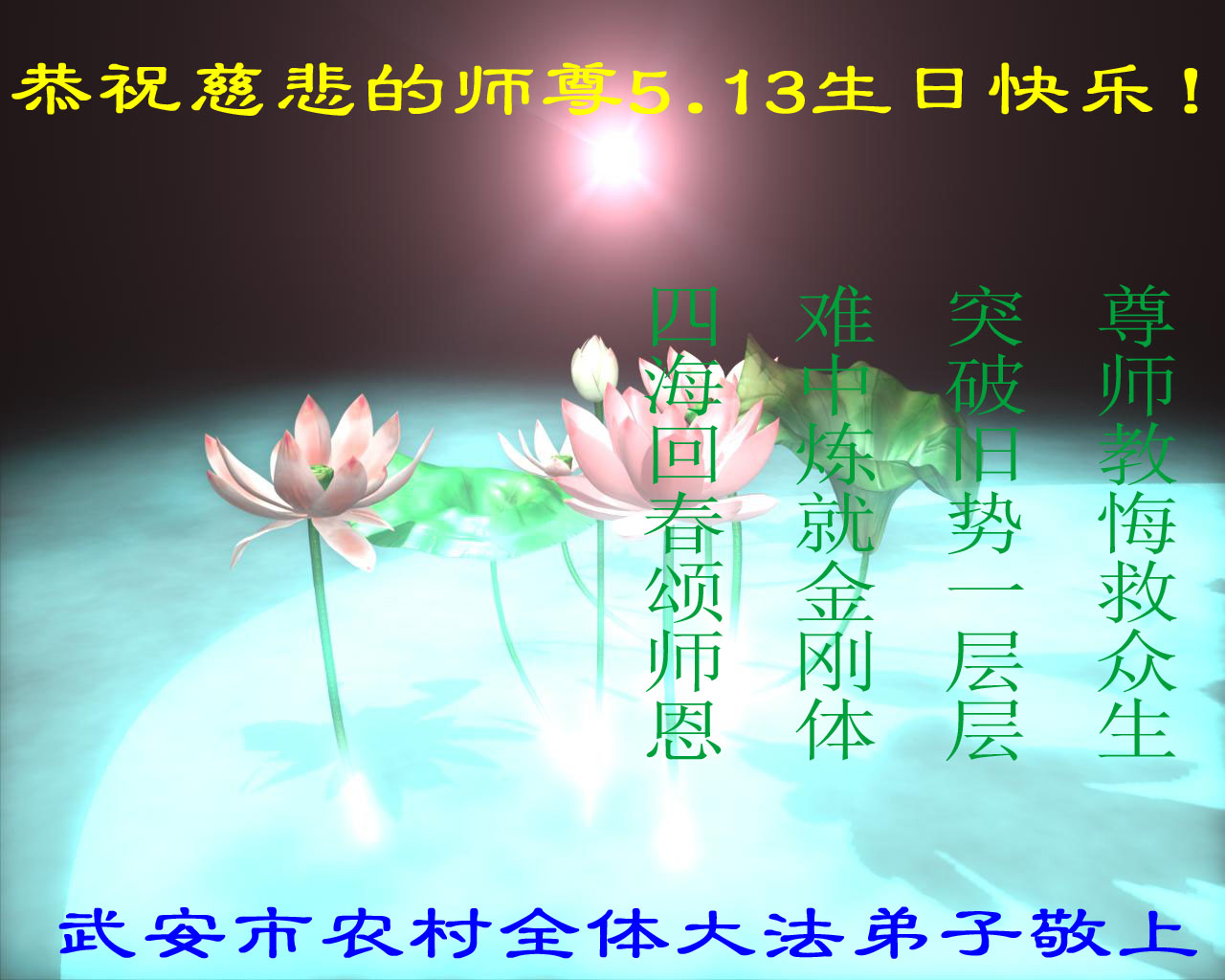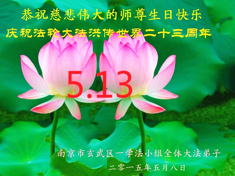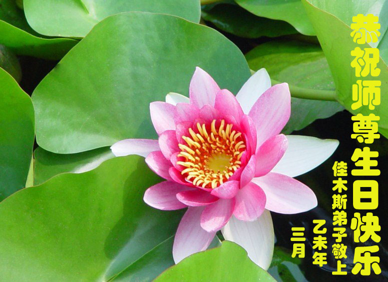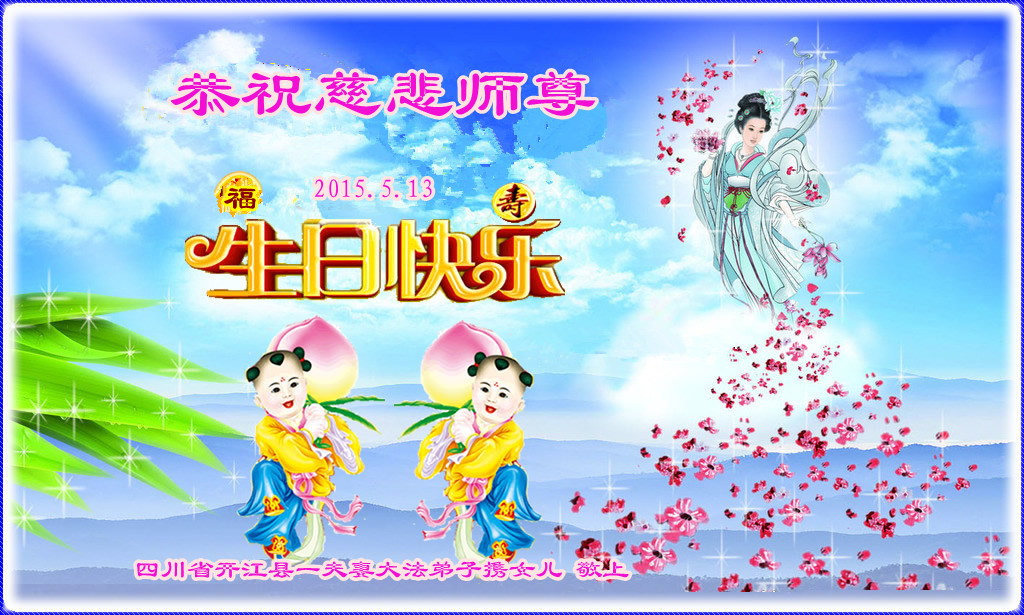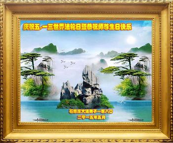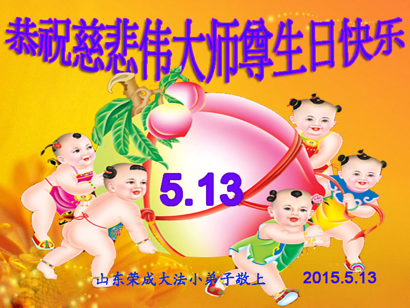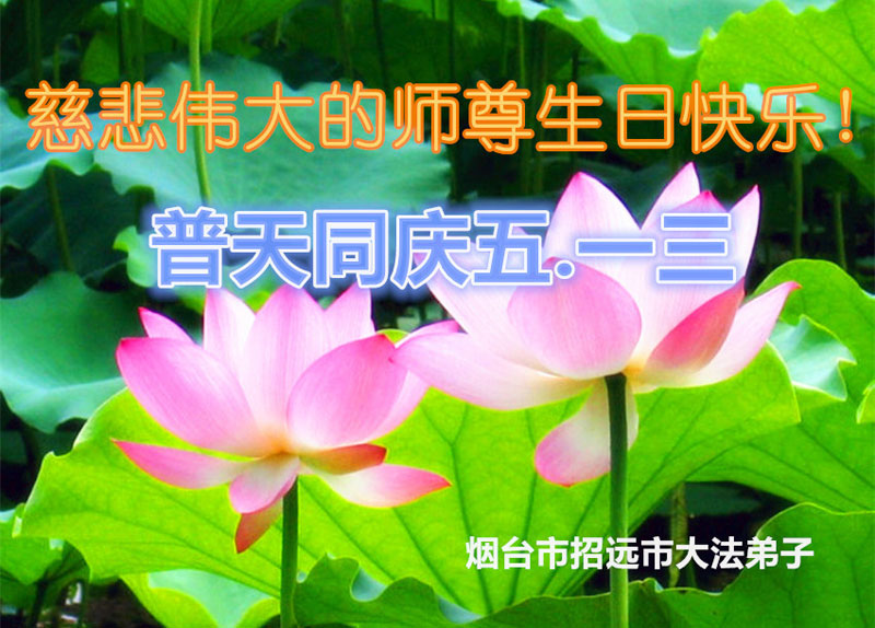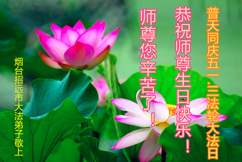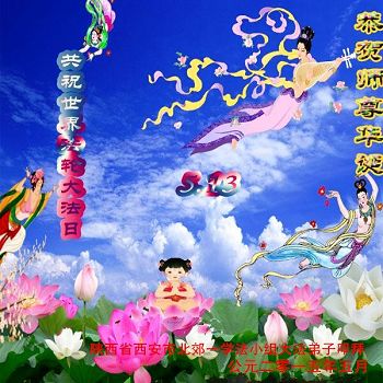 值此“五一三”普天同庆之日,我二人恭祝慈悲伟大的师尊生日快乐!叩谢师恩!