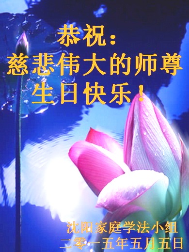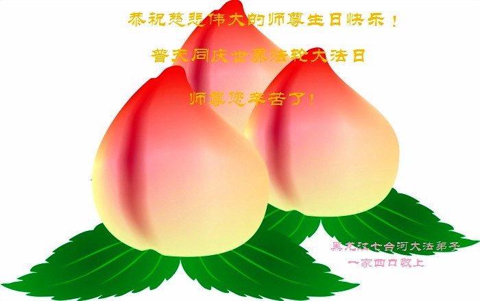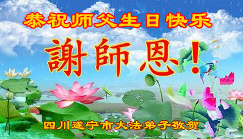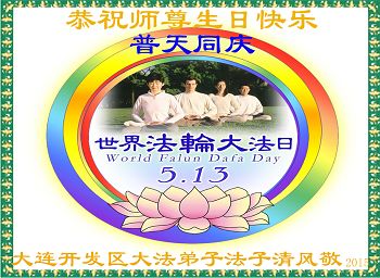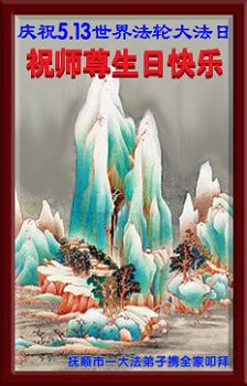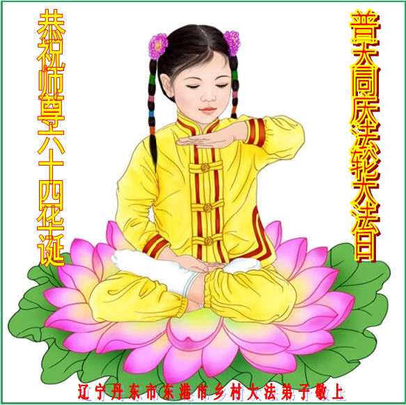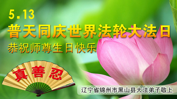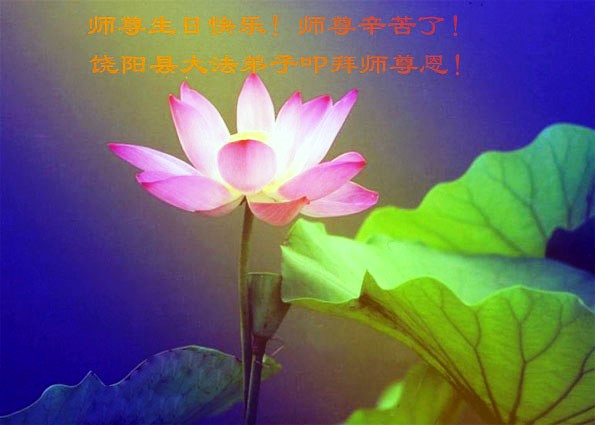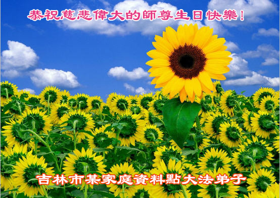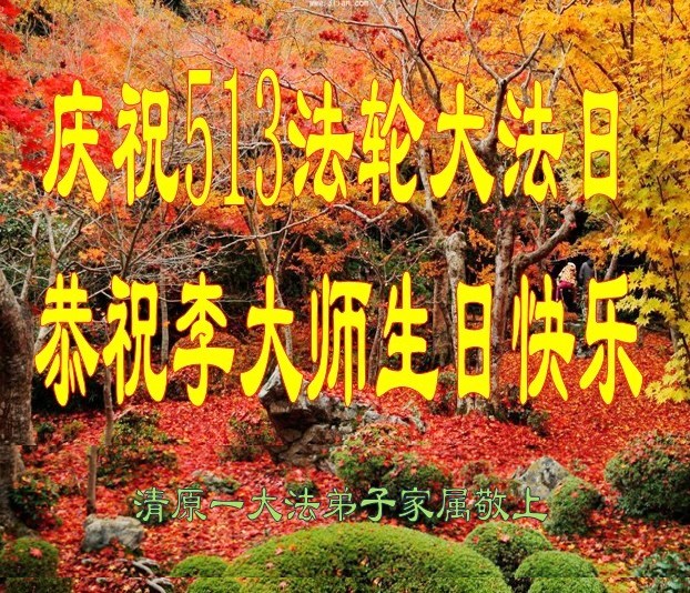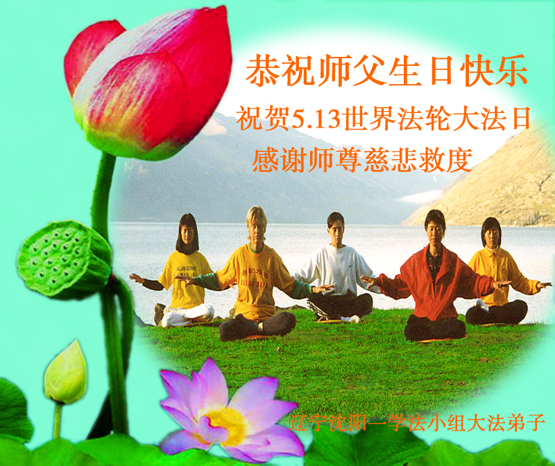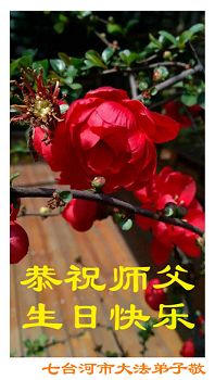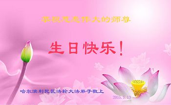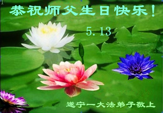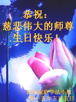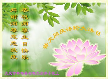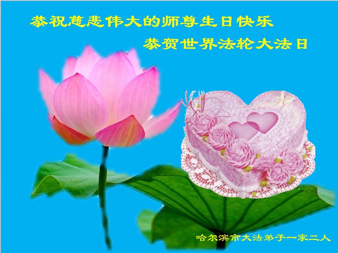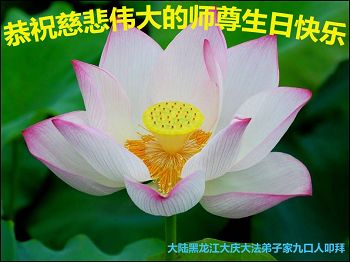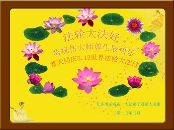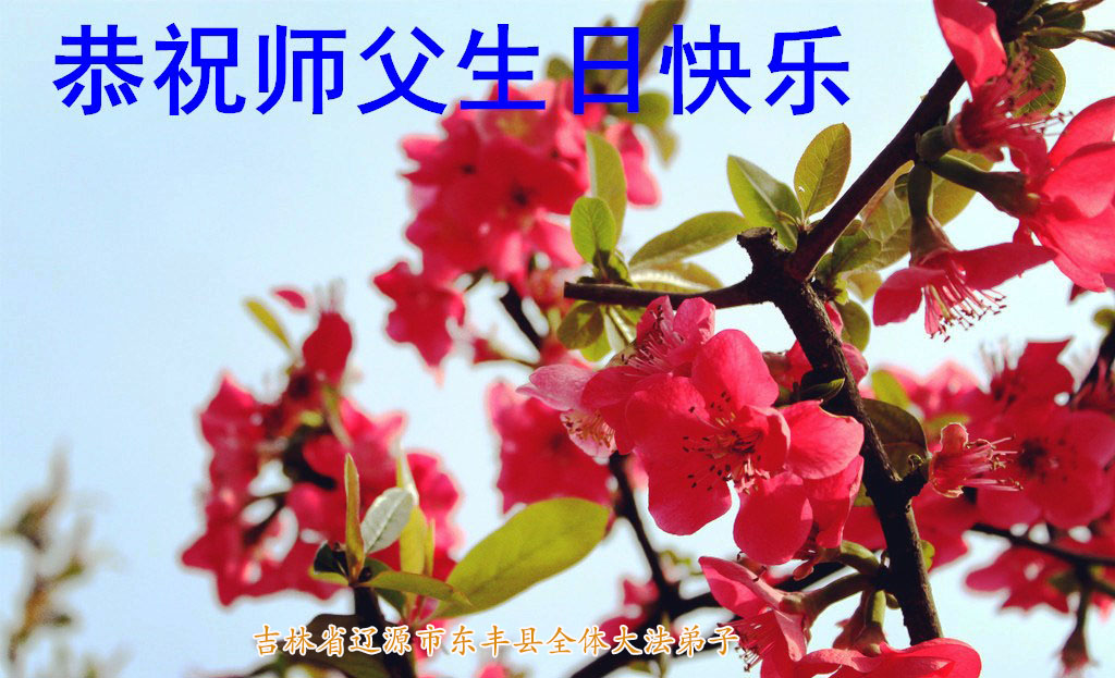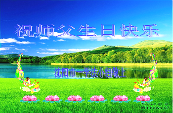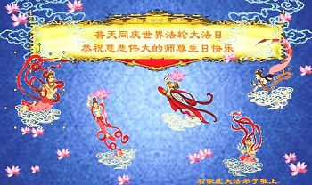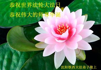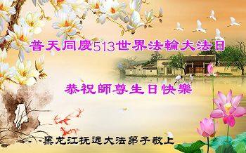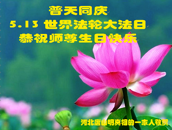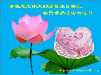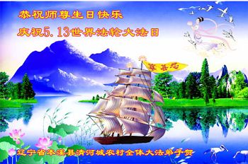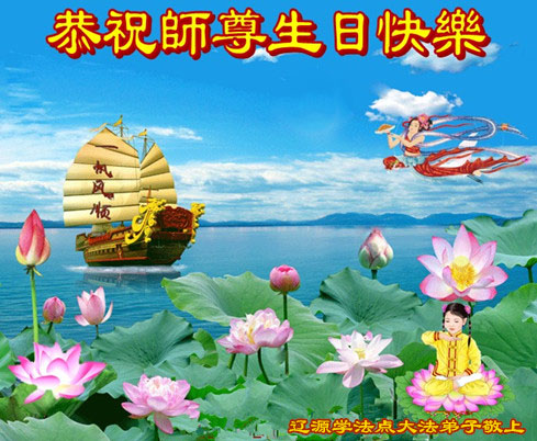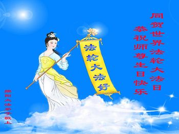 我是辽宁省大法修炼者家属,这几年师父对我不薄,让我身心受益,为表达对师父的感恩之情,特在法轮大法日祝贺师父,感激之情无法用语言表达。所以在此,只能祝大法师父生日快乐!谢谢师父!