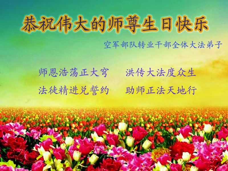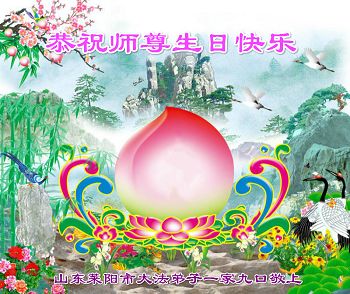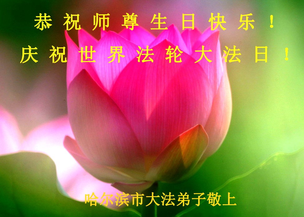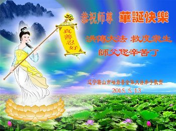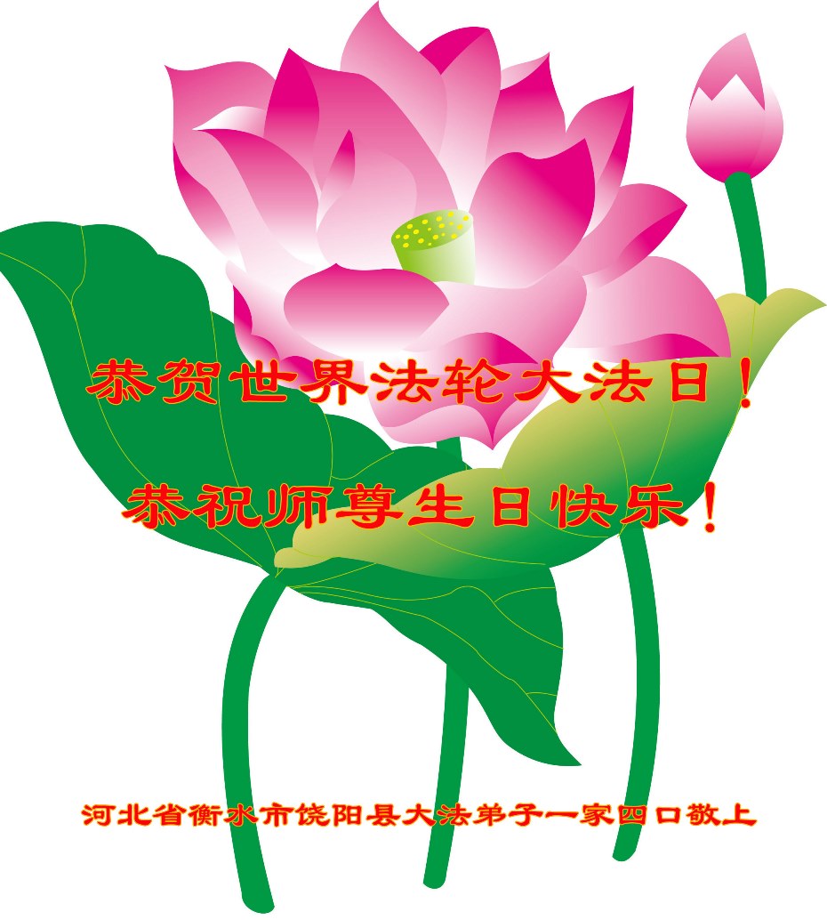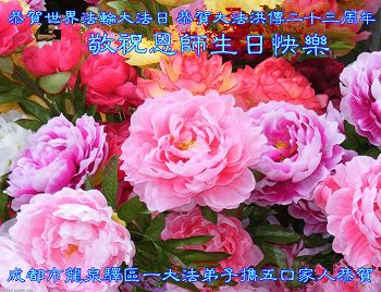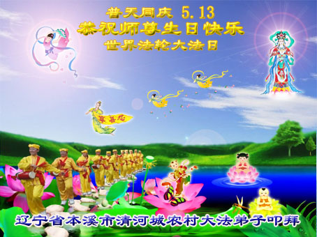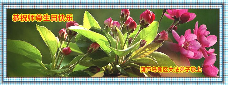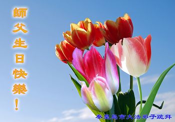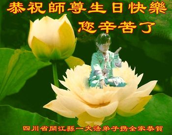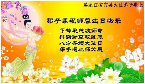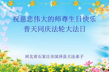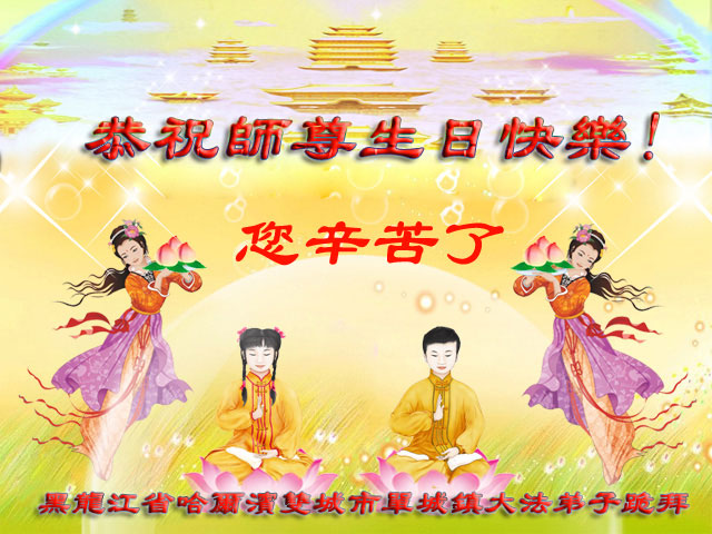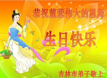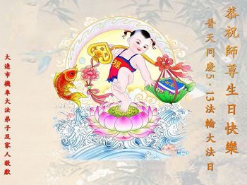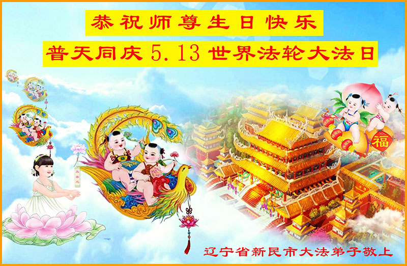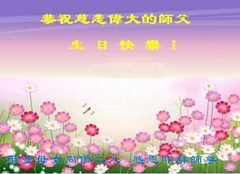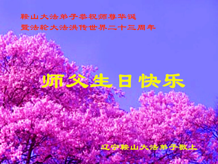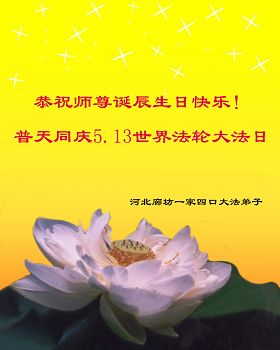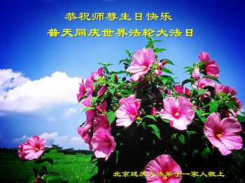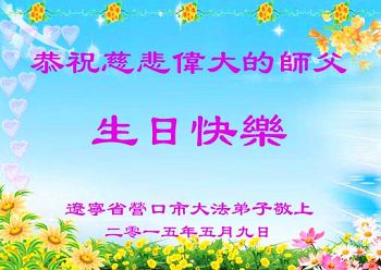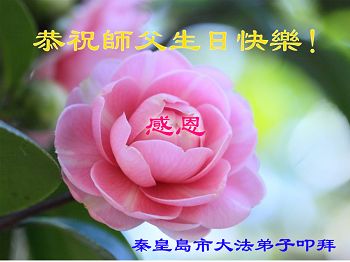 我是辽宁省大法修炼者家属,这几年师父对我不薄,让我身心受益,为表达对师父的感恩之情,特在法轮大法日祝贺师父,感激之情无法用语言表达。所以在此,只能祝大法师父生日快乐!谢谢师父!
