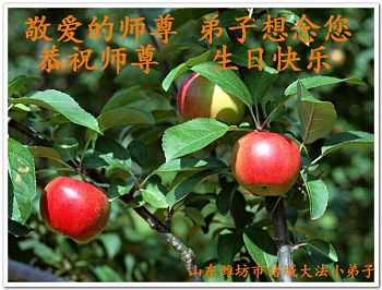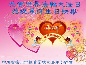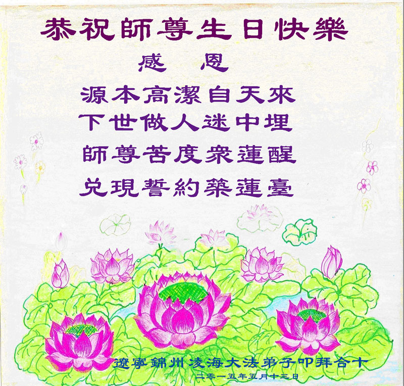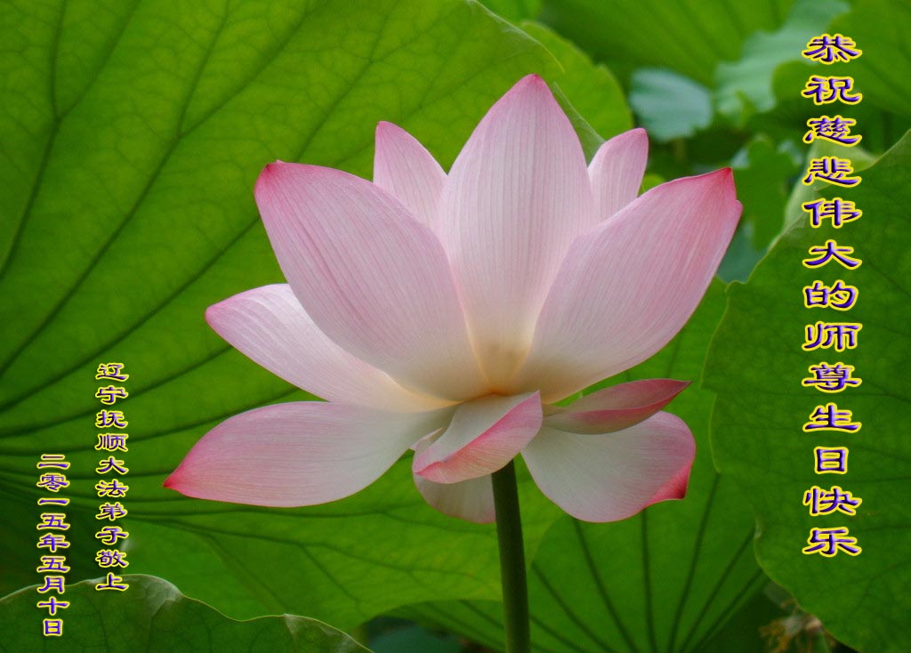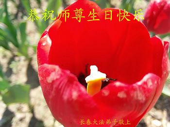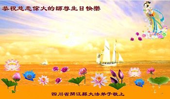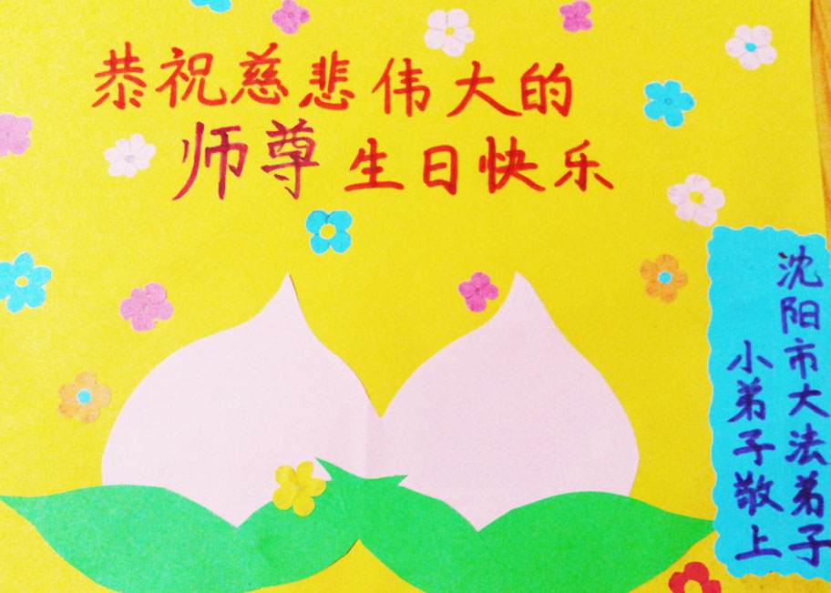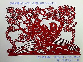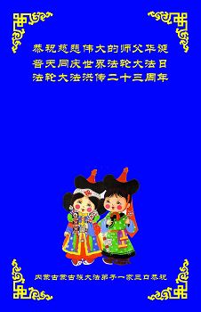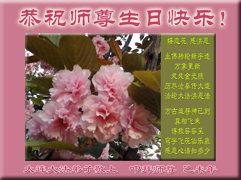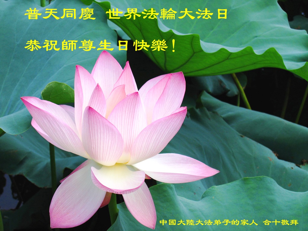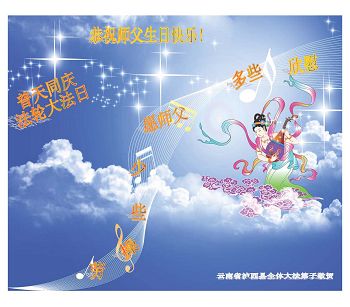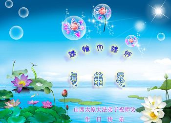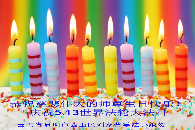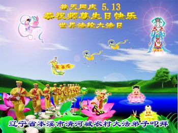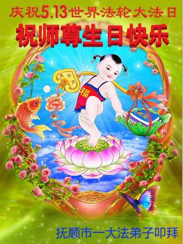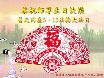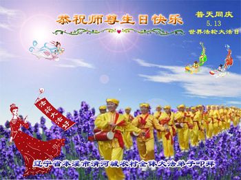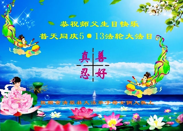 我是辽宁省大法修炼者家属,这几年师父对我不薄,让我身心受益,为表达对师父的感恩之情,特在法轮大法日祝贺师父,感激之情无法用语言表达。所以在此,只能祝大法师父生日快乐!谢谢师父!