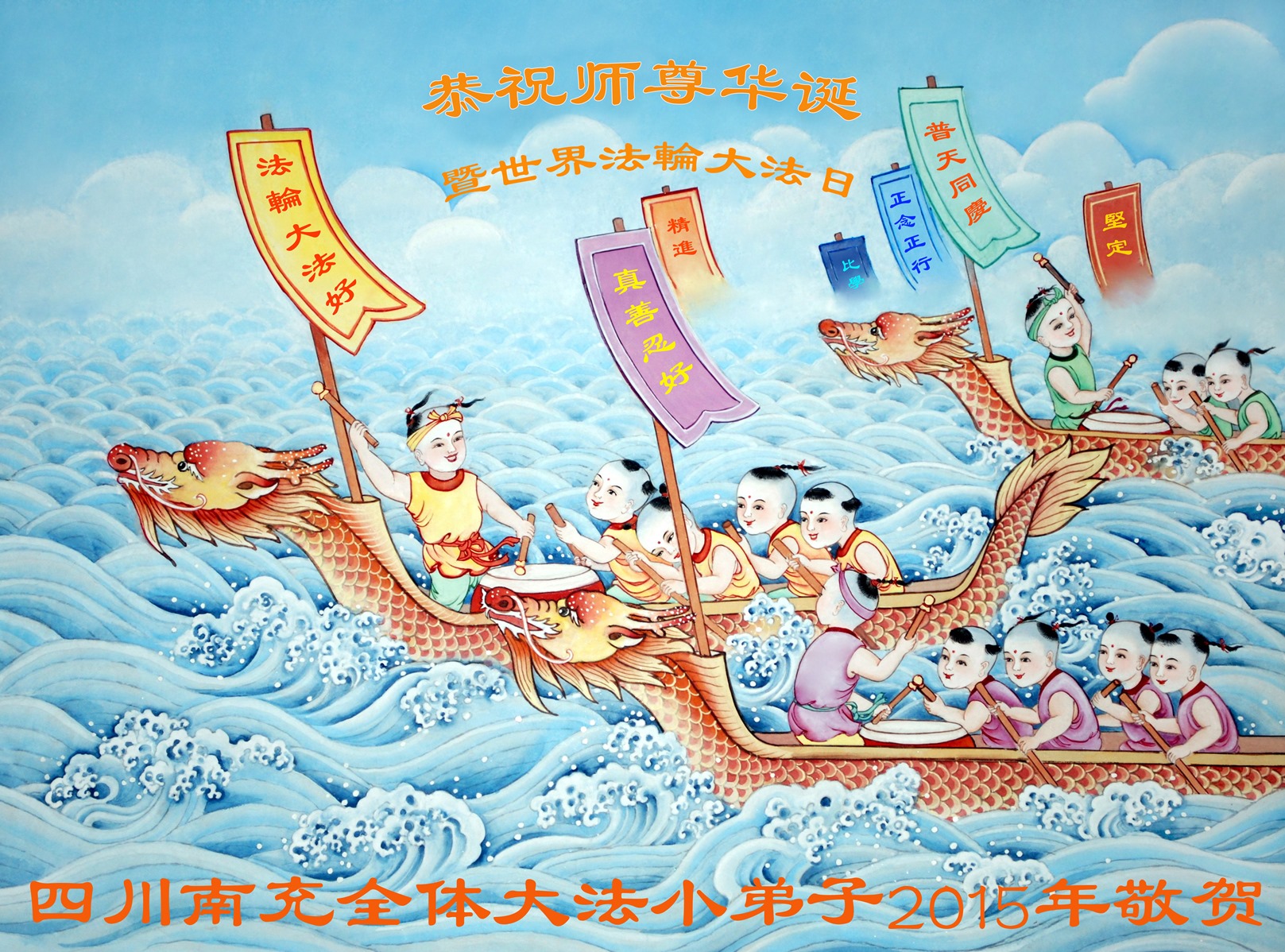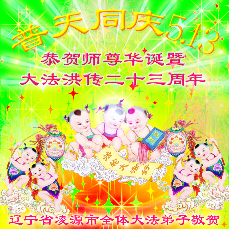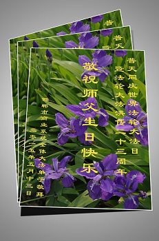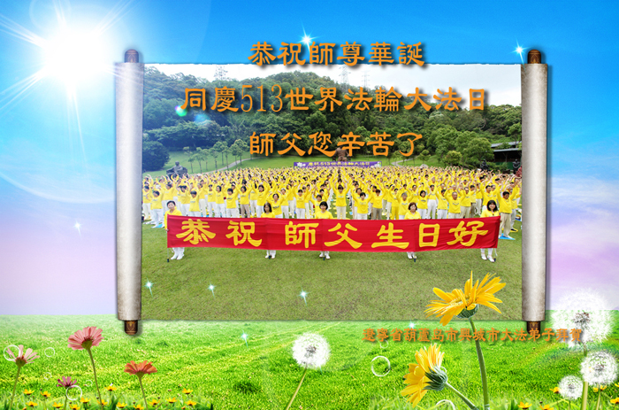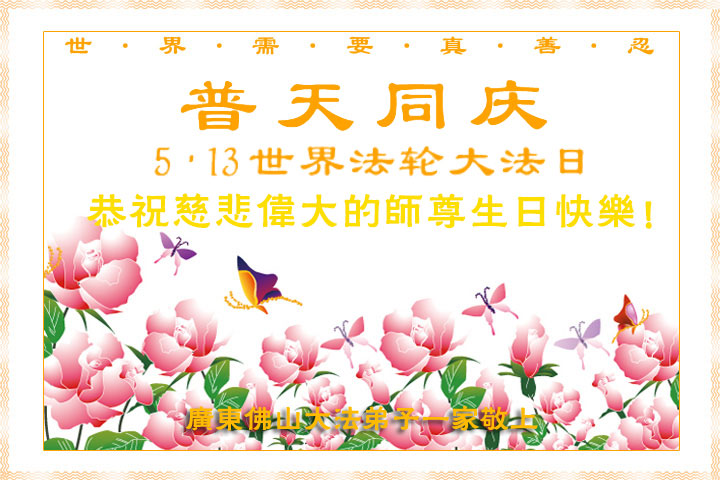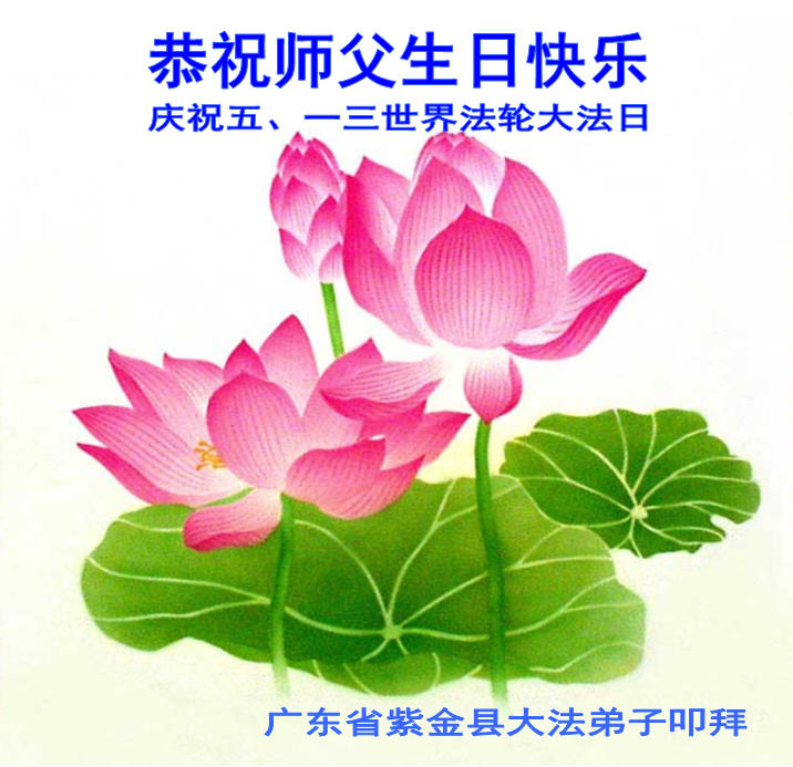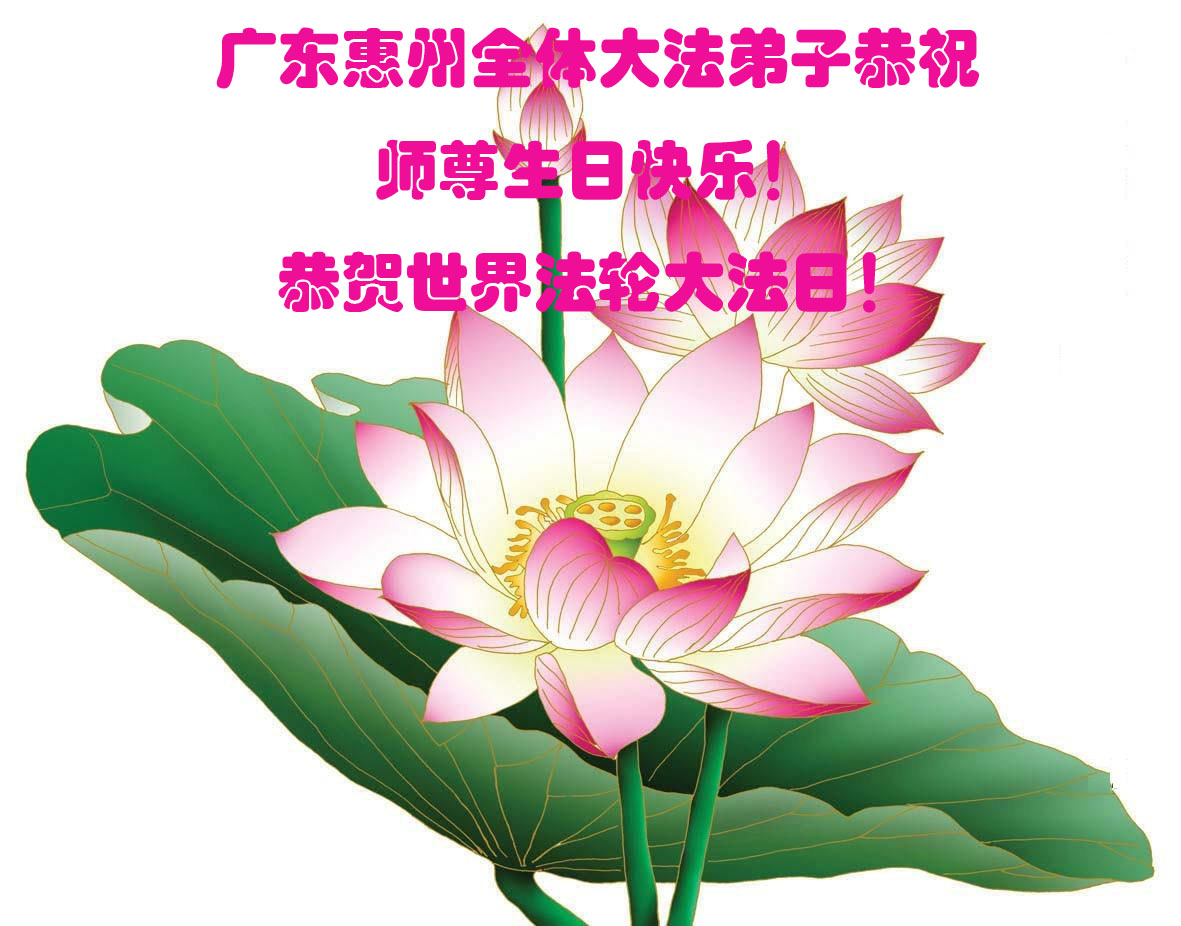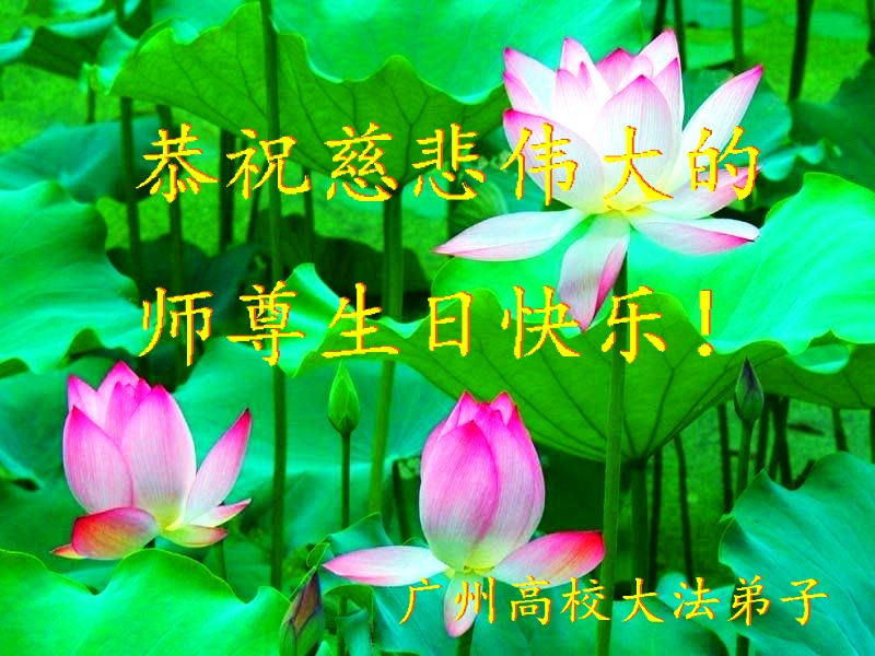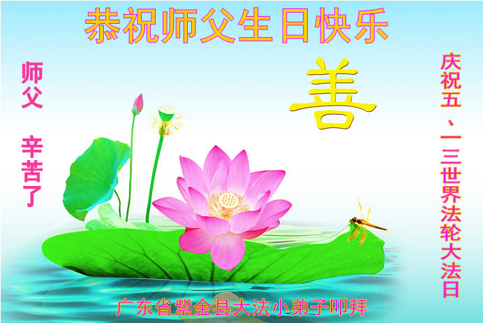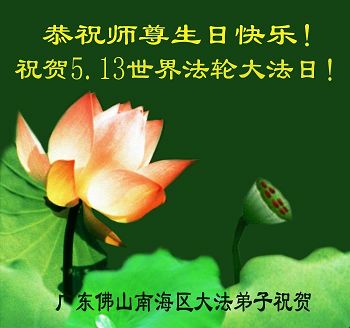 广东明真相世人合十叩拜,恭贺大法师父六十四生日华诞暨恭贺第十六届“世界法轮大法日”!
