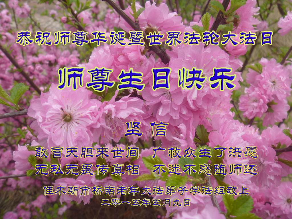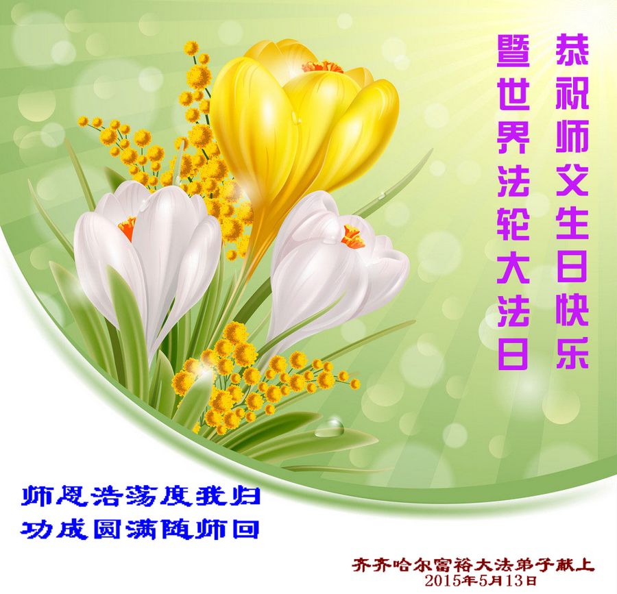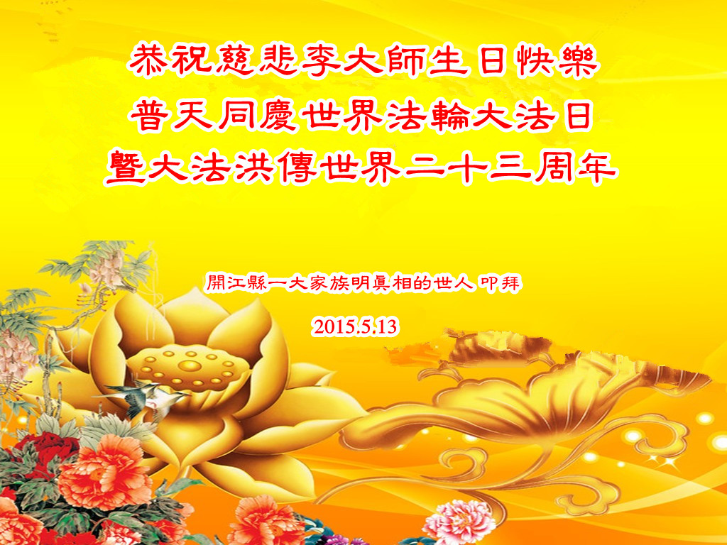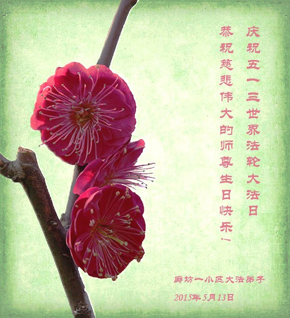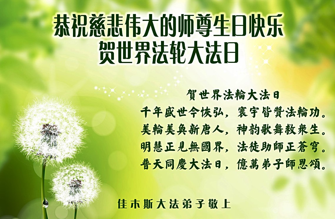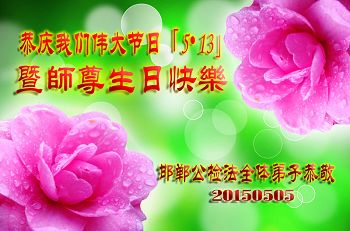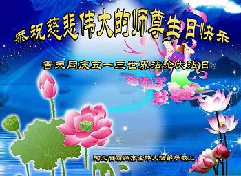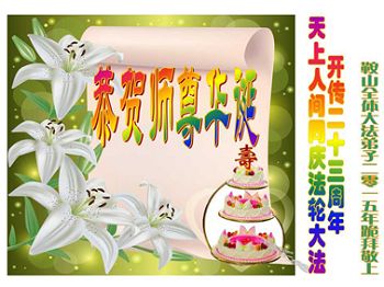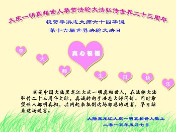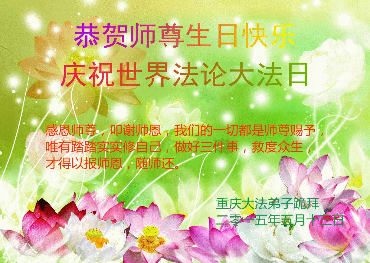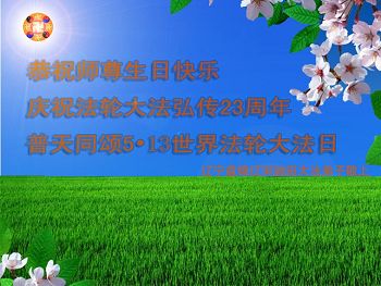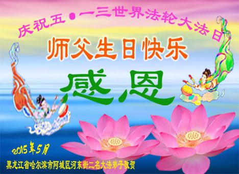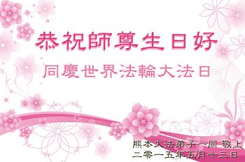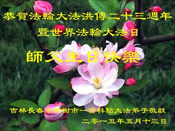 <英文版: http://en.d2s3ombhnov3zf.cloudfront.net/html/articles/2015/5/19/150639.html>新学员恭贺世界法轮大法日暨师尊华诞(22条)