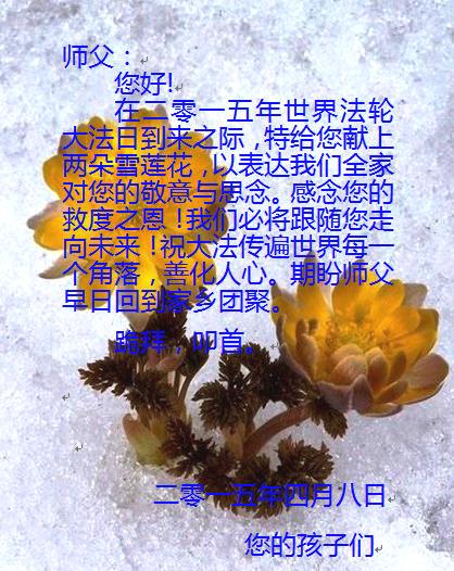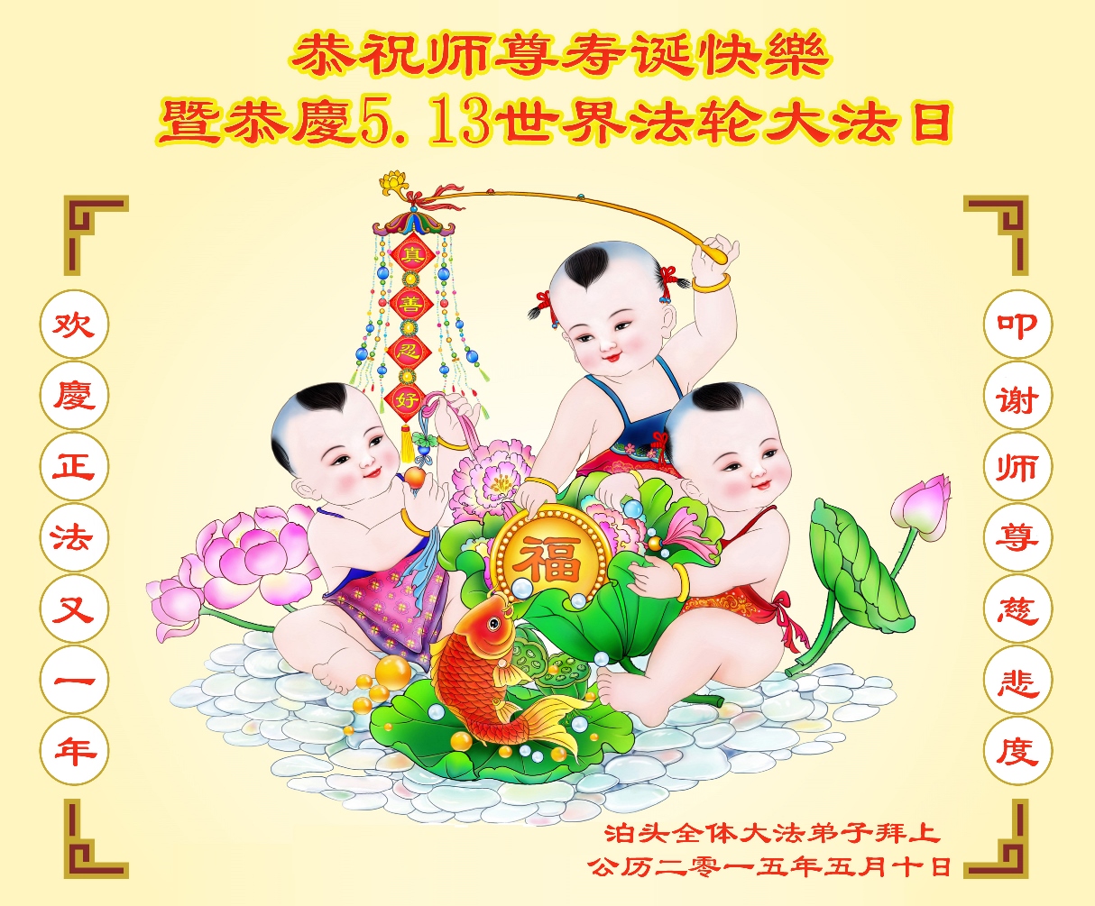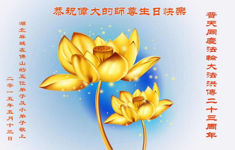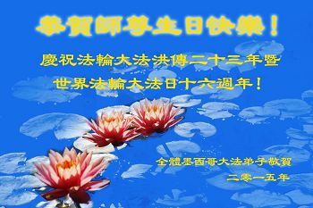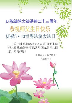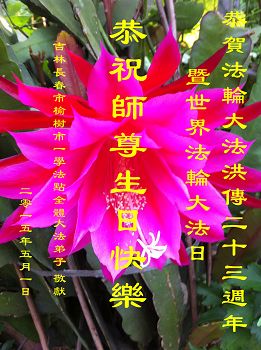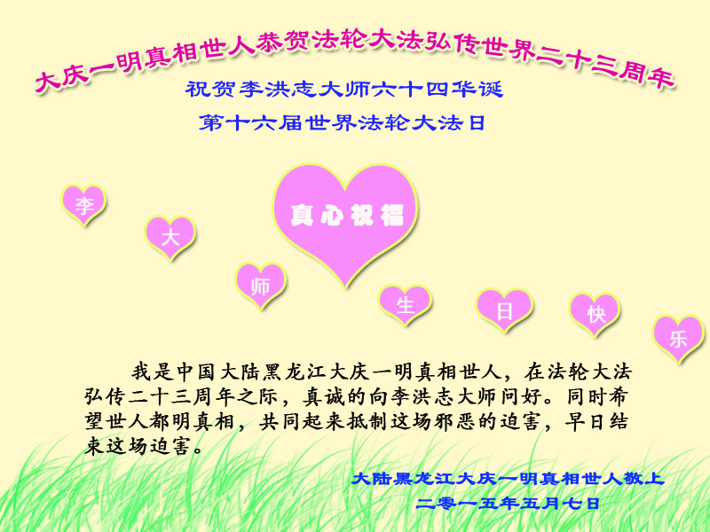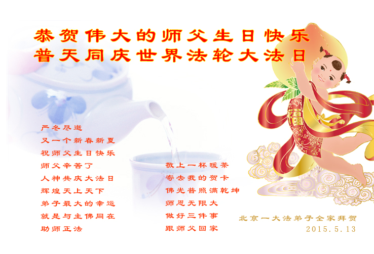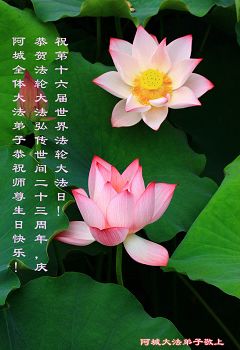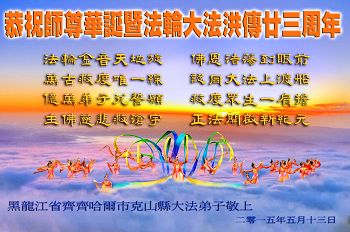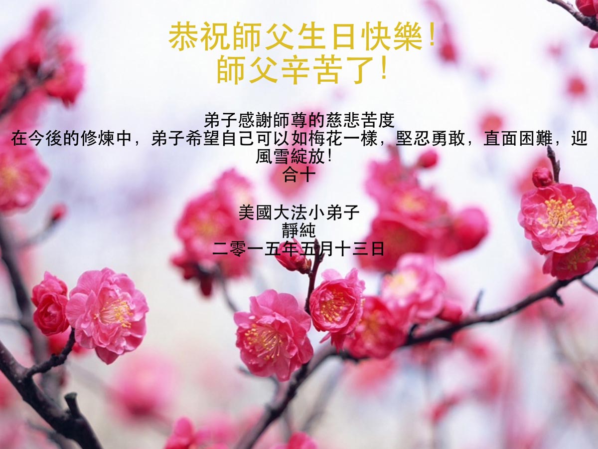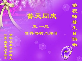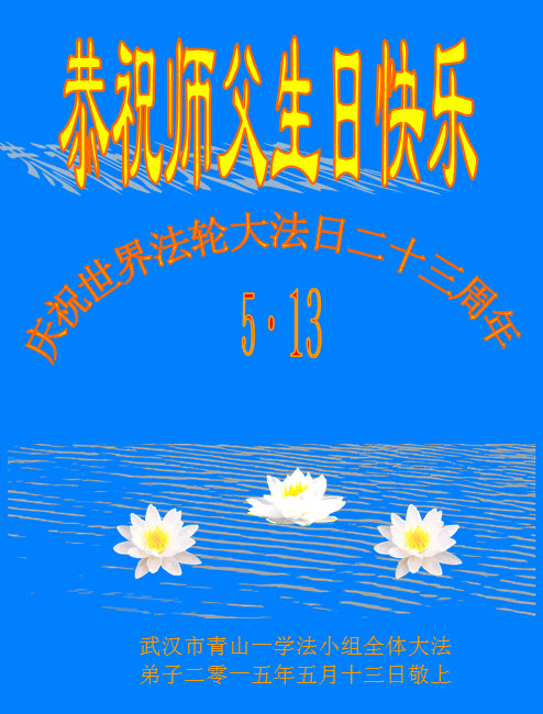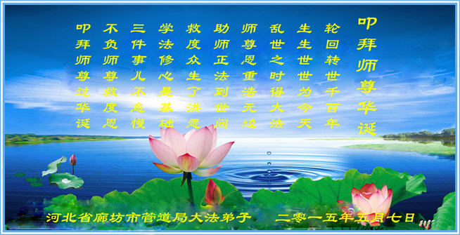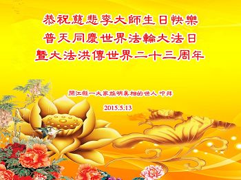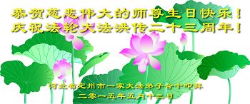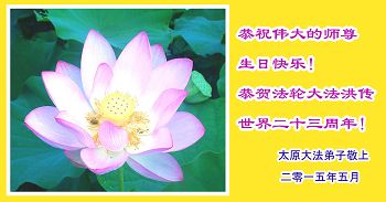 <英文版: http://en.d2s3ombhnov3zf.cloudfront.net/html/articles/2015/5/19/150639.html>新学员恭贺世界法轮大法日暨师尊华诞(22条)