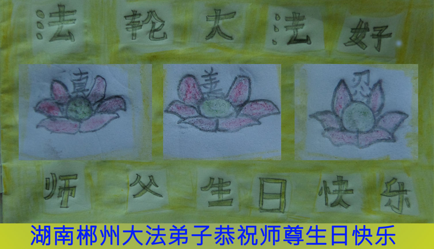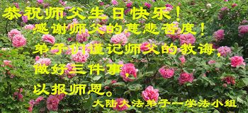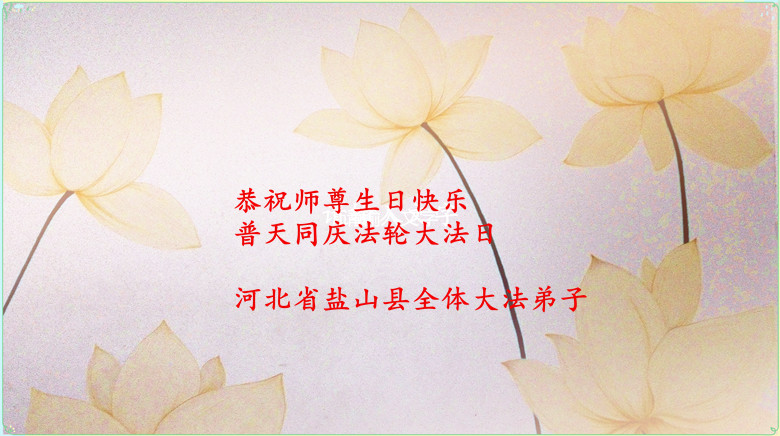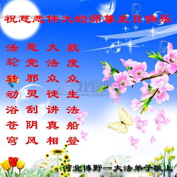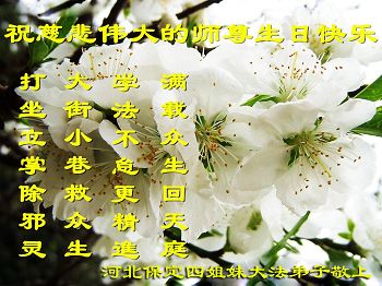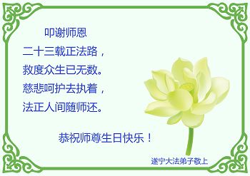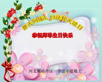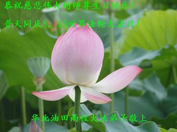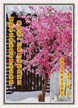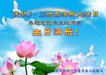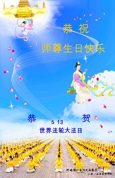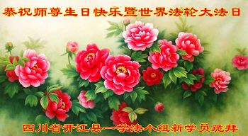 我是一名大法新学员,两年多的修炼实践使我对大法有了更深刻的理解和感悟。在这里,我想发自内心的说一句:法轮大法好!恭祝师尊生日快乐!
