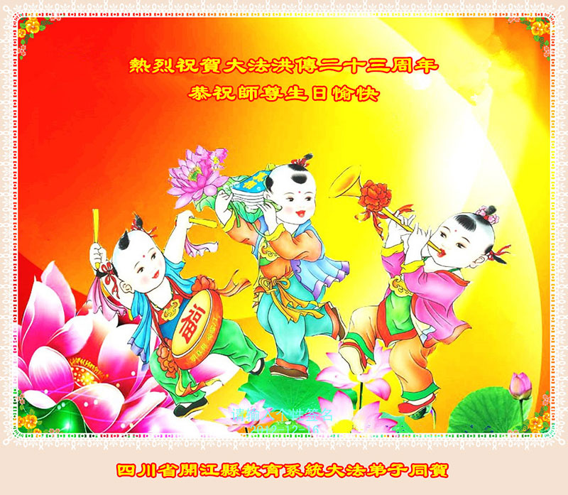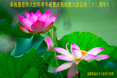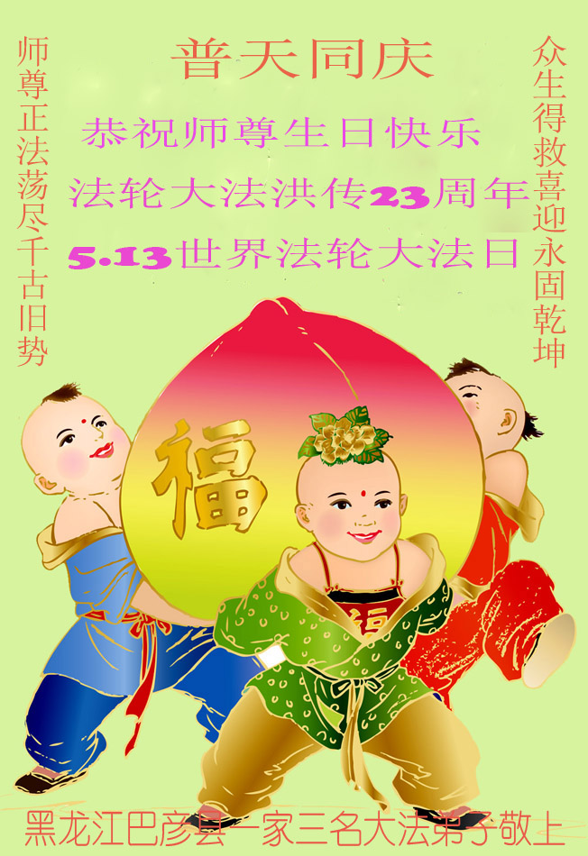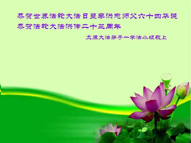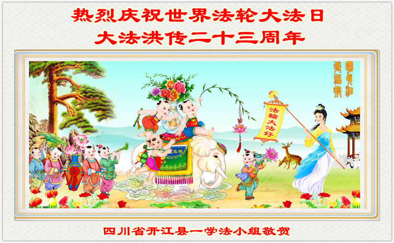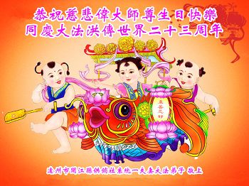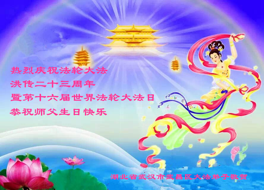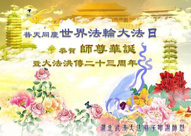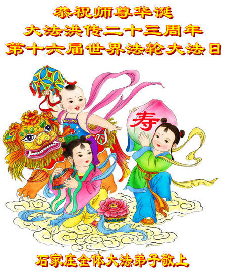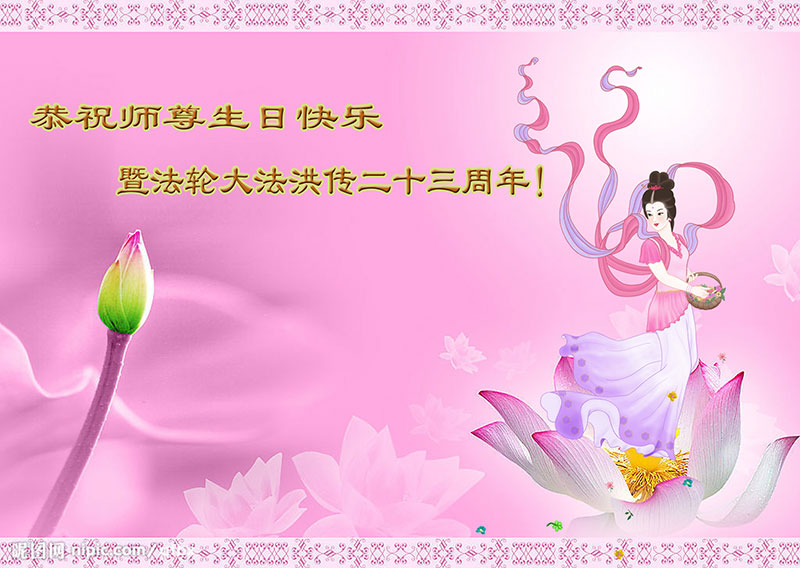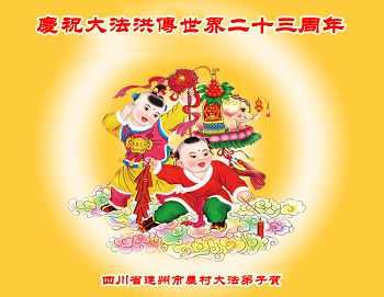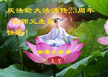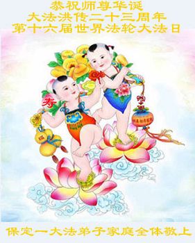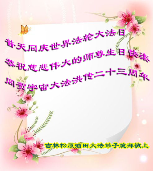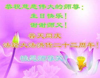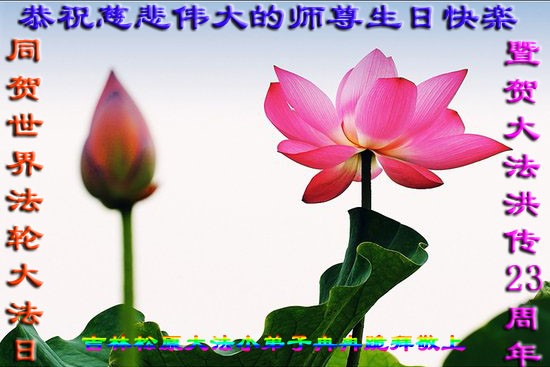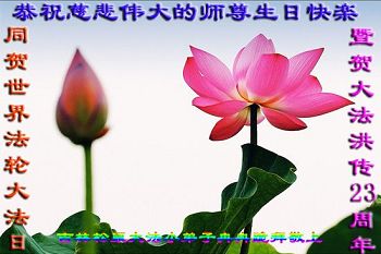 弟子代表学法小组同修及家中小弟子、新得法同修、还未修炼的家人、建筑体系众生恭祝法轮大法洪传二十三周年!恭祝世界法轮大法日十六周年!恭祝师尊华诞!