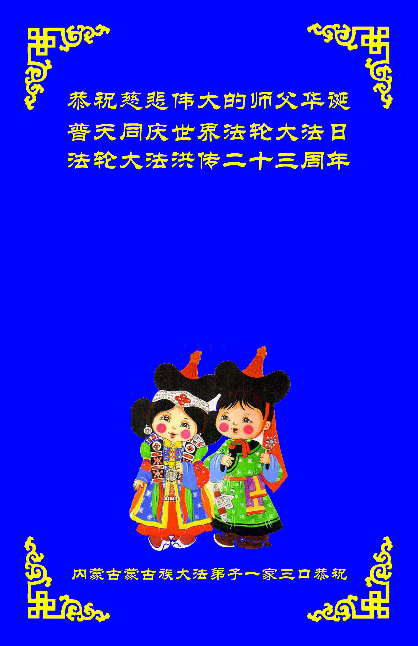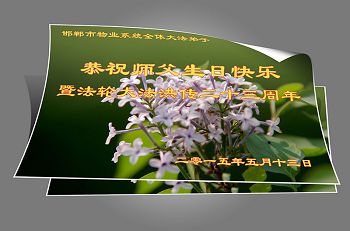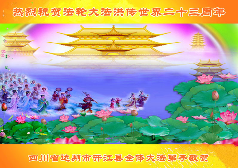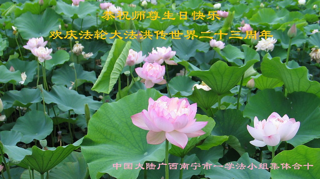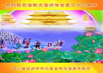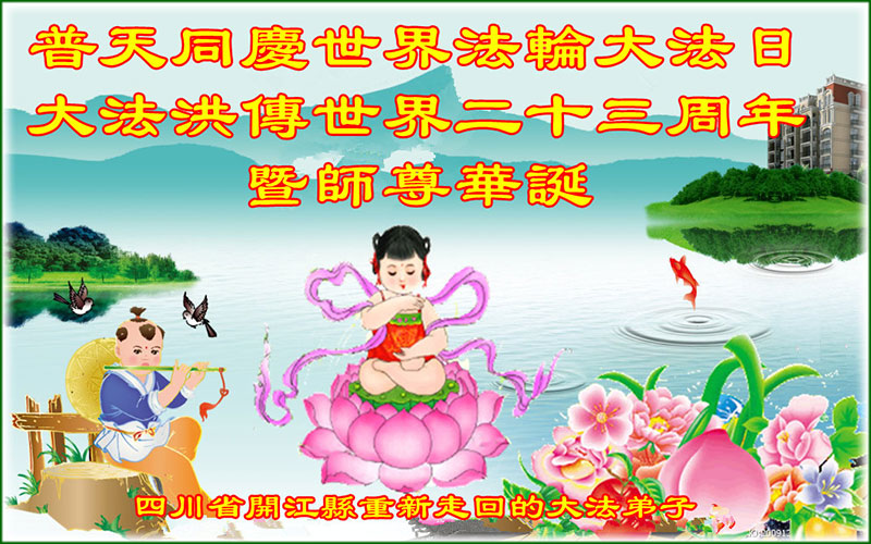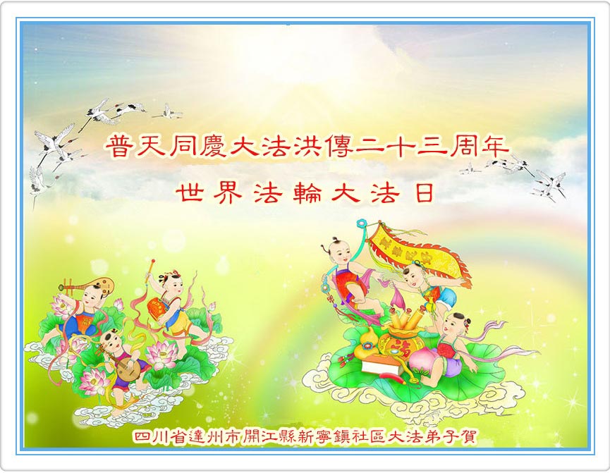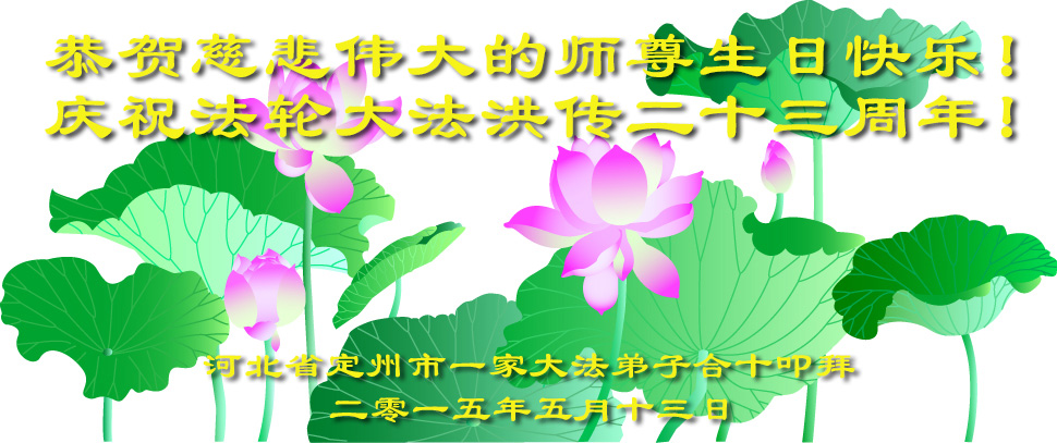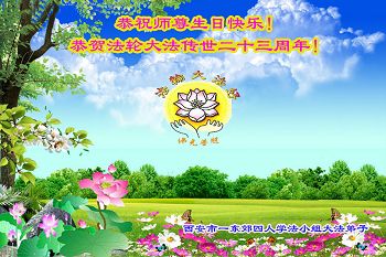 弟子代表学法小组同修及家中小弟子、新得法同修、还未修炼的家人、建筑体系众生恭祝法轮大法洪传二十三周年!恭祝世界法轮大法日十六周年!恭祝师尊华诞!