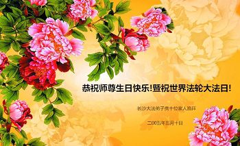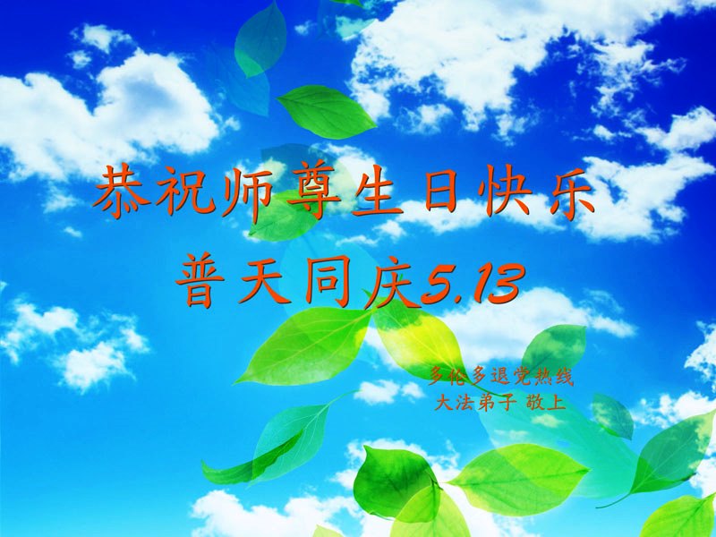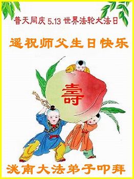 在打真相电话的过程中,有一明白真相的世人要我们一定转达他对大法师父的敬意及问候。至此法轮大法日暨师父华诞,特代表这位明真相的世人问候:法轮大法好!大法师父生日快乐!