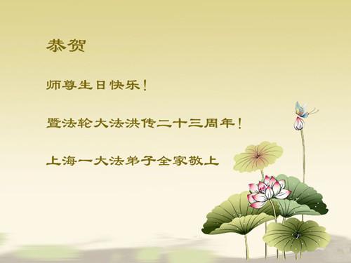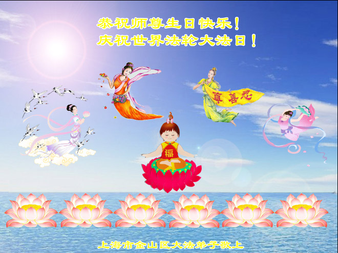 上海静安区二个学法小组、徐汇区一学法小组全体大法弟子恭祝师尊生日快乐!恭贺世界法轮大法日!