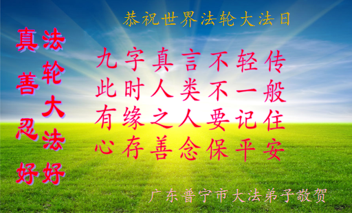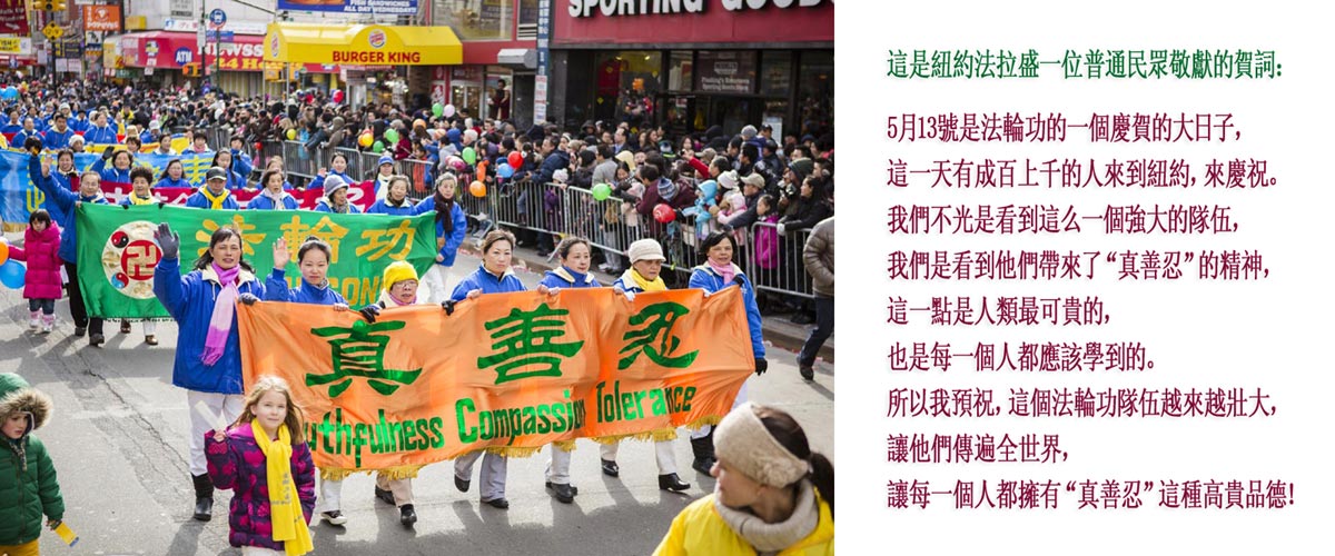 在第十六届世界法轮大法日来临之际,纽约法拉盛一位普通民众敬献了她的贺词: