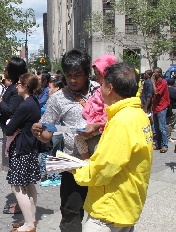![]() 图12-14:二零一五年五月十三日,法轮功学员在纽约曼哈顿的富丽广场以多种形式传播法轮功真相 |