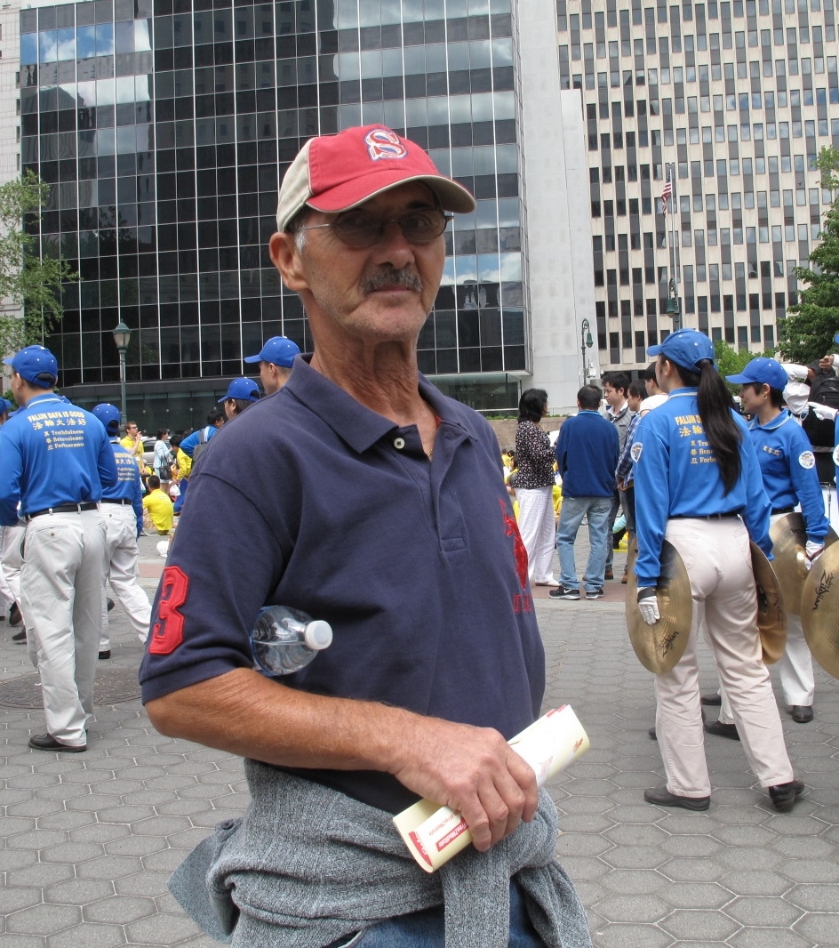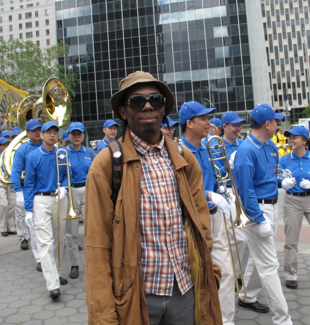 住在纽约的音乐人斯蒂文(Steven)被法轮功学员在富丽广场的集体炼功所吸引,感到法轮功群体“非常平和。” 他表示自己以前听说过法轮功,但从来没遇到法轮功的大型活动。他在了解真相后签名反迫害,认为“谁也不该为信仰而被迫害”。他惊喜地看到天国乐团的出场,说自己从听到的音乐中感到喜悦、和谐,感到力量,为了正义的力量。