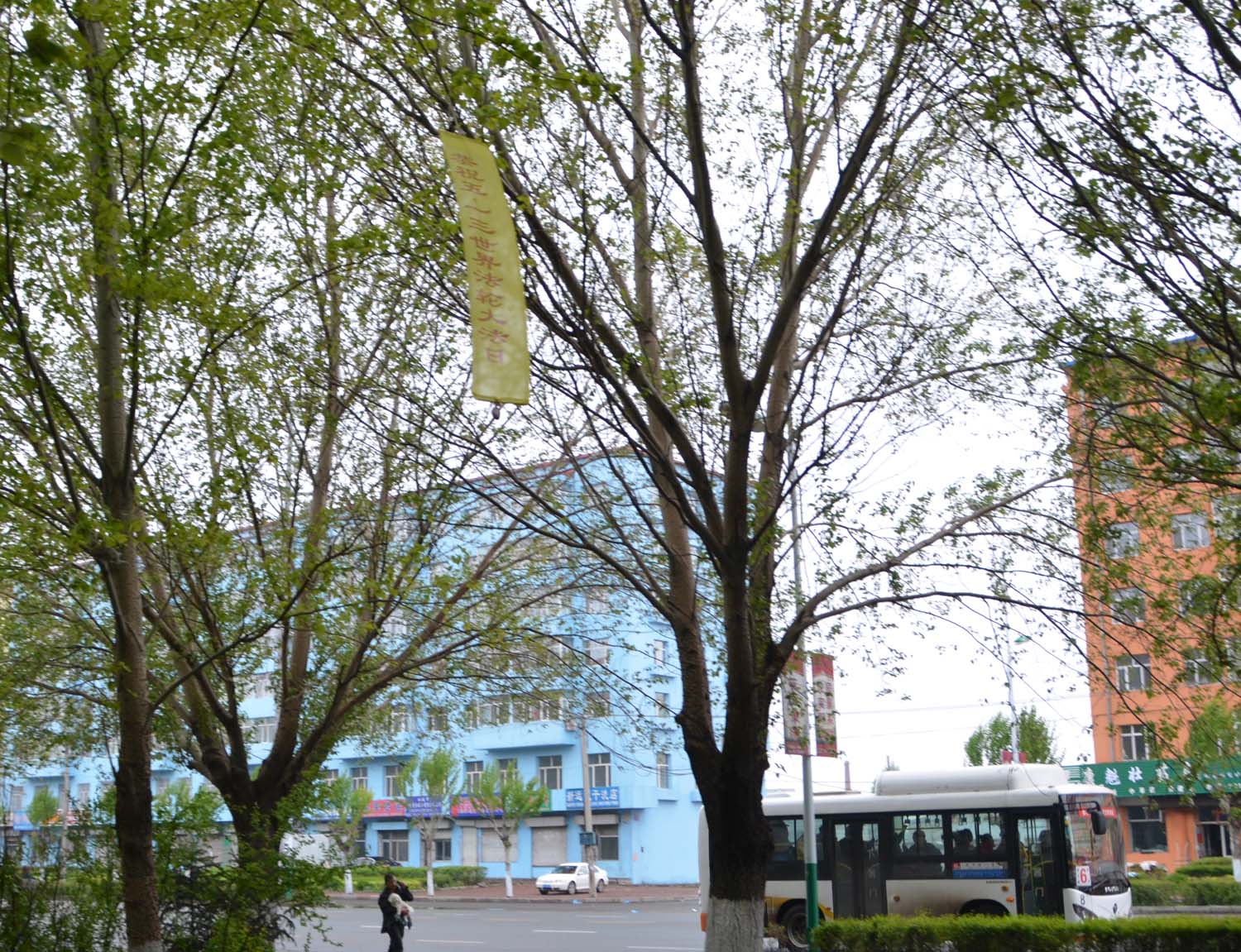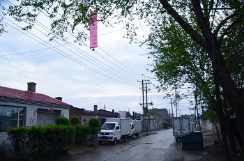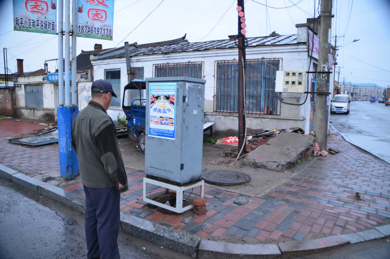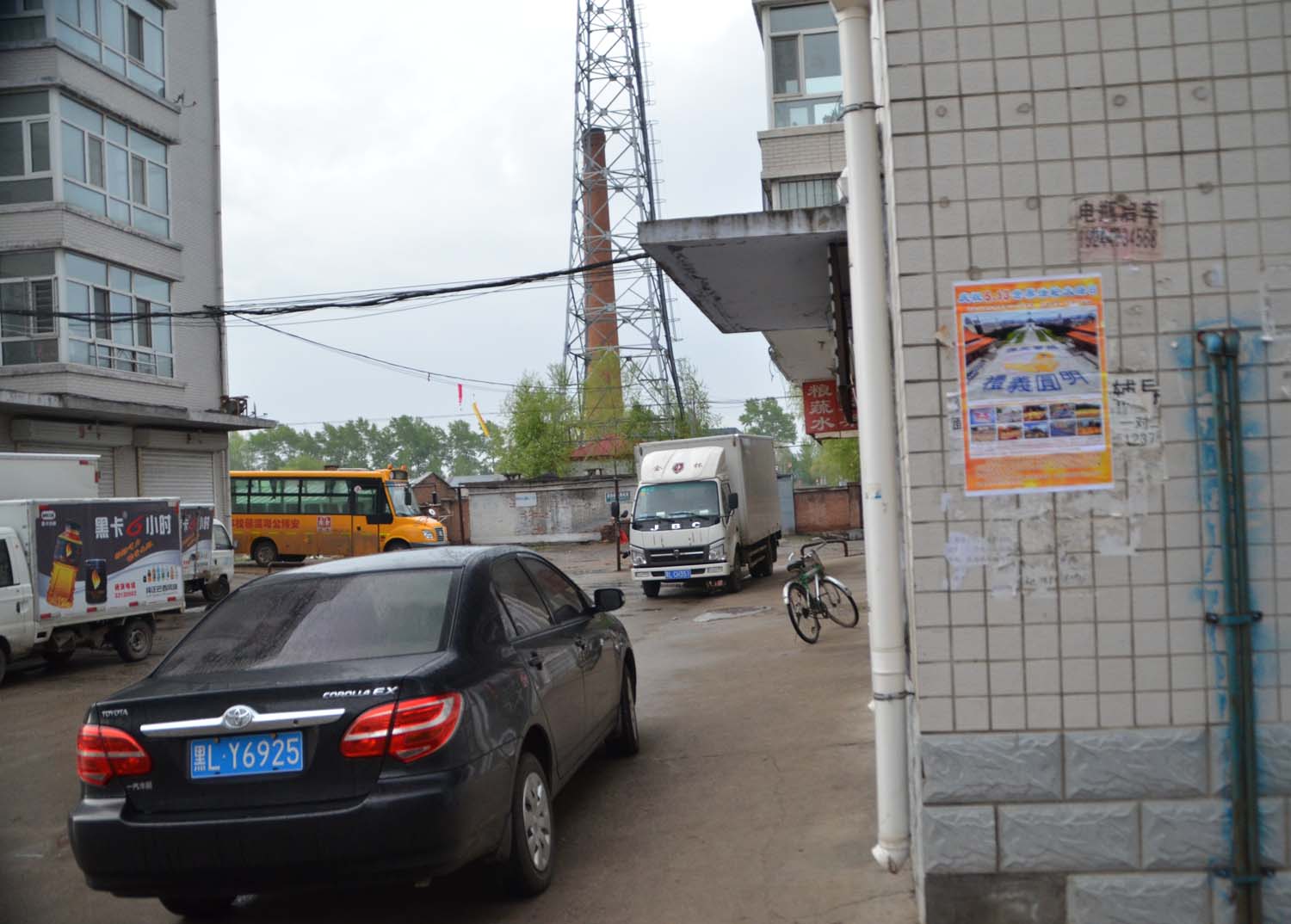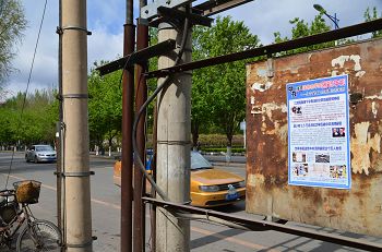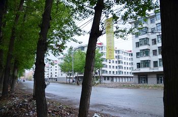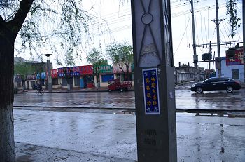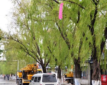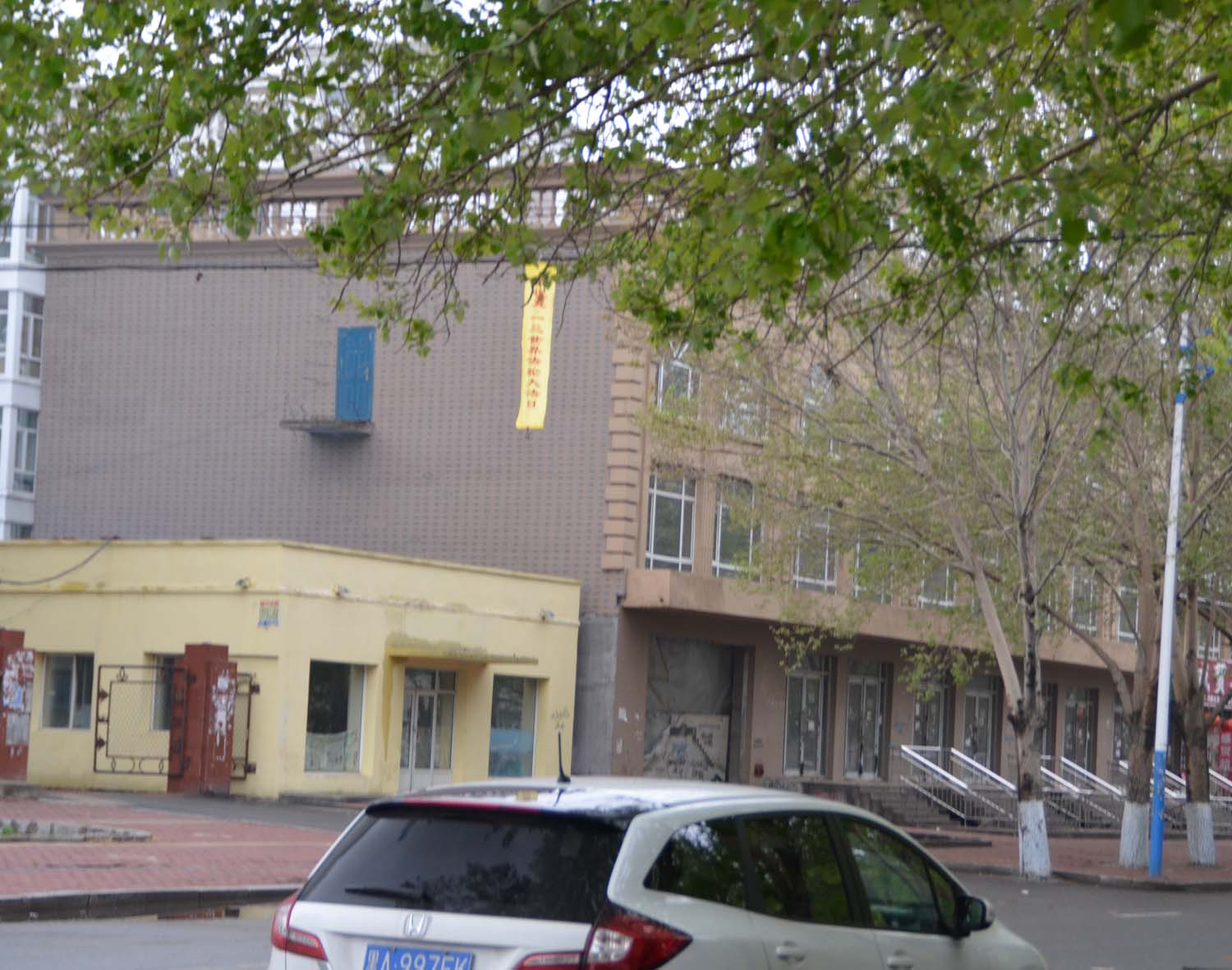 【明慧网二零一五年五月十六日】春雨洗礼过的大陆东北某地,树木刚刚披上新绿,城镇乡村多处可见“法轮大法好”的条幅、标语、海报和黏贴,庆祝五一三世界法轮大法日。