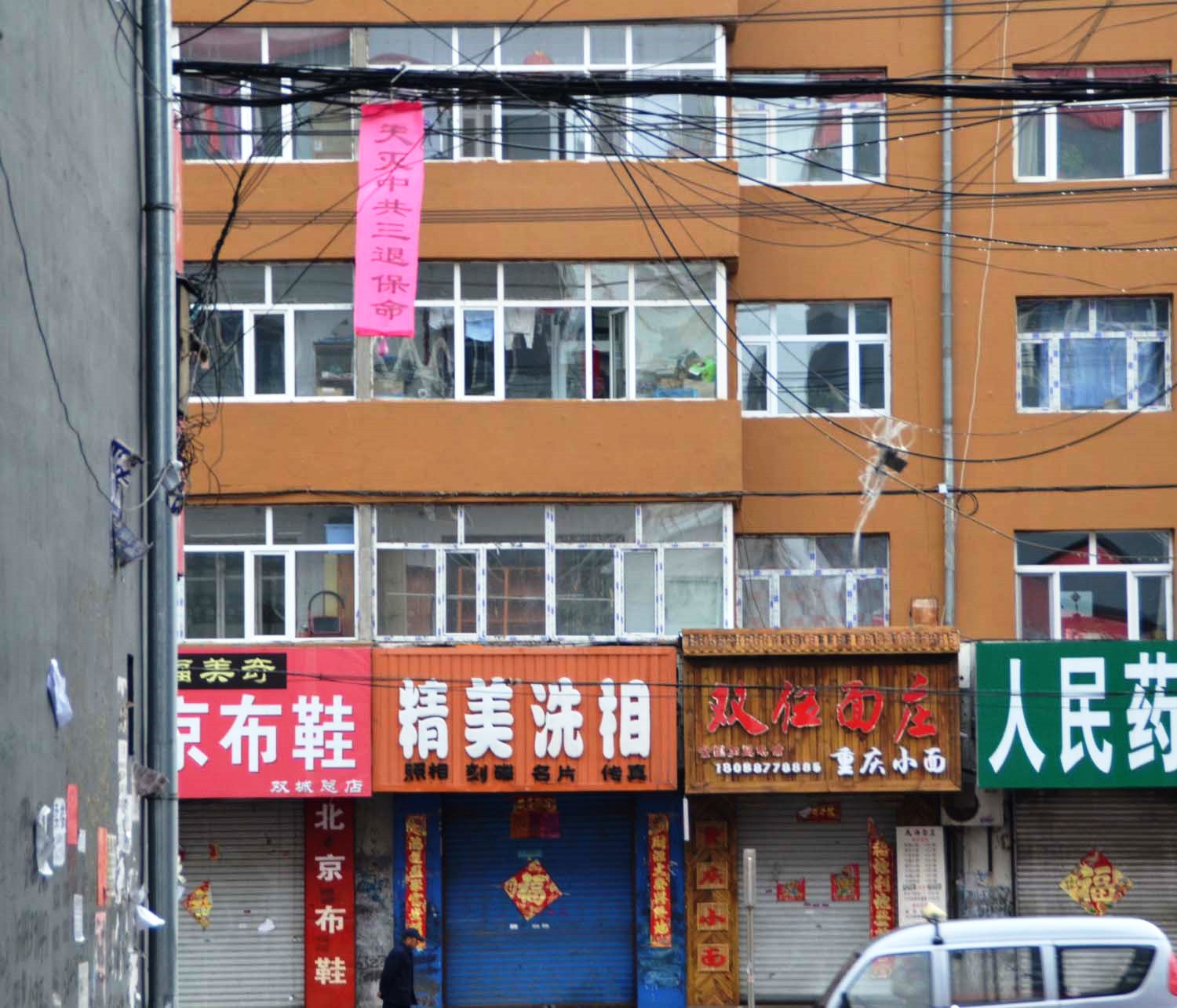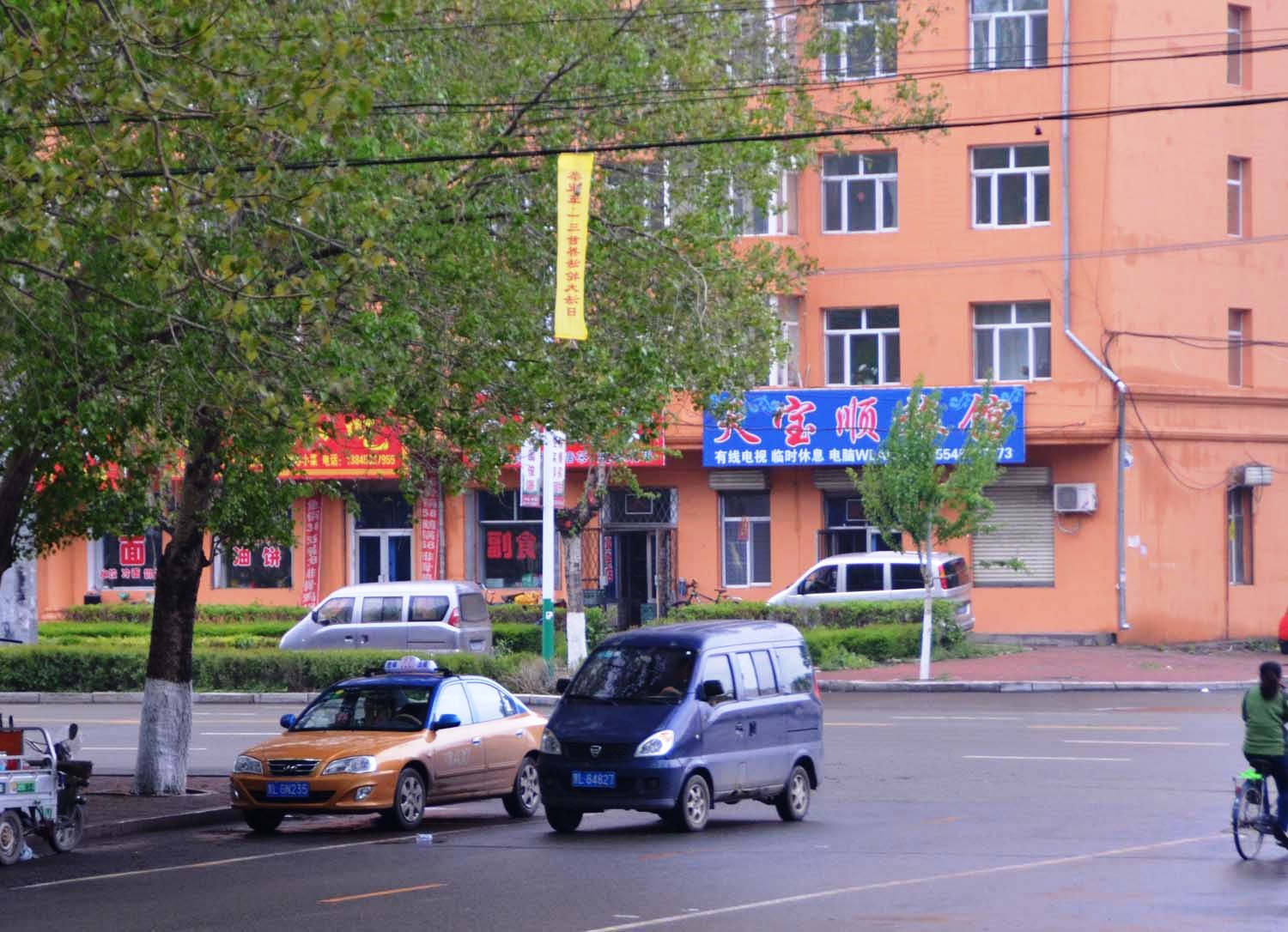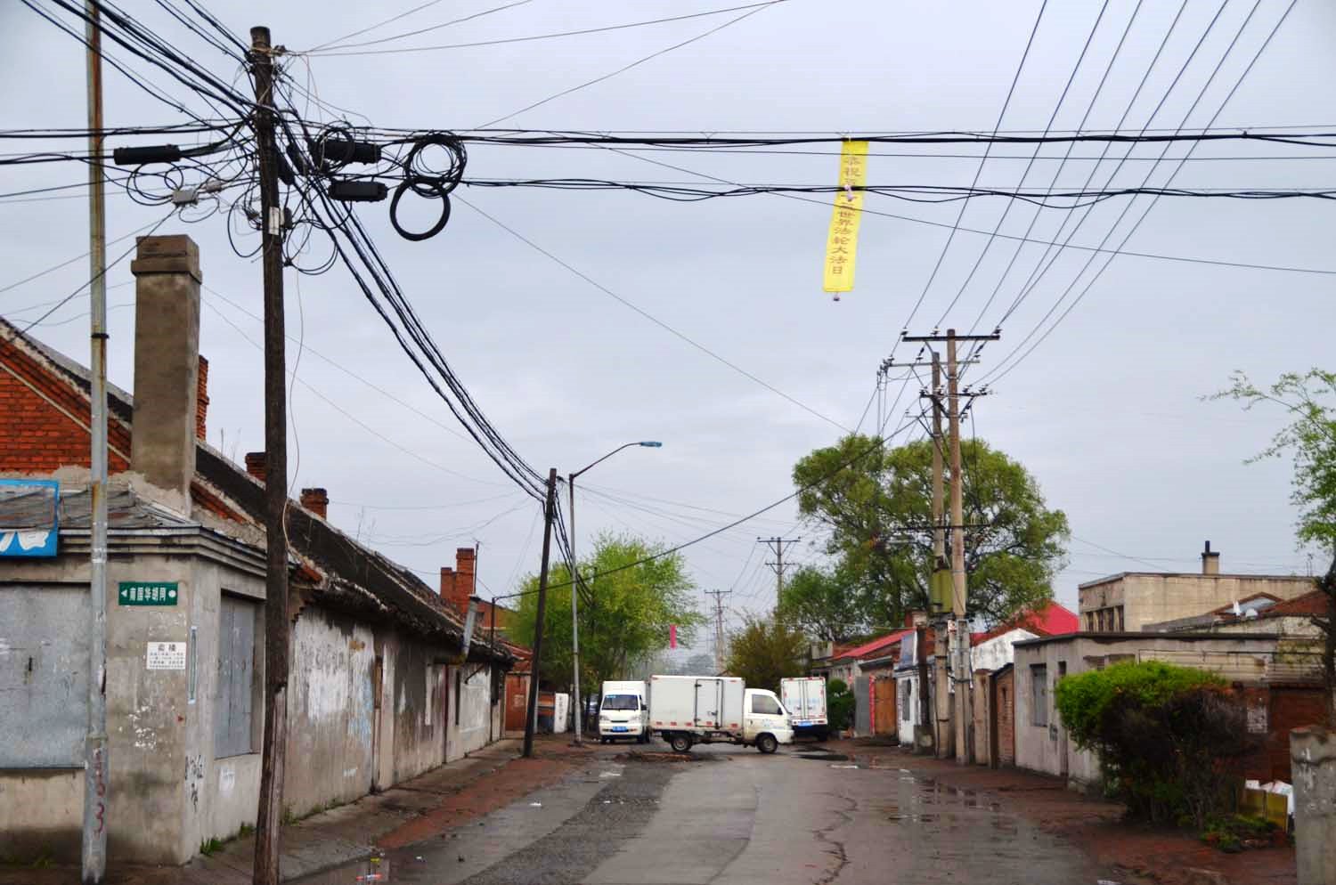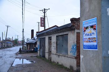 【明慧网二零一五年五月十六日】春雨洗礼过的大陆东北某地,树木刚刚披上新绿,城镇乡村多处可见“法轮大法好”的条幅、标语、海报和黏贴,庆祝五一三世界法轮大法日。