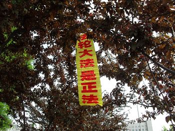 庆祝世界法轮大法日,山东临沂出现大量真相条幅、不干胶