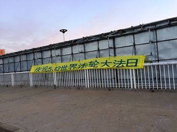 庆祝法轮大法日 内蒙古某地悬挂条幅展大法好