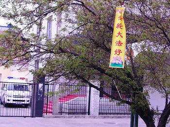 庆祝法轮大法日 内蒙古某地悬挂条幅展大法好