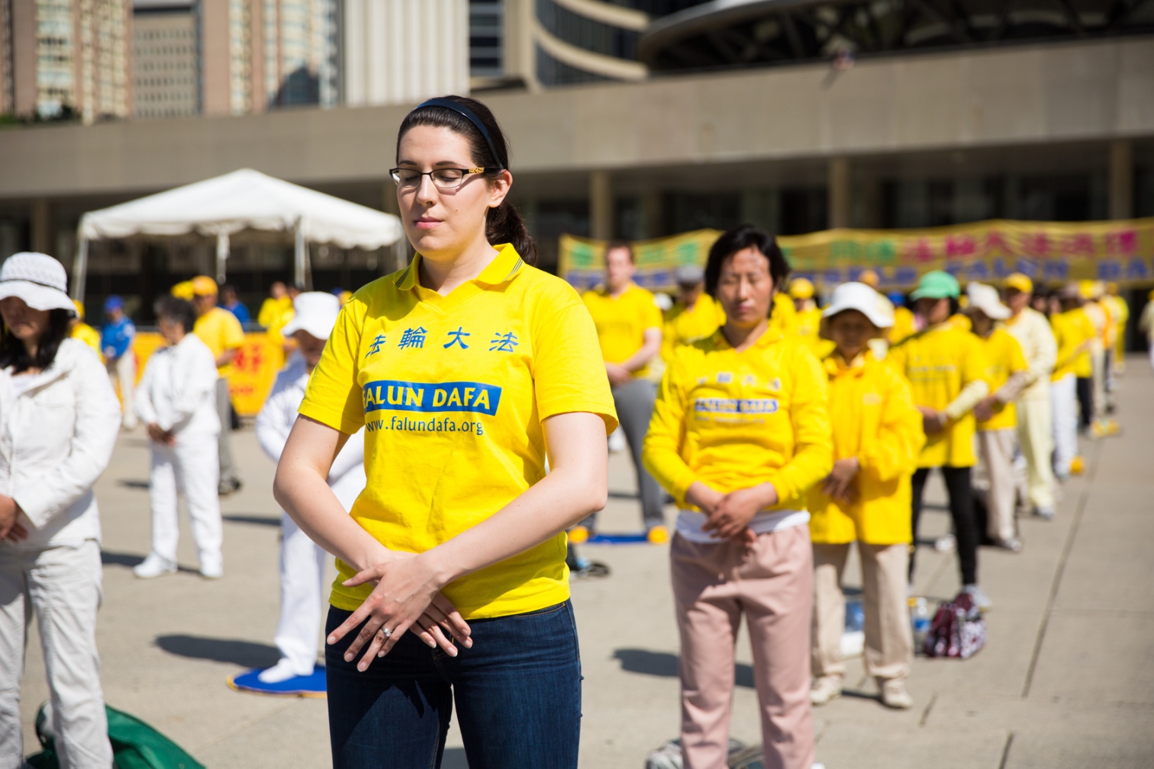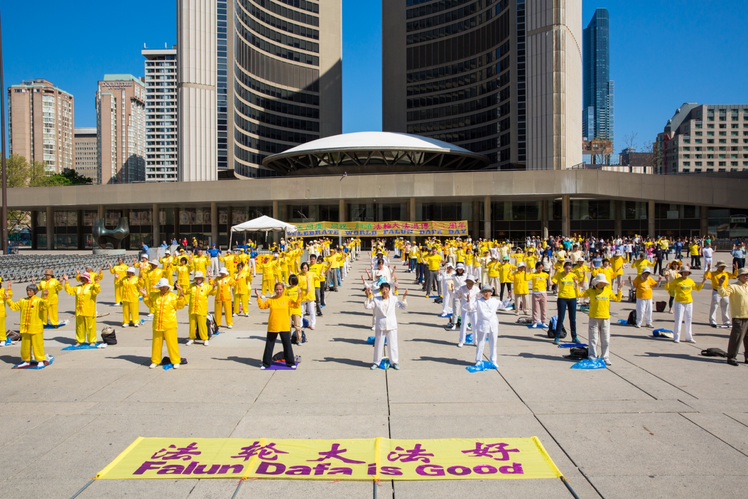 ![]() 多伦多法轮功学员在市政广场集体炼功 |
