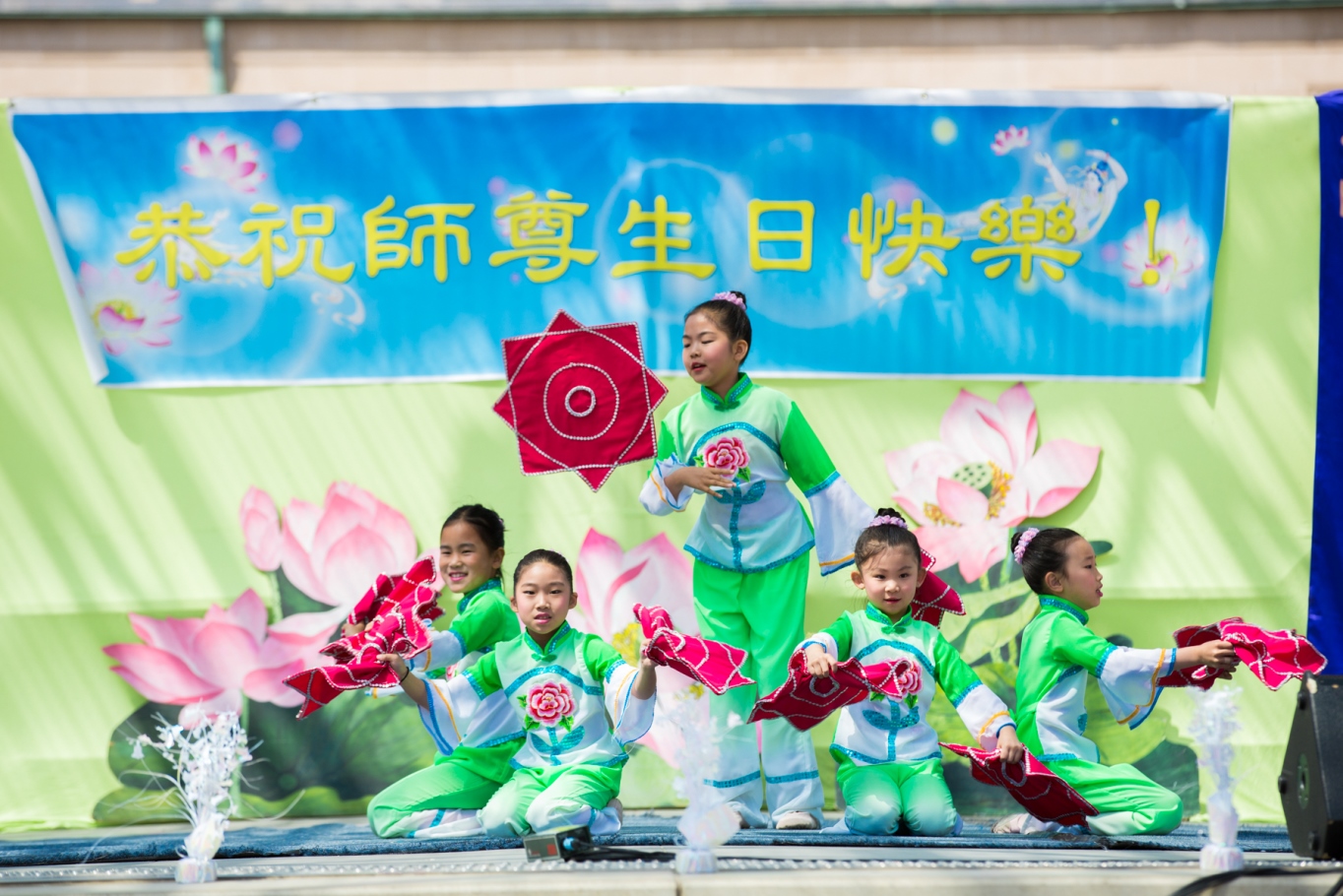 ![]() 法轮大法小弟子表演手绢舞 |