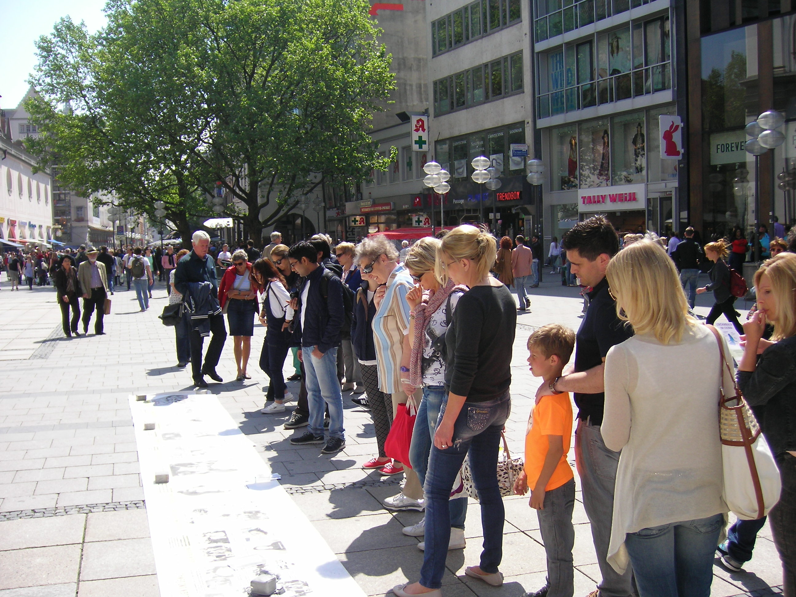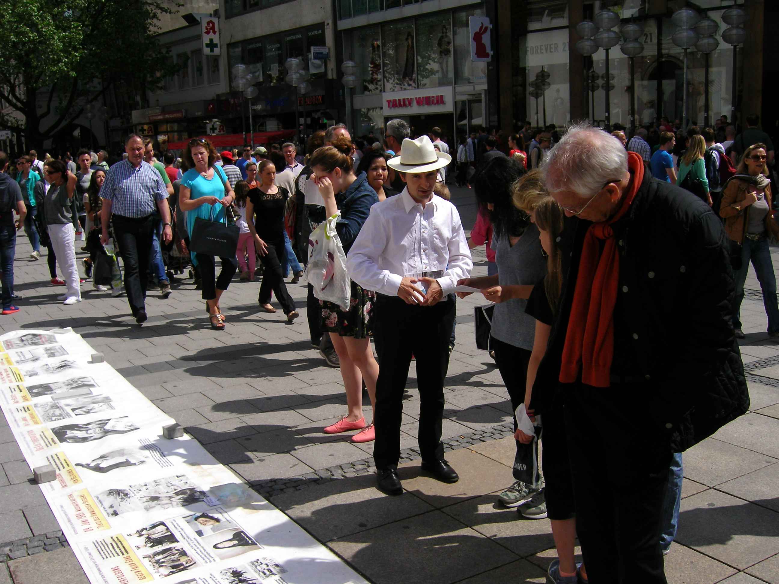 一些中国人看到法轮大法的横幅纷纷拍照,特别是看到西人法轮功学员在展示功法,有的人接受了真相资料,有的当场就做了三:退.。
