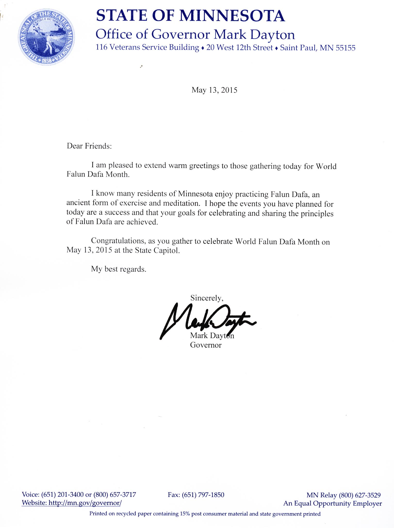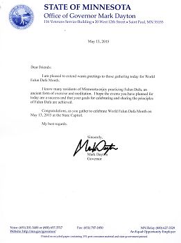 我知道明尼苏达州很多人都修炼法轮大法。我祝愿庆祝活动成功,也希望您们达成心愿把法轮大法传播给更多的民众。