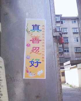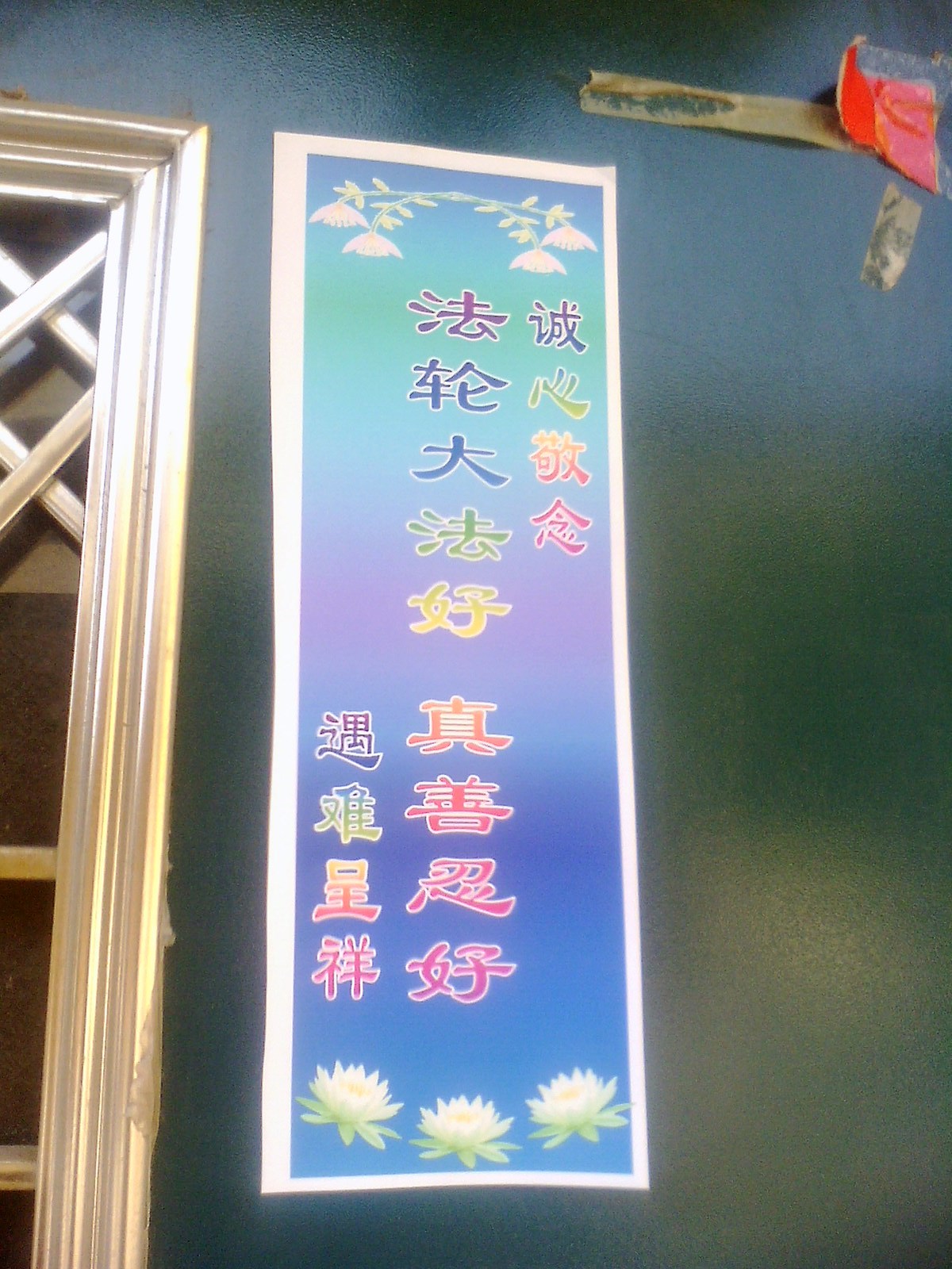 说明:梅花、福字是镂空雕刻的。“法轮大法好”是刻上的,刻上后,再用笔描了一下。