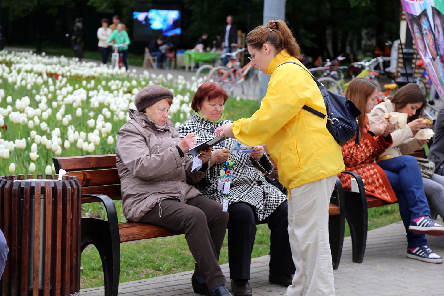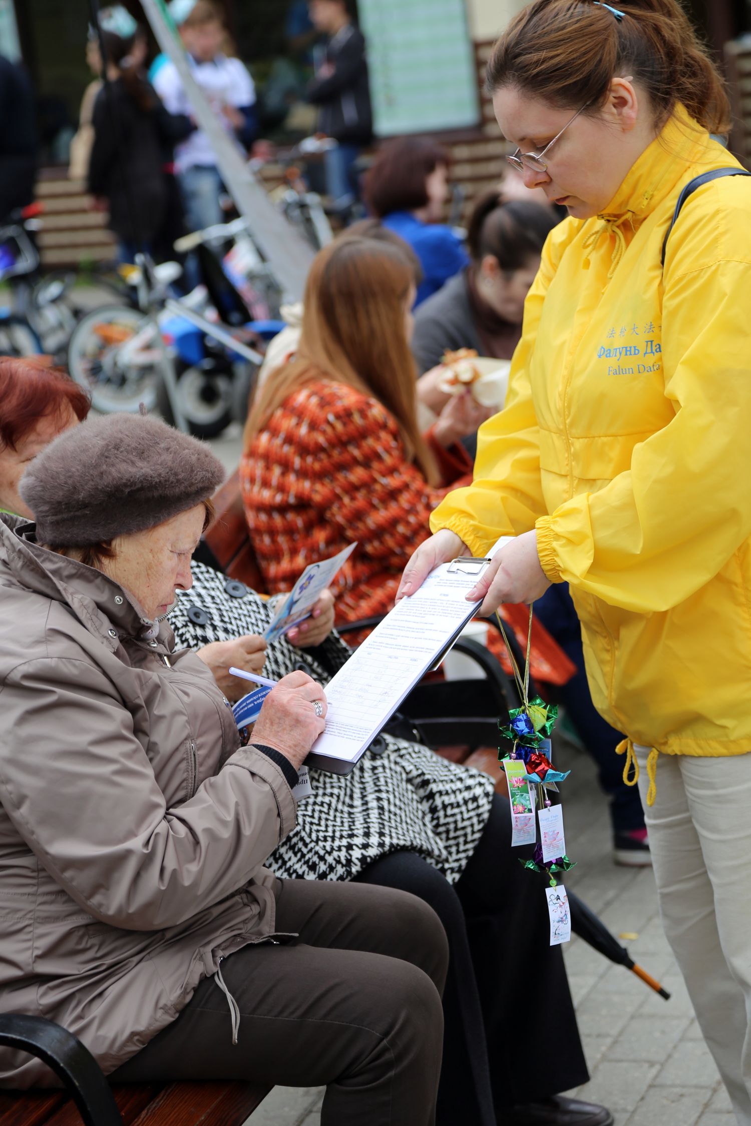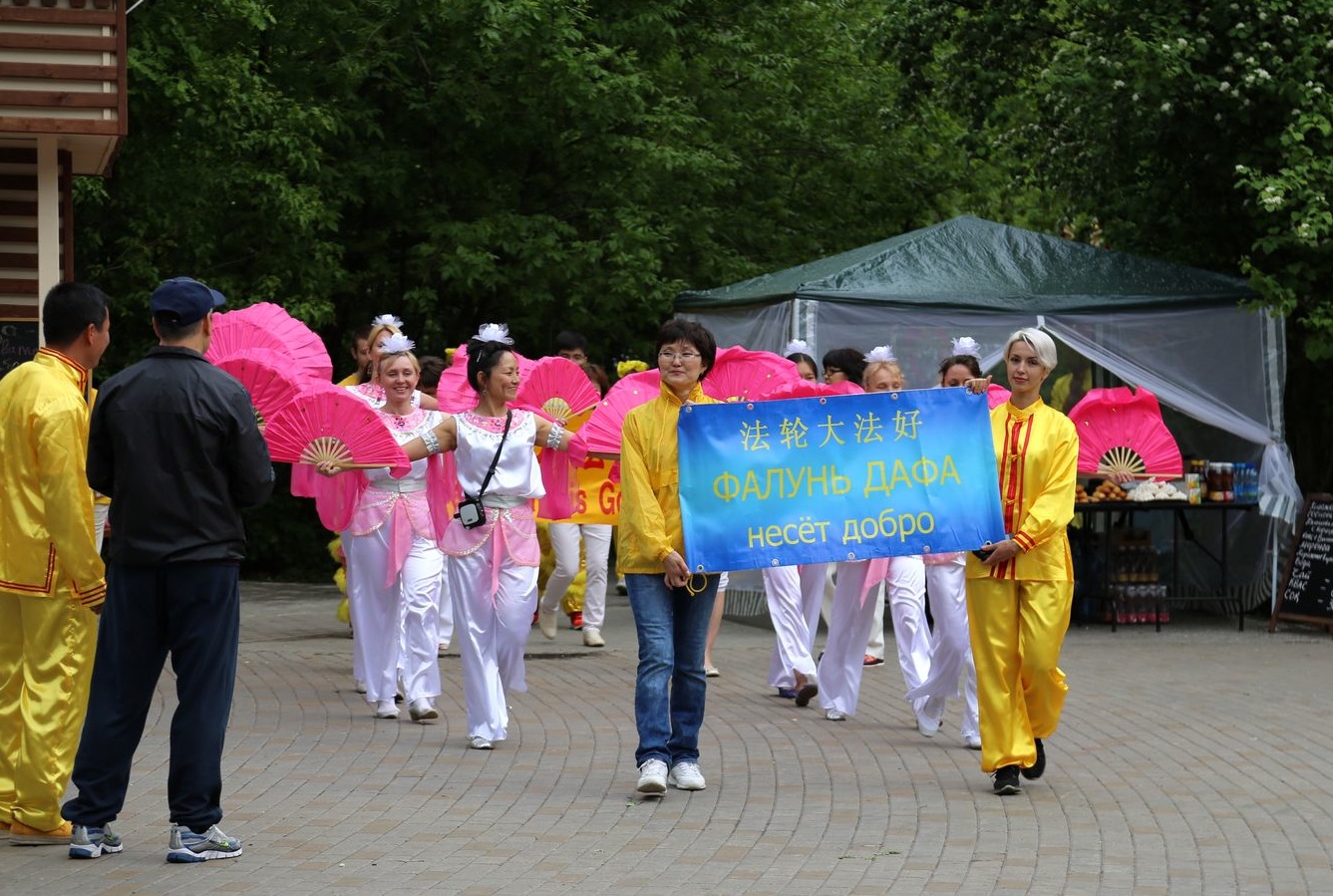 【明慧网二零一五年五月二十五日】二零一五年五月二十三日在莫斯科的菲利公园,法轮功学员与当地民众共同庆祝了第十六届世界法轮大法日,以及大法弘传二十三周年纪念日。