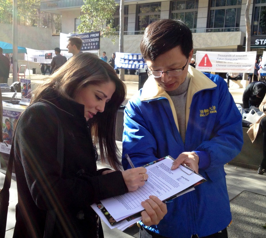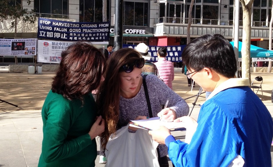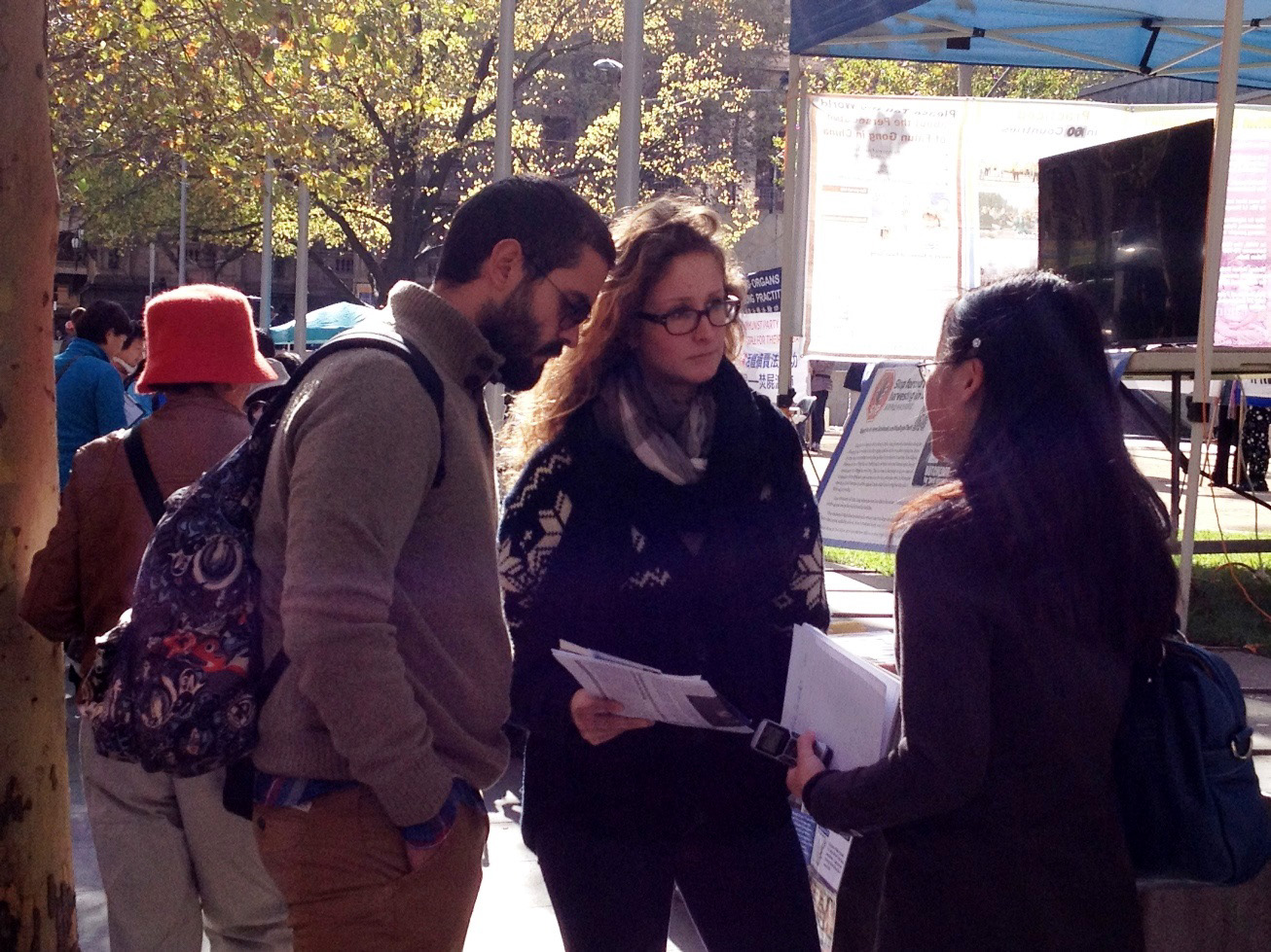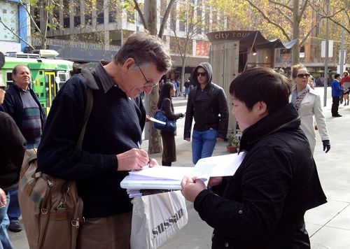 在集会进行的三个小时内,在向联合国人权机构以及澳洲联邦政府递交的请愿书上,法轮功学员征集到超过一千五百个签名,还有不少人报名参加即将在墨尔本举行的调查活摘器官指控的独立调查员之一、著名国际人权律师麦塔斯先生的报告会。