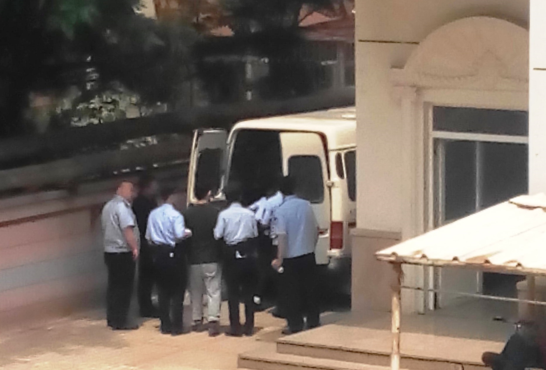 ![]() 杨峰(中间穿黑衣者)被押上车 |