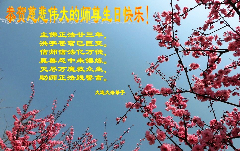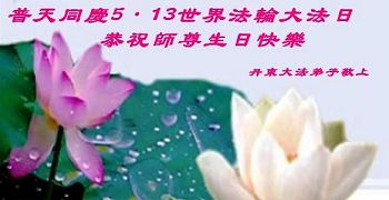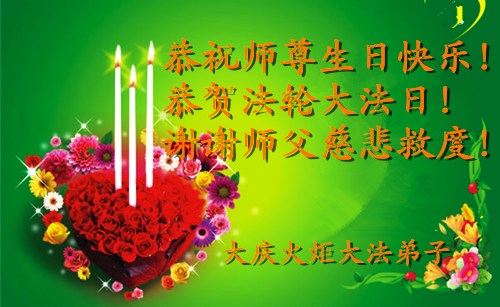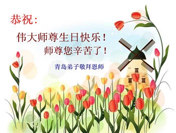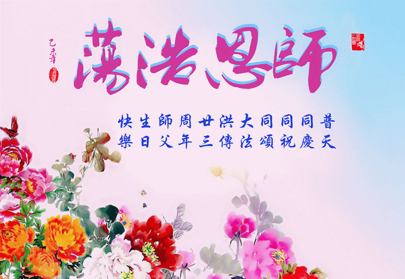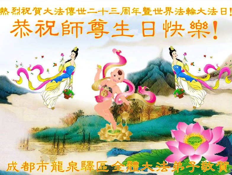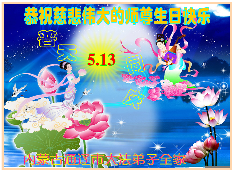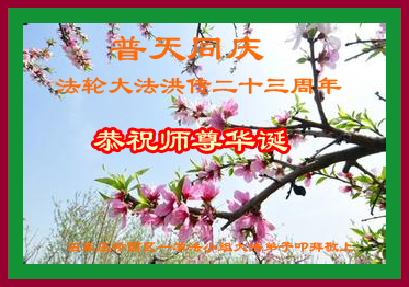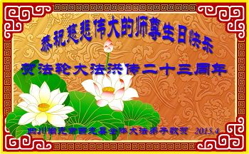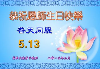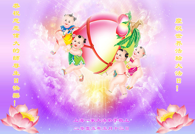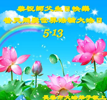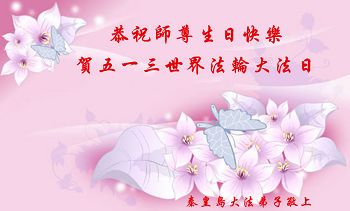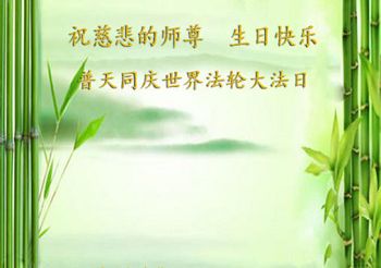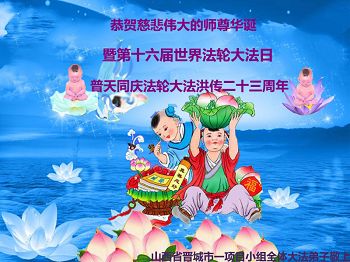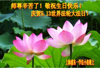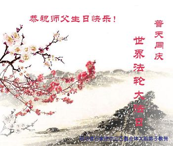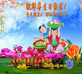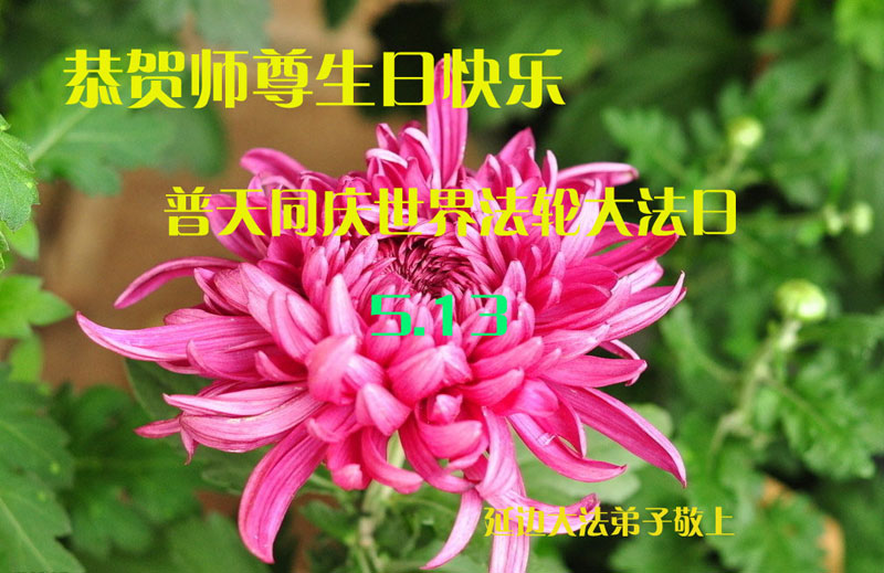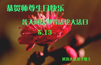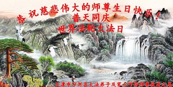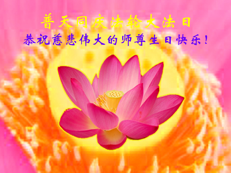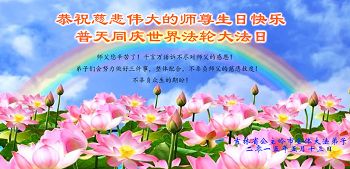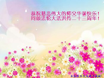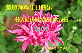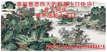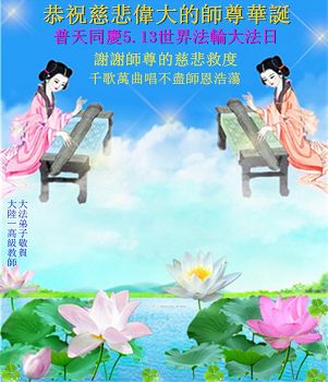 弟子们无法用语言、无限感恩师尊的慈悲苦度!叩祝慈悲伟大的师尊生日快乐!并与世界各地各位大法弟子及明真相的世人普天同庆法轮大法洪传二十三周年暨欢庆第十六届世界法轮大法日!