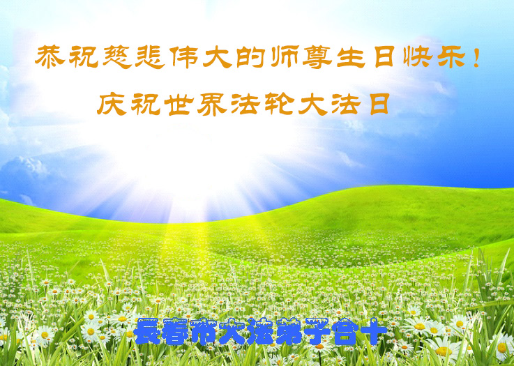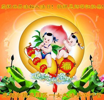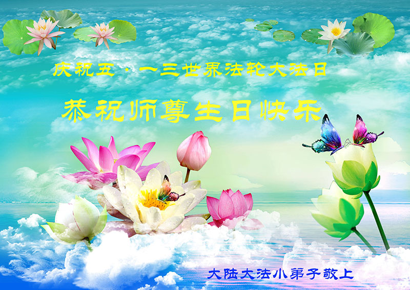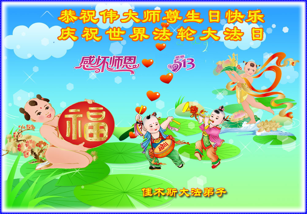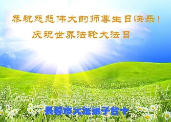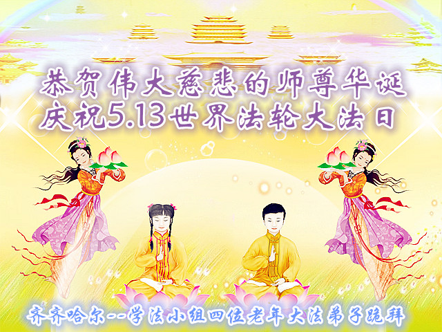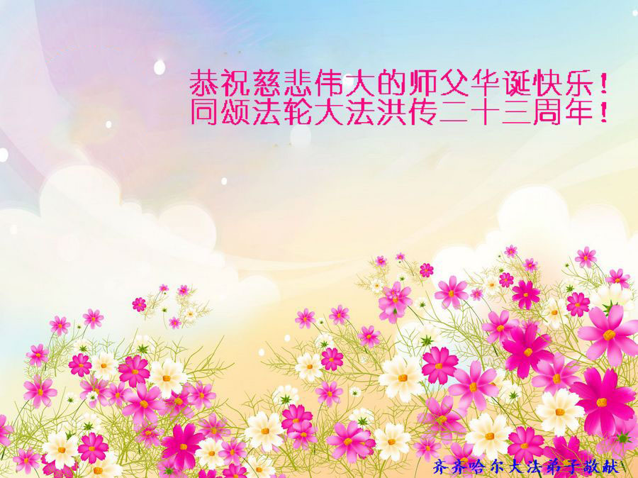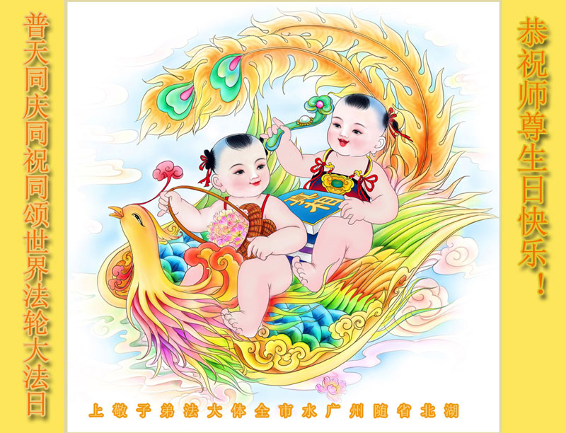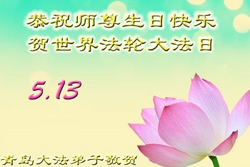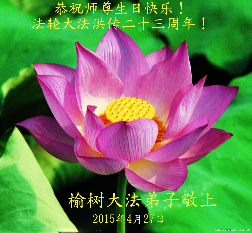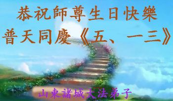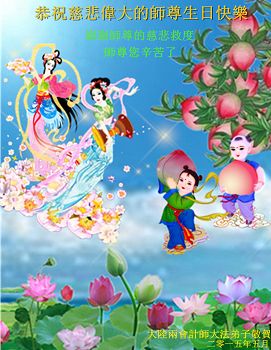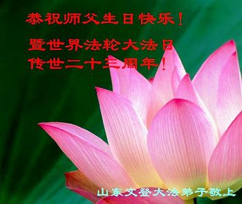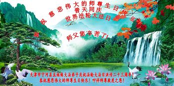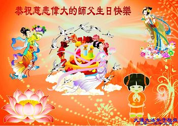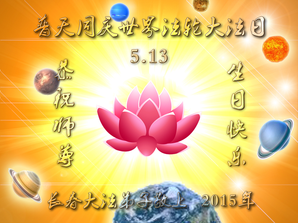 弟子们无法用语言、无限感恩师尊的慈悲苦度!叩祝慈悲伟大的师尊生日快乐!并与世界各地各位大法弟子及明真相的世人普天同庆法轮大法洪传二十三周年暨欢庆第十六届世界法轮大法日!